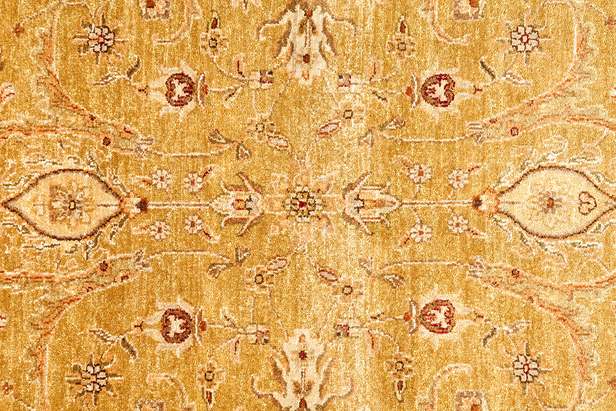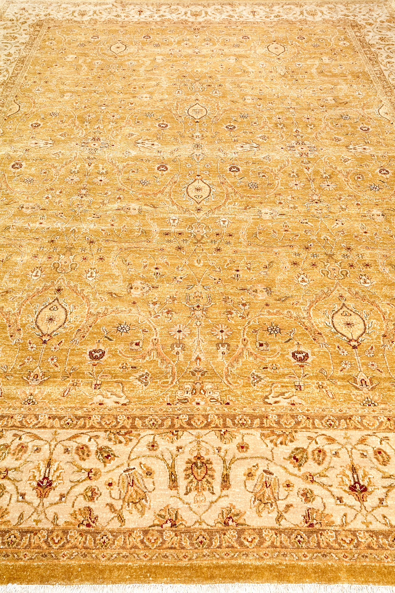 Более пяти веков назад в городе Агра зародилась знаменитая индийская школа ковроткачества, прославившаяся не меньше, чем расположенный здесь же Тадж-Махал. Мощное персидское влияние, помноженное на местный колорит, привело к появлению оригинальных орнаментов с богатыми растительными узорами — причудливым цветам, ветвям и листьям, разбросанным по всему полю ковра.