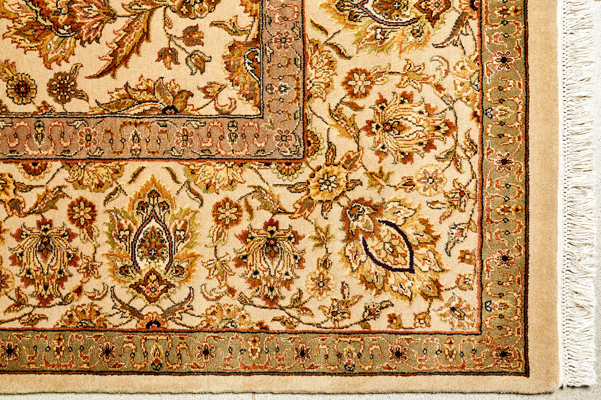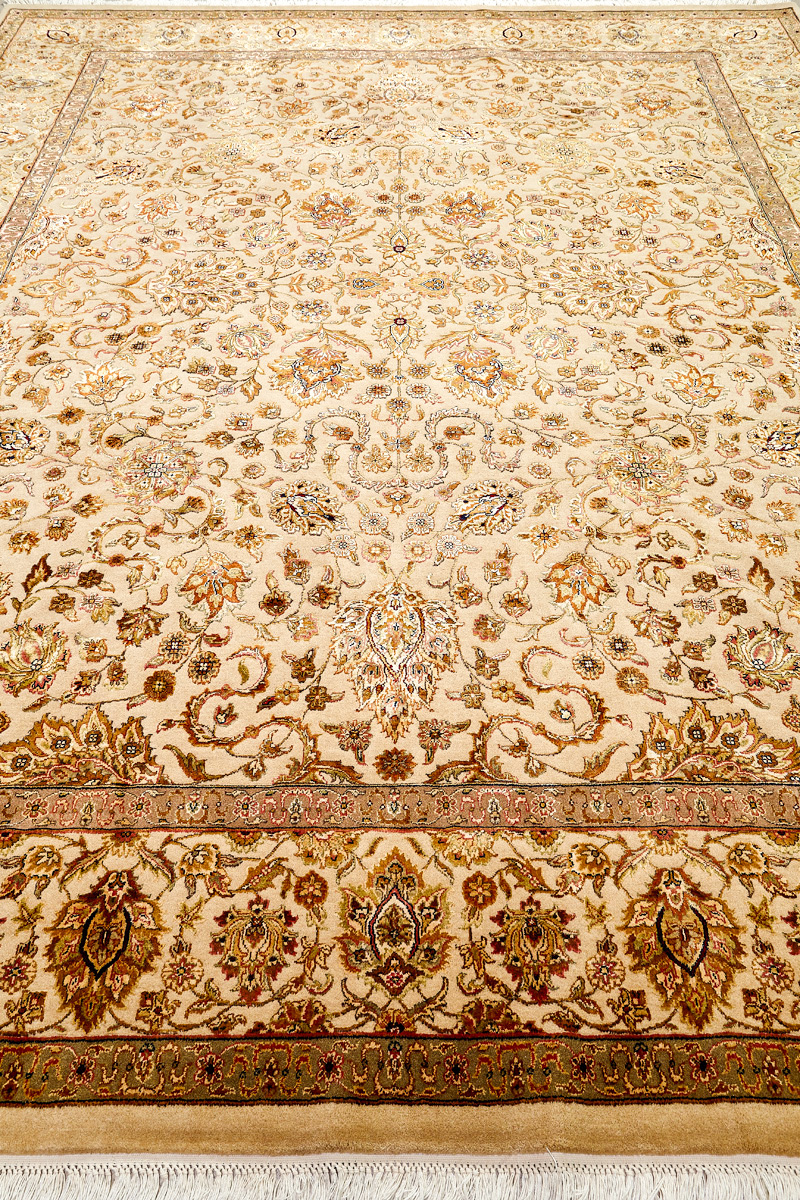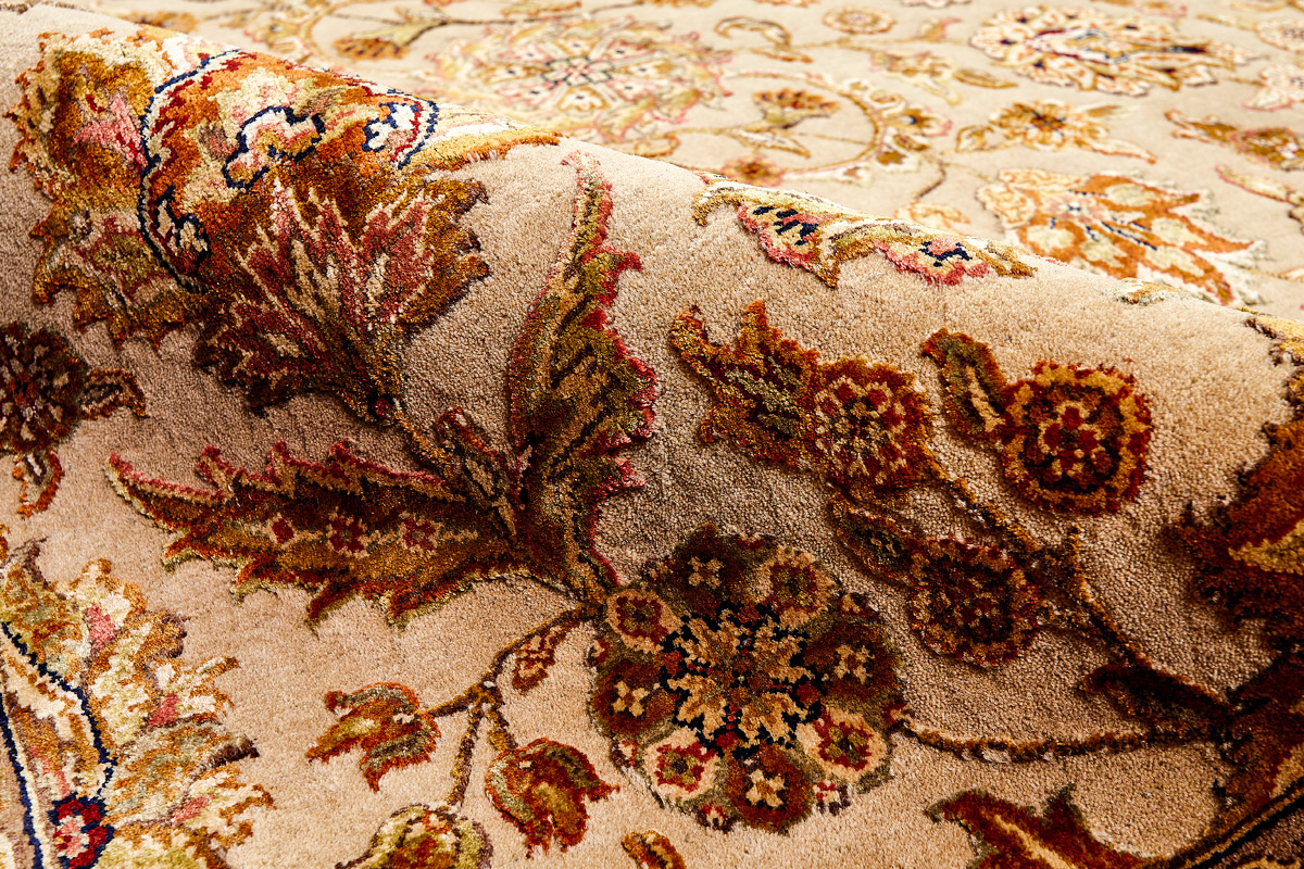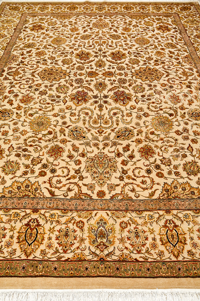 Более пяти веков назад в городе Агра зародилась знаменитая индийская школа ковроткачества, прославившаяся не меньше, чем расположенный здесь же Тадж-Махал. Мощное персидское влияние, помноженное на местный колорит, привело к появлению оригинальных орнаментов с богатыми растительными узорами — причудливым цветам, ветвям и листьям, разбросанным по всему полю ковра.