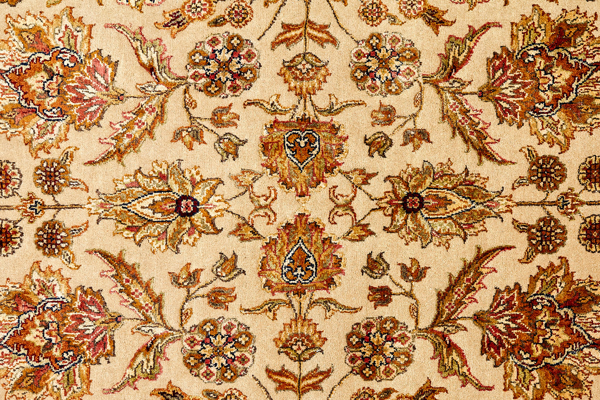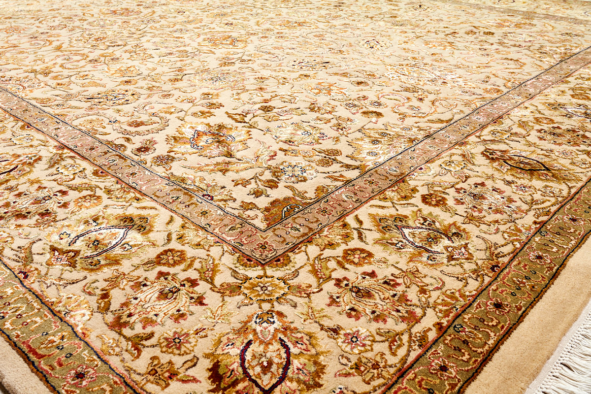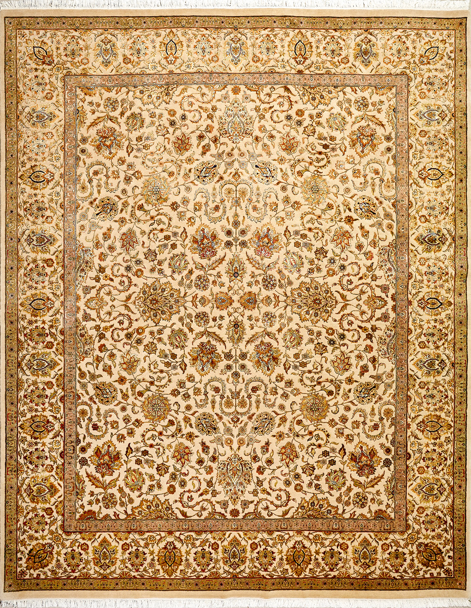 Более пяти веков назад в городе Агра зародилась знаменитая индийская школа ковроткачества, прославившаяся не меньше, чем расположенный здесь же Тадж-Махал. Мощное персидское влияние, помноженное на местный колорит, привело к появлению оригинальных орнаментов с богатыми растительными узорами — причудливым цветам, ветвям и листьям, разбросанным по всему полю ковра.