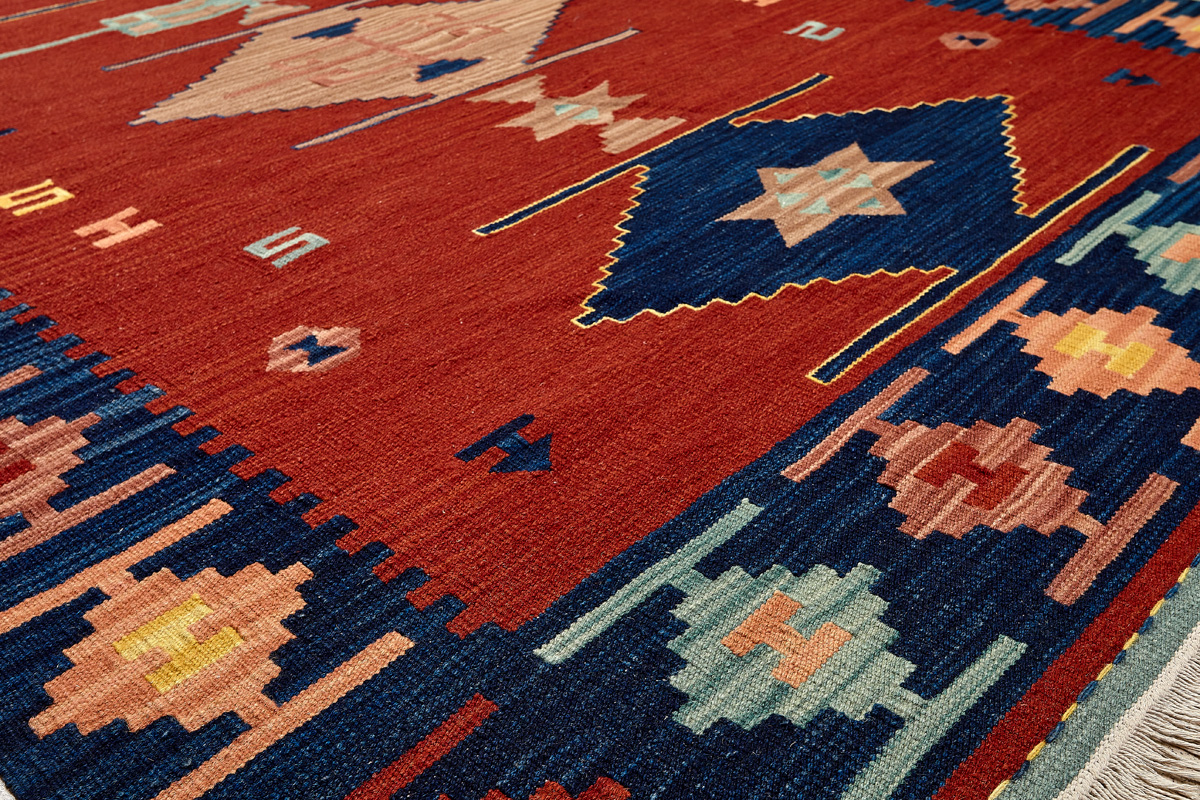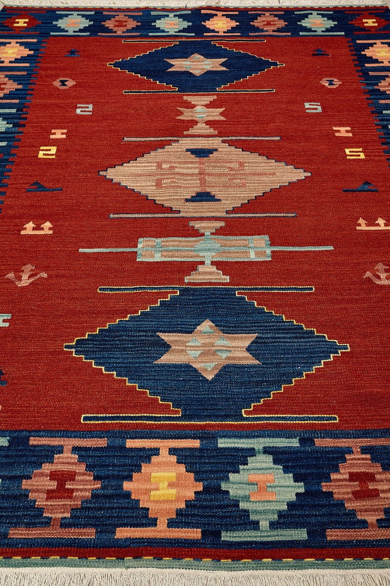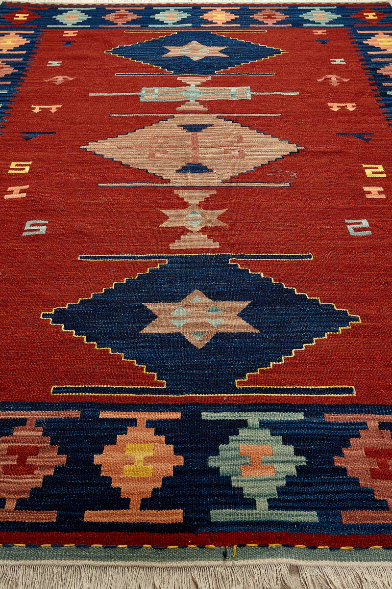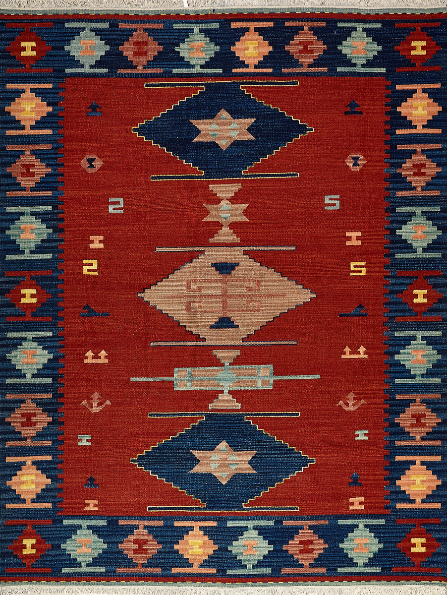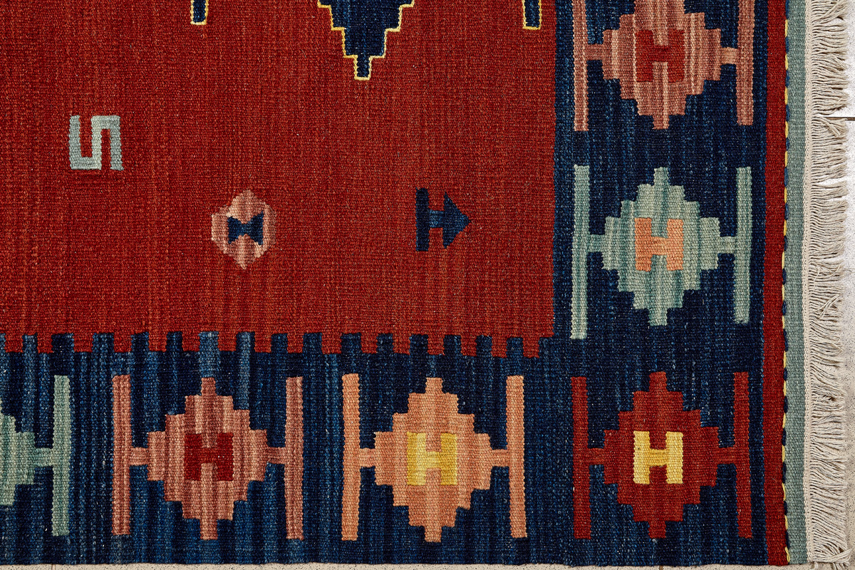 Килим — безворсовый двусторонний ковер, в его составе — высококачественная шерсть, а в дизайне — скандинавские мотивы.
