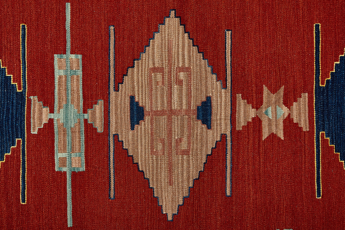 Узор ковров из коллекции Килим создаётся взаимодействием нитей утока и нитей основы, благодаря чему получается геометрический узор.