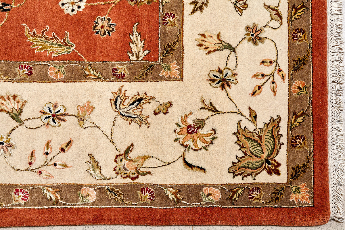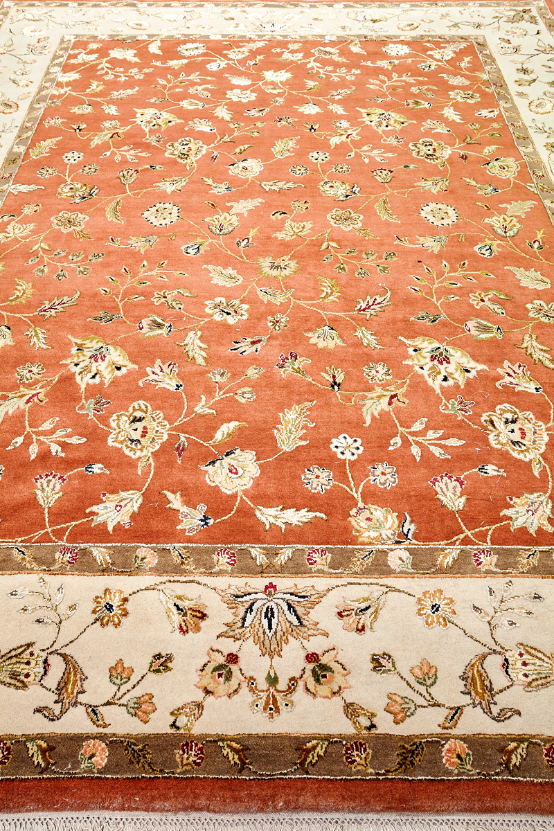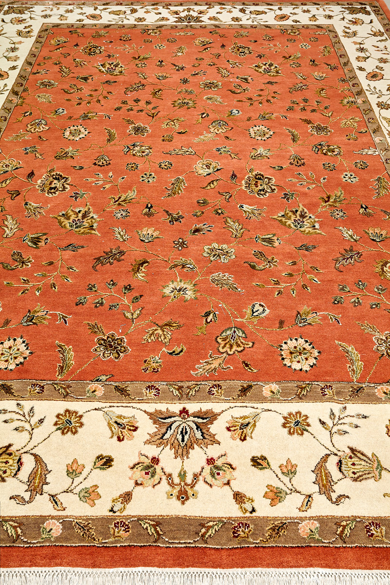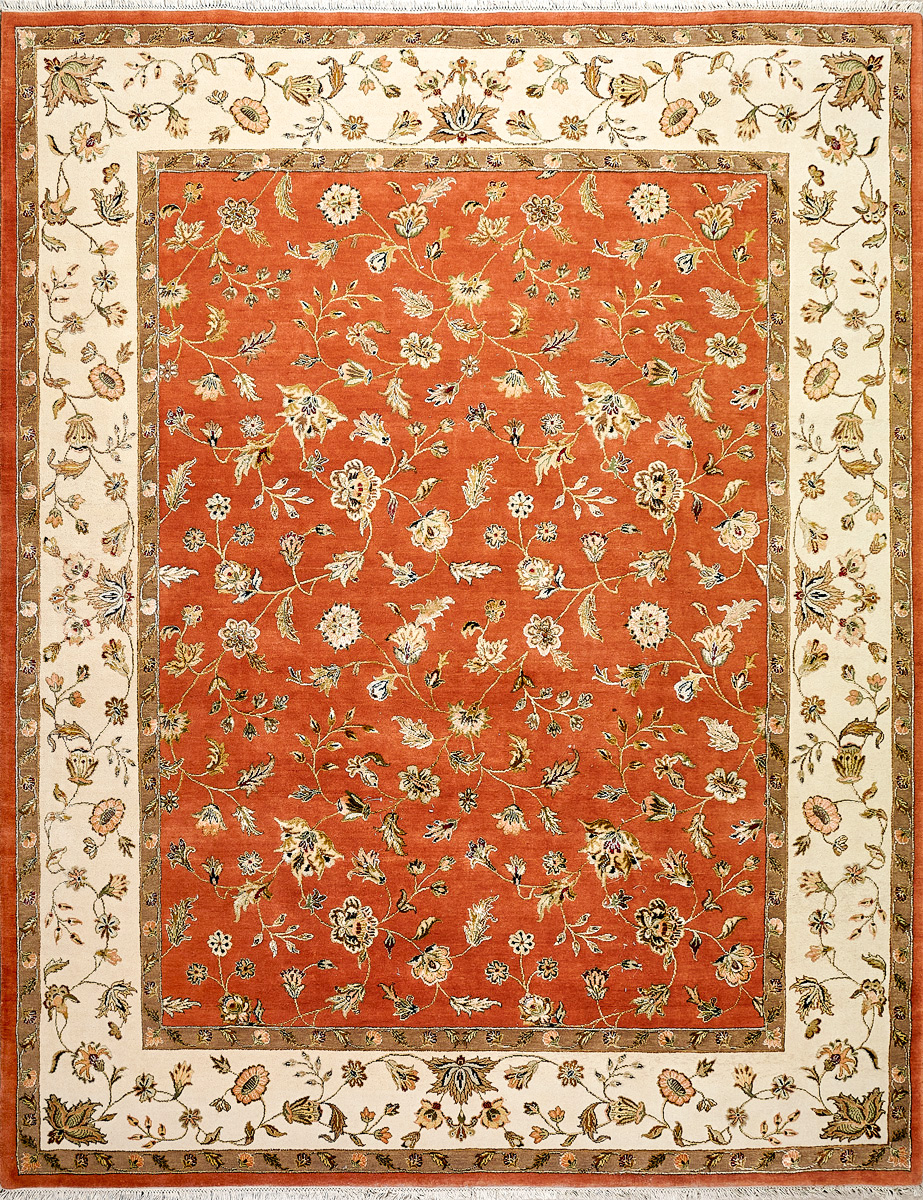 Более пяти веков назад в городе Агра зародилась знаменитая индийская школа ковроткачества, прославившаяся не меньше, чем расположенный здесь же Тадж-Махал. Мощное персидское влияние, помноженное на местный колорит, привело к появлению оригинальных орнаментов с богатыми растительными узорами — причудливым цветам, ветвям и листьям, разбросанным по всему полю ковра.