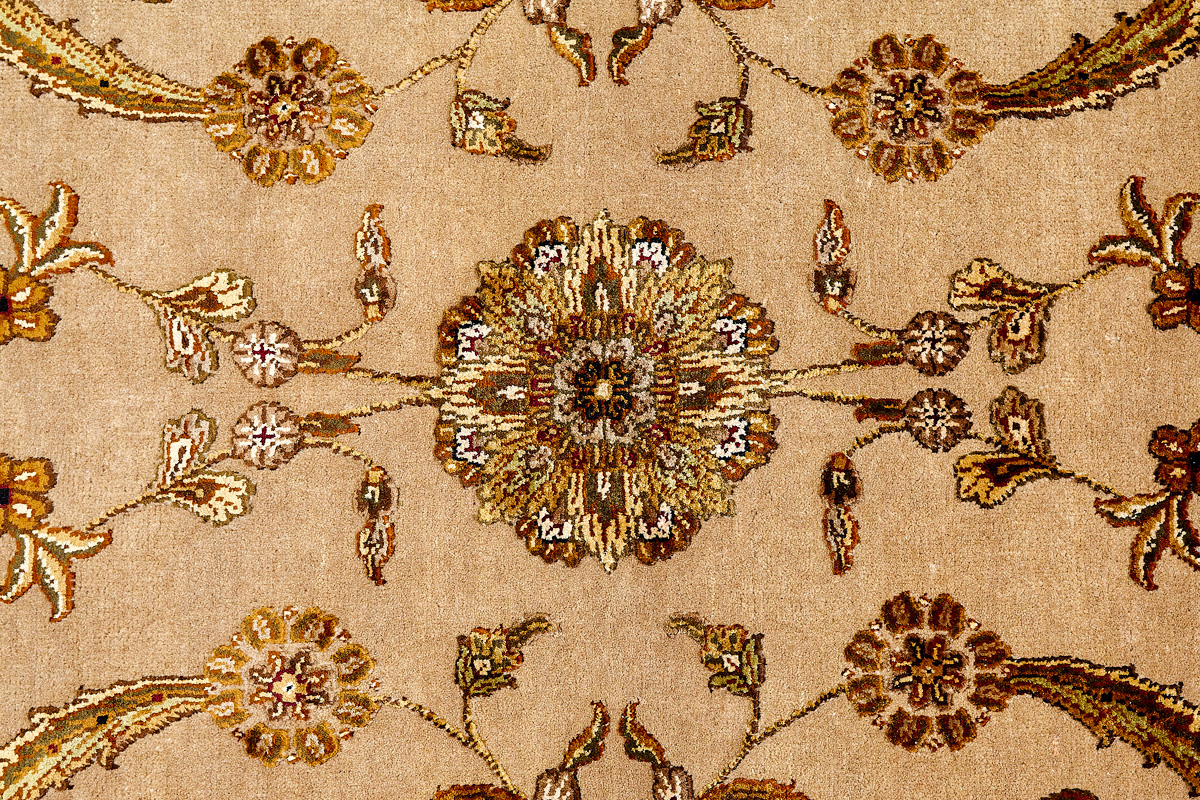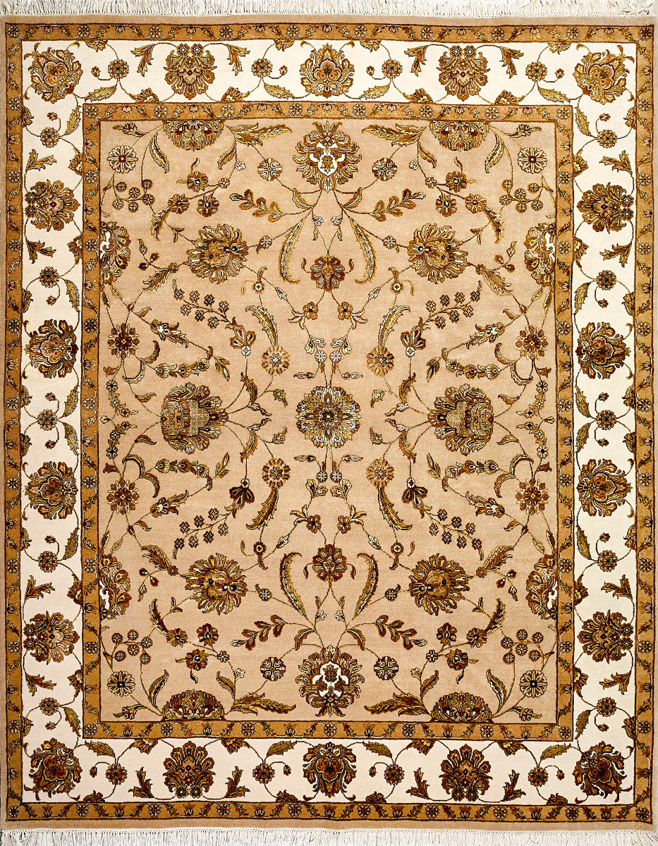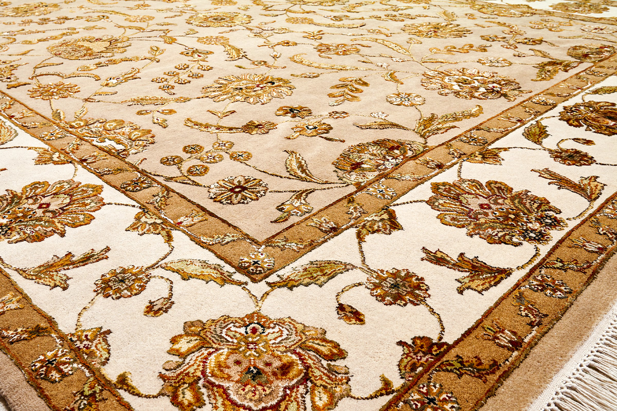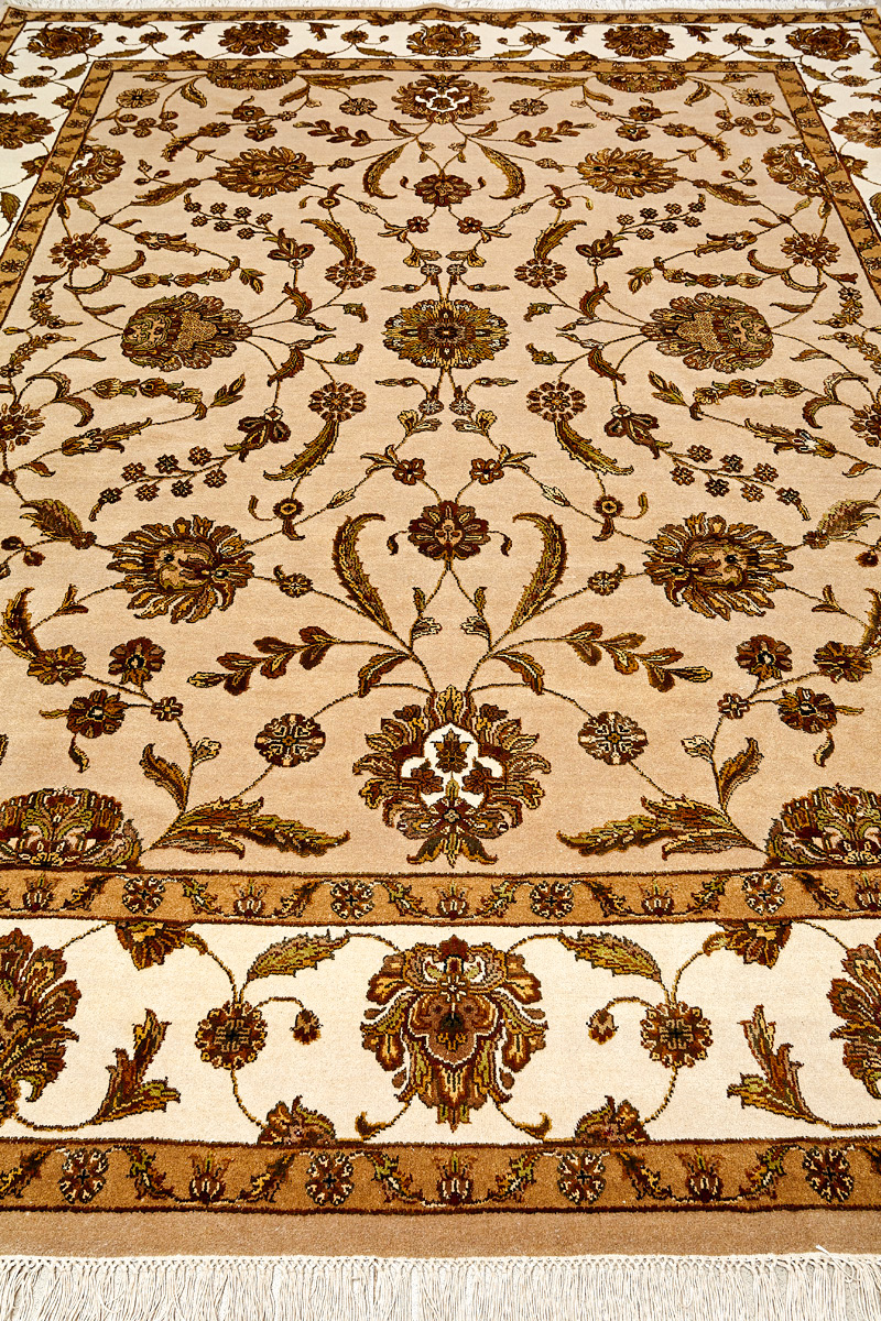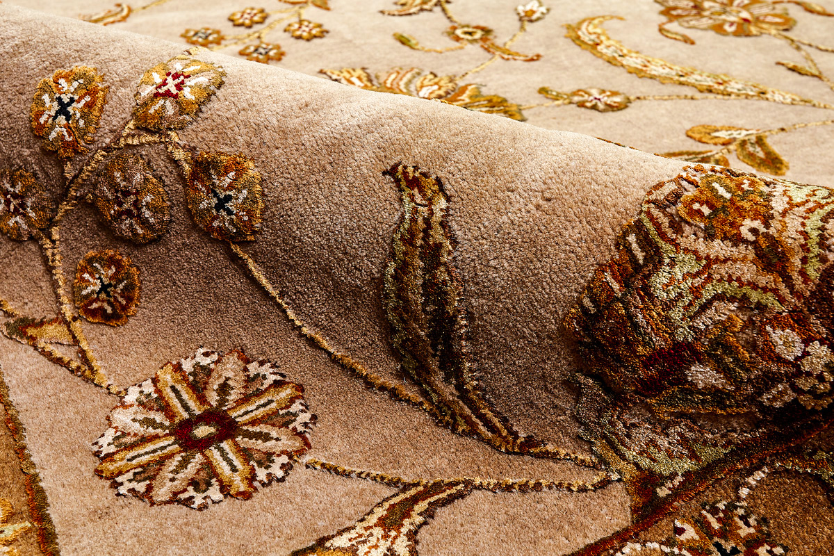 Более пяти веков назад в городе Агра зародилась знаменитая индийская школа ковроткачества, прославившаяся не меньше, чем расположенный здесь же Тадж-Махал. Мощное персидское влияние, помноженное на местный колорит, привело к появлению оригинальных орнаментов с богатыми растительными узорами — причудливым цветам, ветвям и листьям, разбросанным по всему полю ковра.