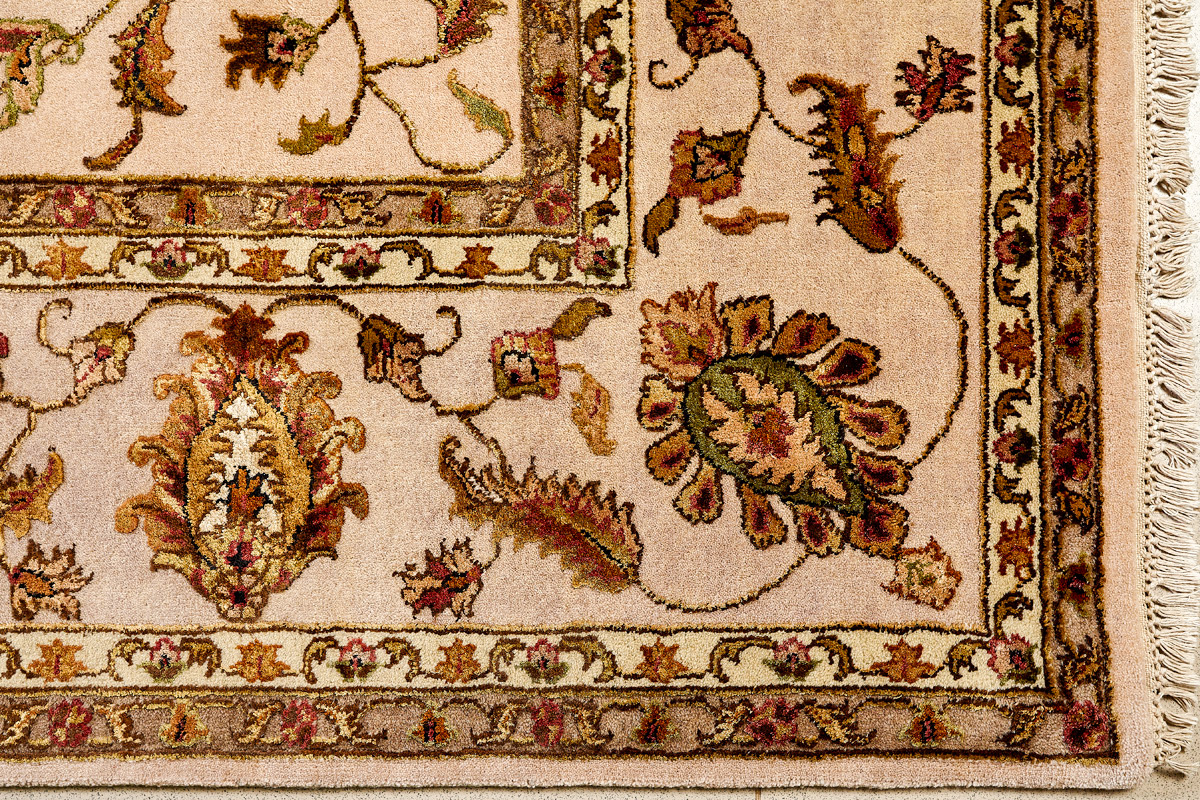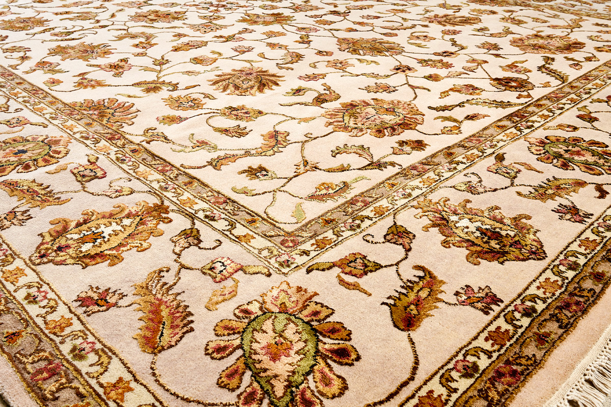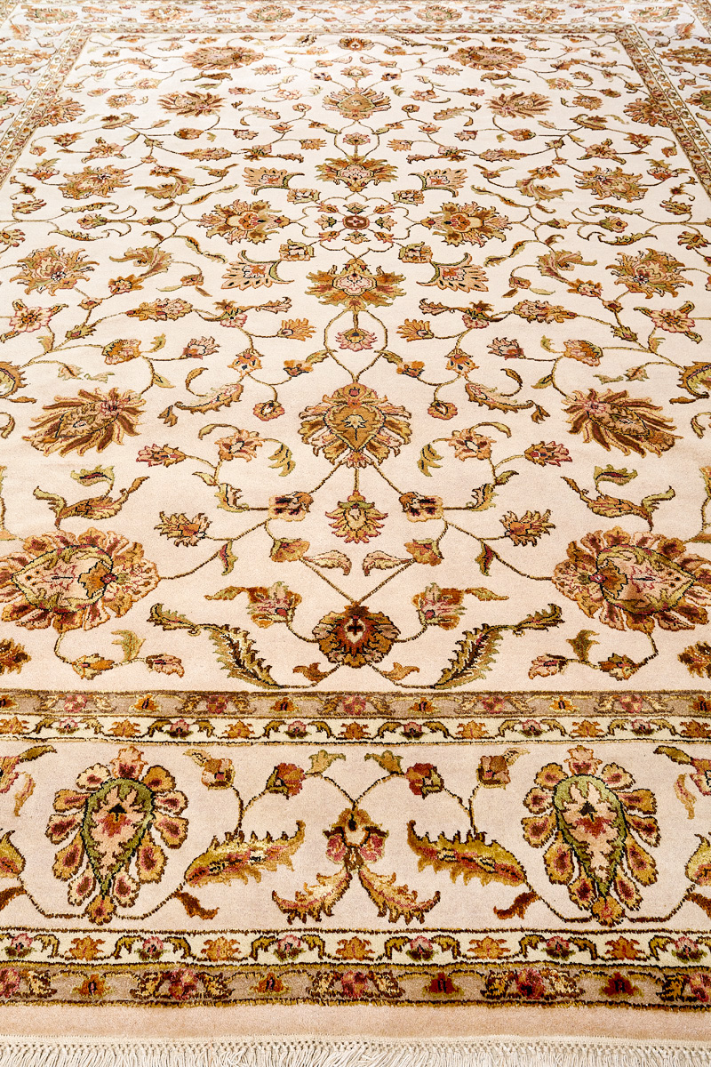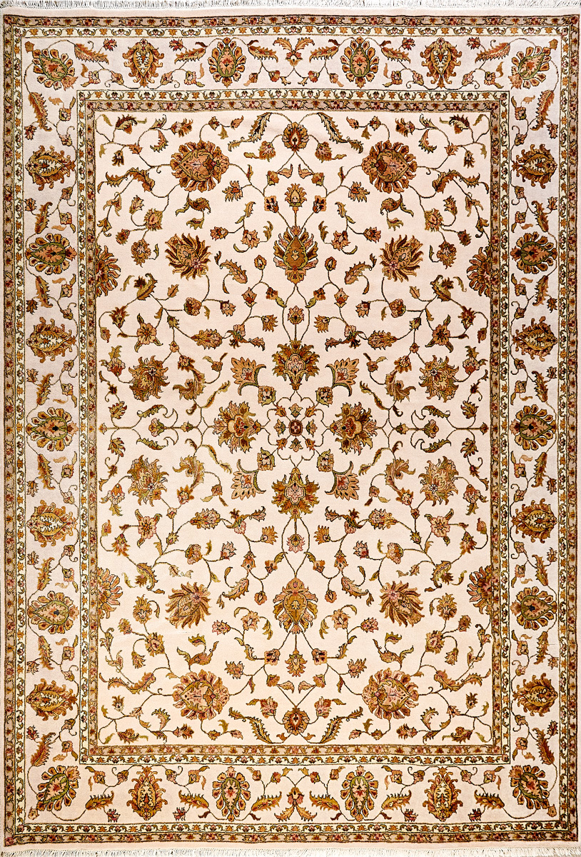 Более пяти веков назад в городе Агра зародилась знаменитая индийская школа ковроткачества, прославившаяся не меньше, чем расположенный здесь же Тадж-Махал. Мощное персидское влияние, помноженное на местный колорит, привело к появлению оригинальных орнаментов с богатыми растительными узорами — причудливым цветам, ветвям и листьям, разбросанным по всему полю ковра.