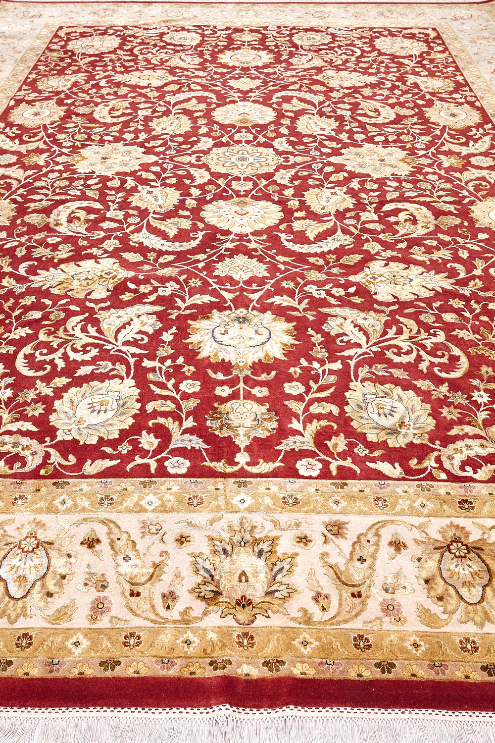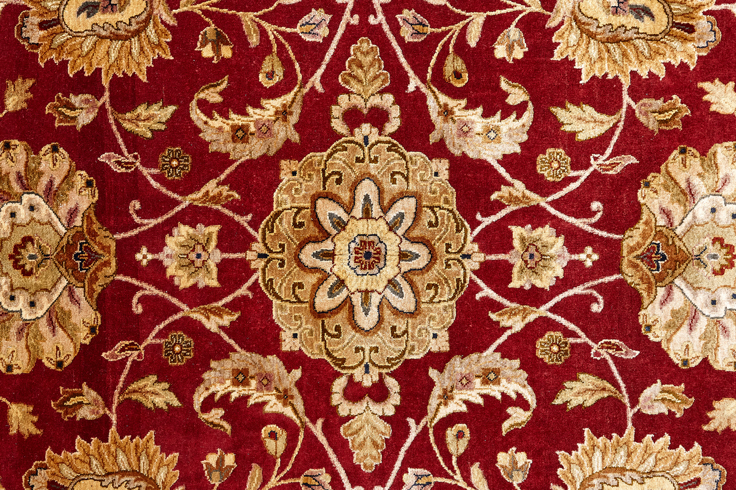 Более пяти веков назад в городе Агра зародилась знаменитая индийская школа ковроткачества, прославившаяся не меньше, чем расположенный здесь же Тадж-Махал. Мощное персидское влияние, помноженное на местный колорит, привело к появлению оригинальных орнаментов с богатыми растительными узорами — причудливым цветам, ветвям и листьям, разбросанным по всему полю ковра.