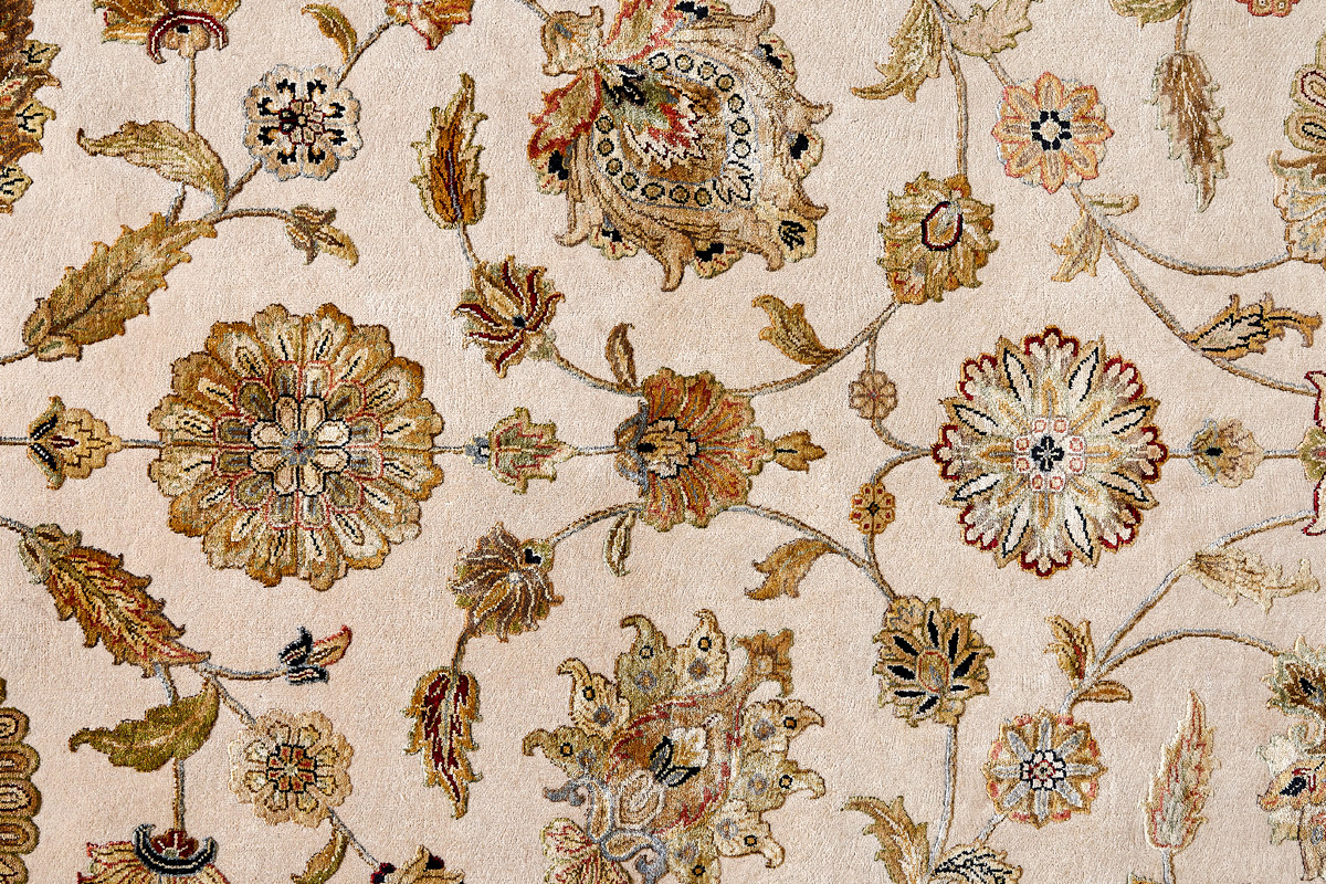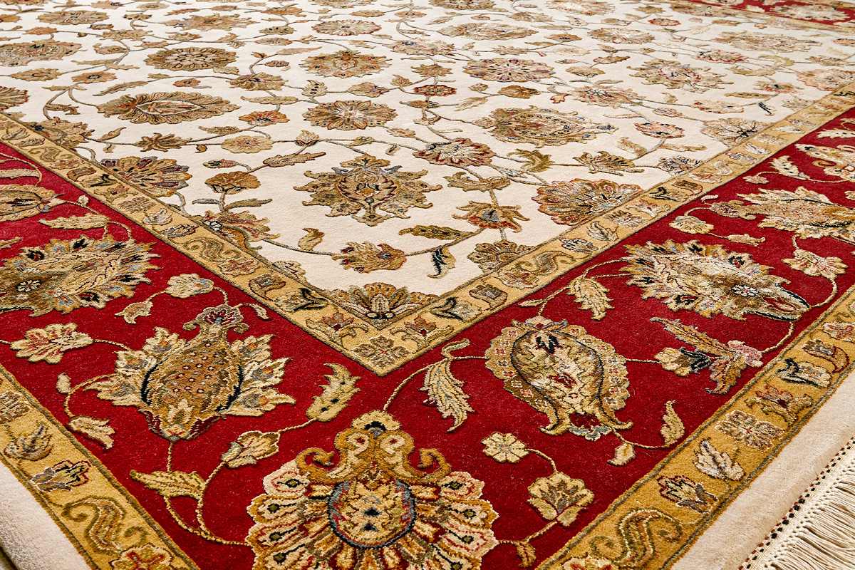 Более пяти веков назад в городе Агра зародилась знаменитая индийская школа ковроткачества, прославившаяся не меньше, чем расположенный здесь же Тадж-Махал. Мощное персидское влияние, помноженное на местный колорит, привело к появлению оригинальных орнаментов с богатыми растительными узорами — причудливым цветам, ветвям и листьям, разбросанным по всему полю ковра.