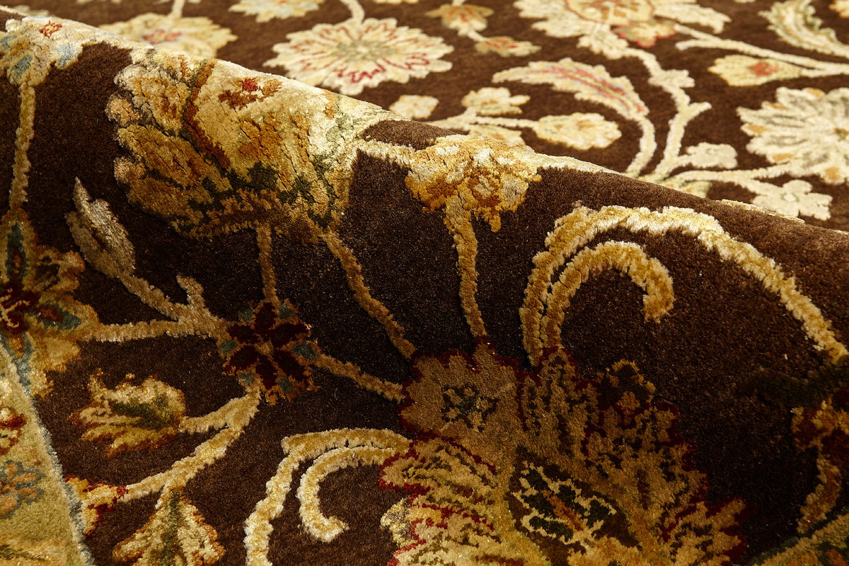 Каждый ковер в этой коллекции соткан вручную из шерсти и арт шёлка опытными индийскими мастерами.
