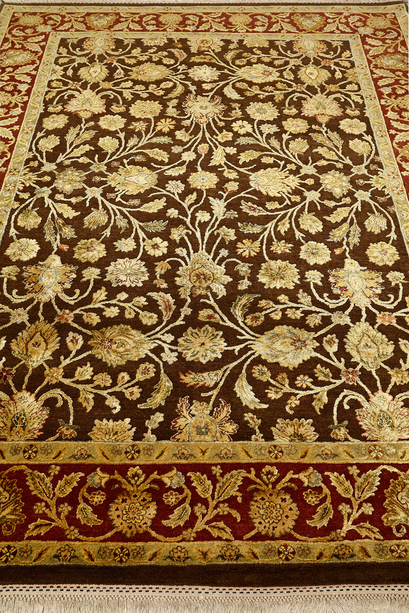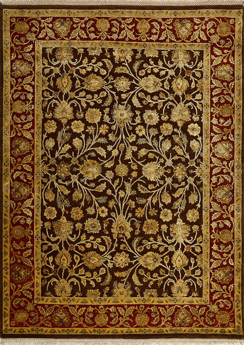 Более пяти веков назад в городе Агра зародилась знаменитая индийская школа ковроткачества, прославившаяся не меньше, чем расположенный здесь же Тадж-Махал. Мощное персидское влияние, помноженное на местный колорит, привело к появлению оригинальных орнаментов с богатыми растительными узорами — причудливым цветам, ветвям и листьям, разбросанным по всему полю ковра.