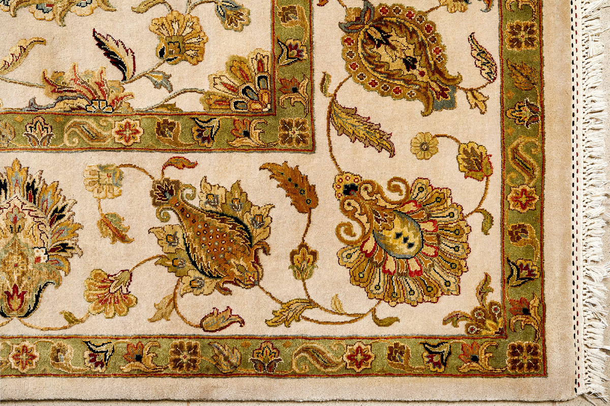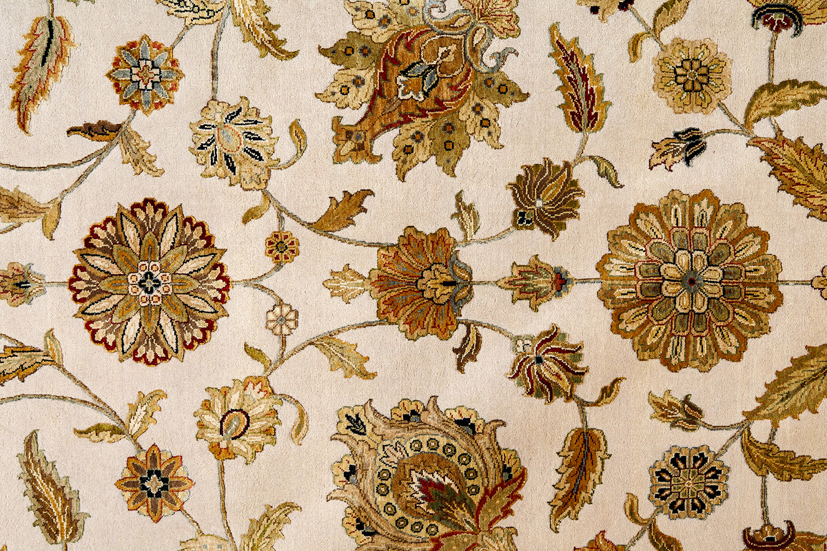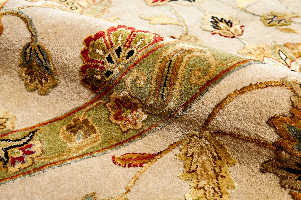 Более пяти веков назад в городе Агра зародилась знаменитая индийская школа ковроткачества, прославившаяся не меньше, чем расположенный здесь же Тадж-Махал. Мощное персидское влияние, помноженное на местный колорит, привело к появлению оригинальных орнаментов с богатыми растительными узорами — причудливым цветам, ветвям и листьям, разбросанным по всему полю ковра.