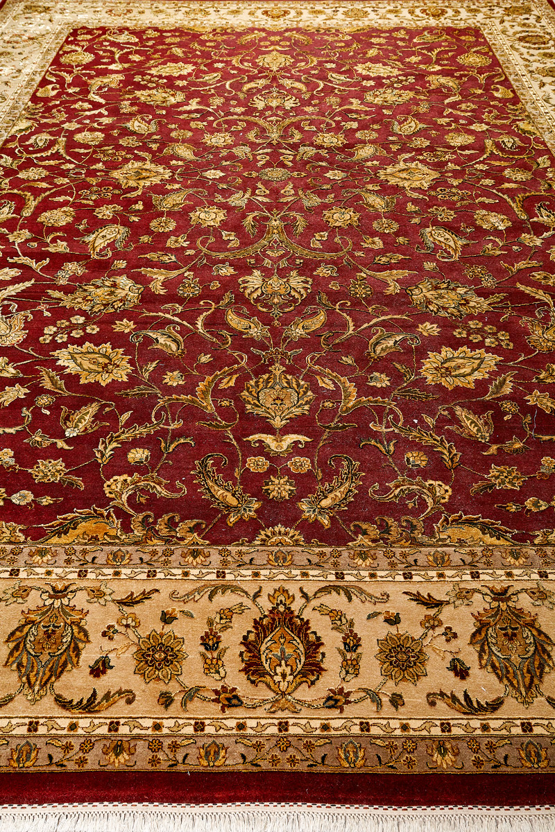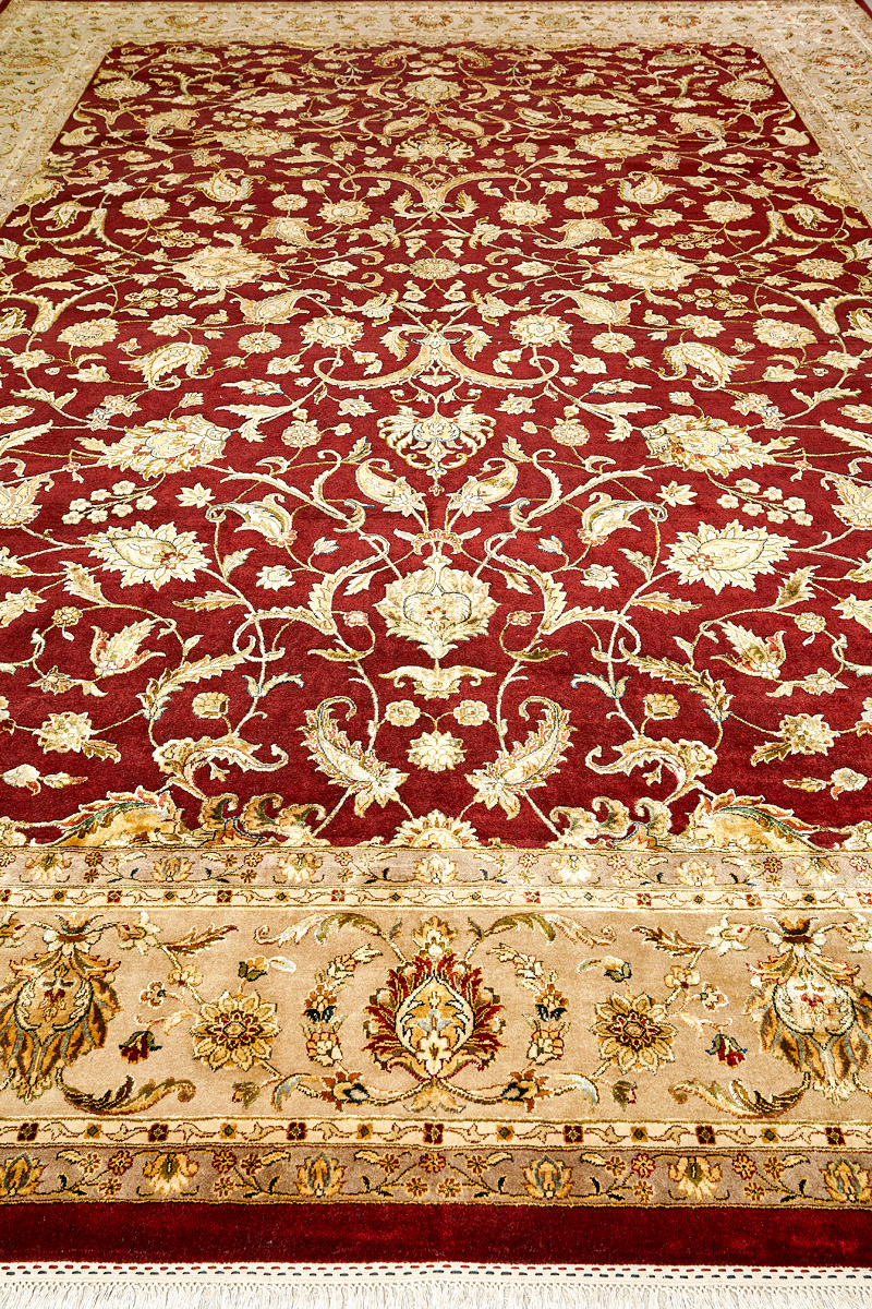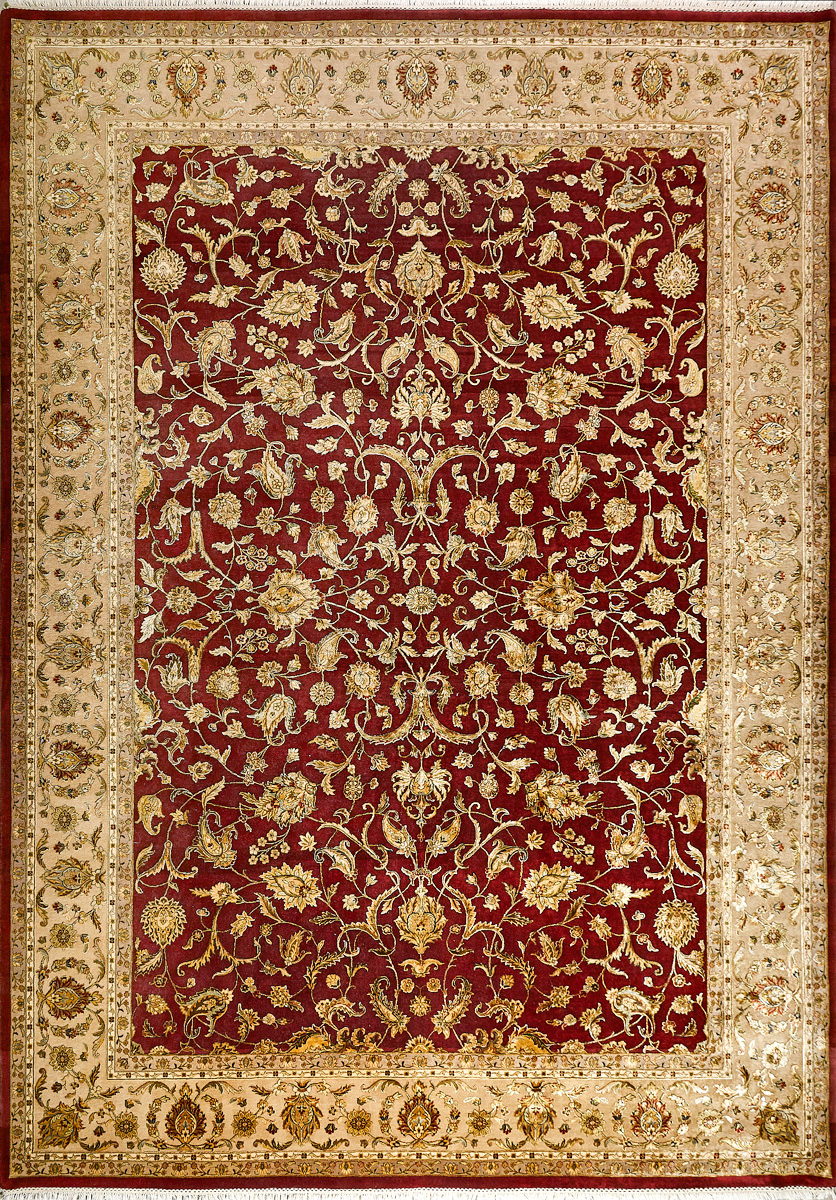 Более пяти веков назад в городе Агра зародилась знаменитая индийская школа ковроткачества, прославившаяся не меньше, чем расположенный здесь же Тадж-Махал. Мощное персидское влияние, помноженное на местный колорит, привело к появлению оригинальных орнаментов с богатыми растительными узорами — причудливым цветам, ветвям и листьям, разбросанным по всему полю ковра.