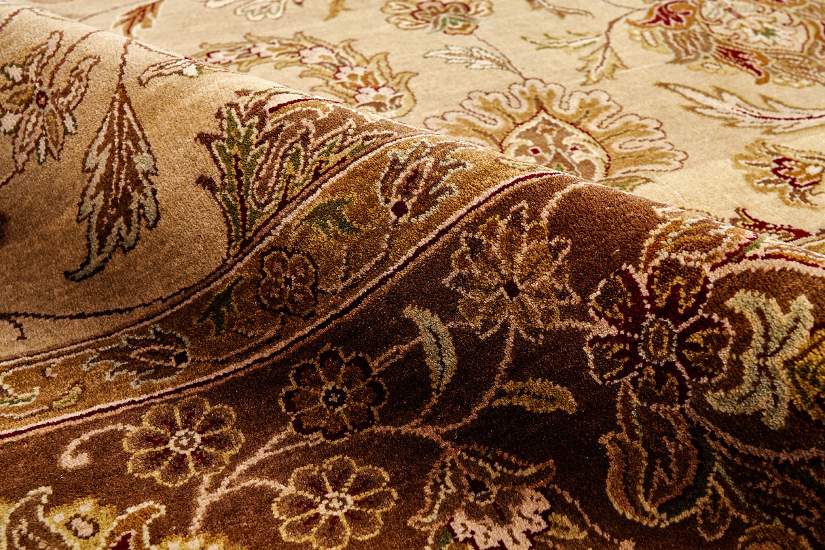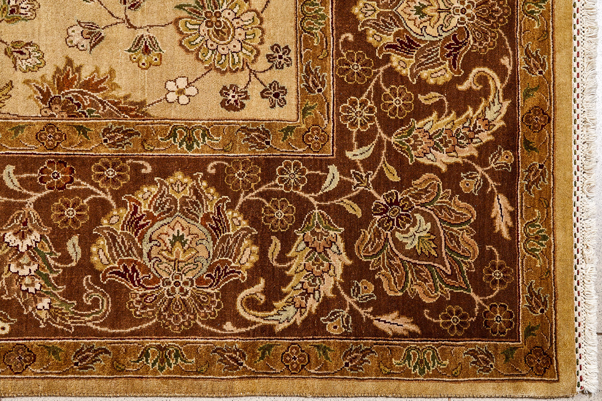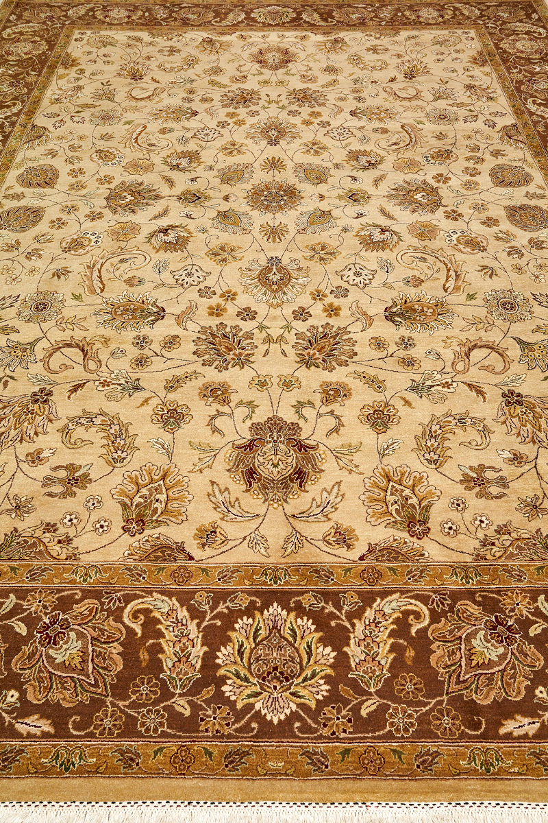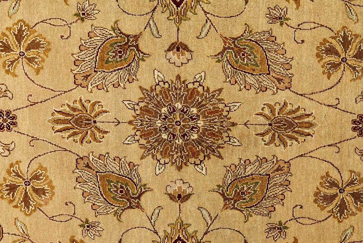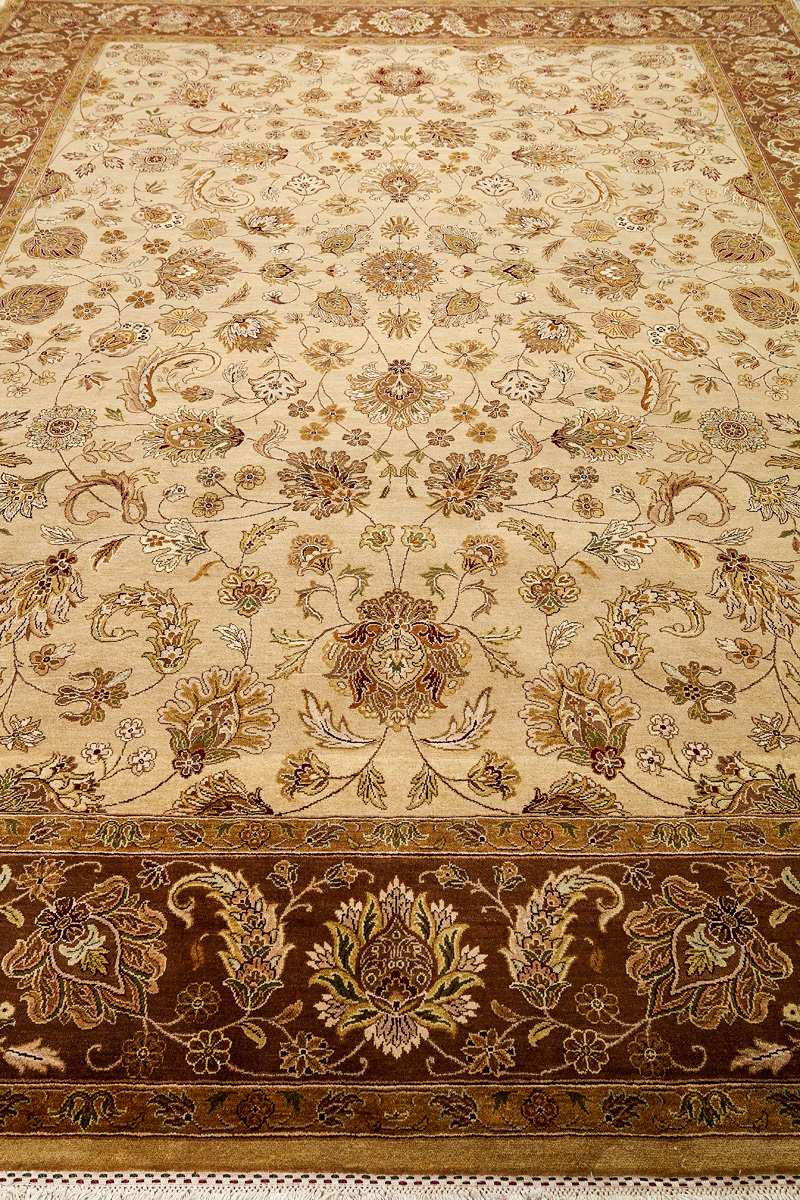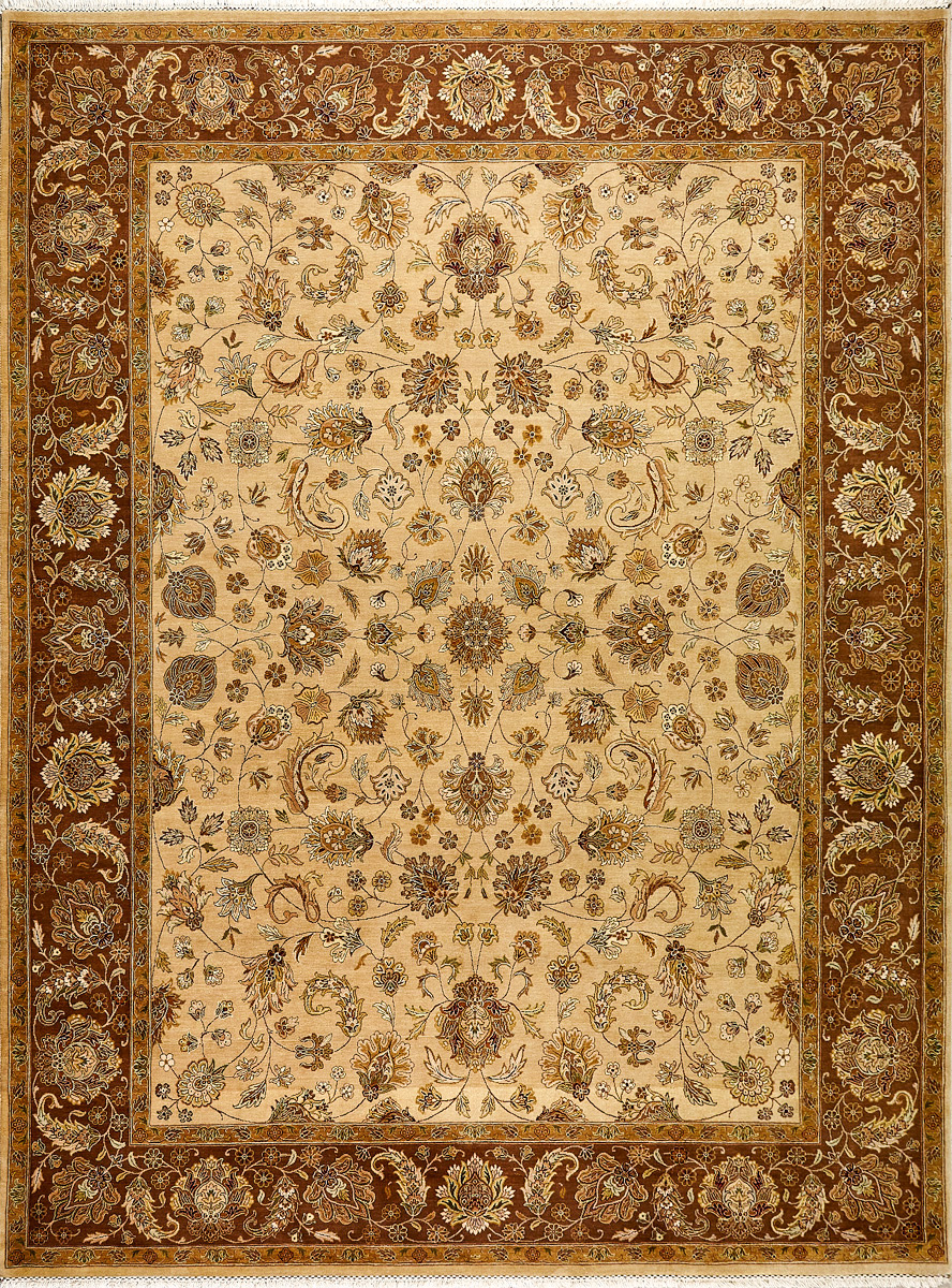 Более пяти веков назад в городе Агра зародилась знаменитая индийская школа ковроткачества, прославившаяся не меньше, чем расположенный здесь же Тадж-Махал. Мощное персидское влияние, помноженное на местный колорит, привело к появлению оригинальных орнаментов с богатыми растительными узорами — причудливым цветам, ветвям и листьям, разбросанным по всему полю ковра.