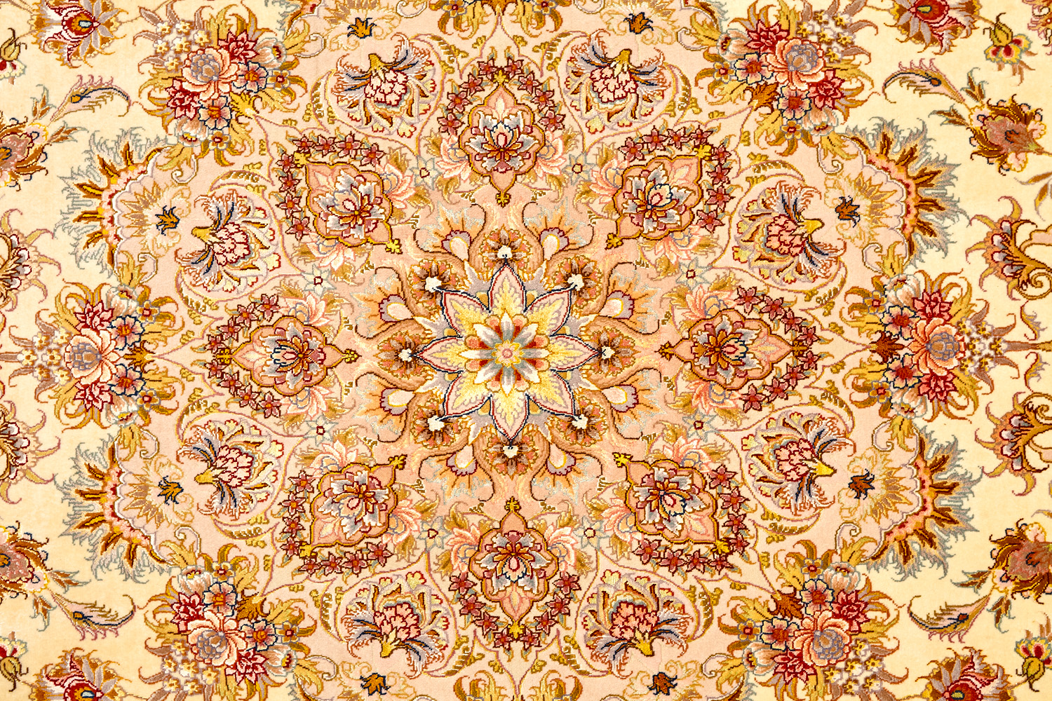 Рассыпанные по всему полю цветы, медальоны и «рыбная чешуя» — основные мотивы в дизайне ковров из коллекции Тебриз, а светлые тона и спокойные пастельные оттенки — основная цветовая палитра.