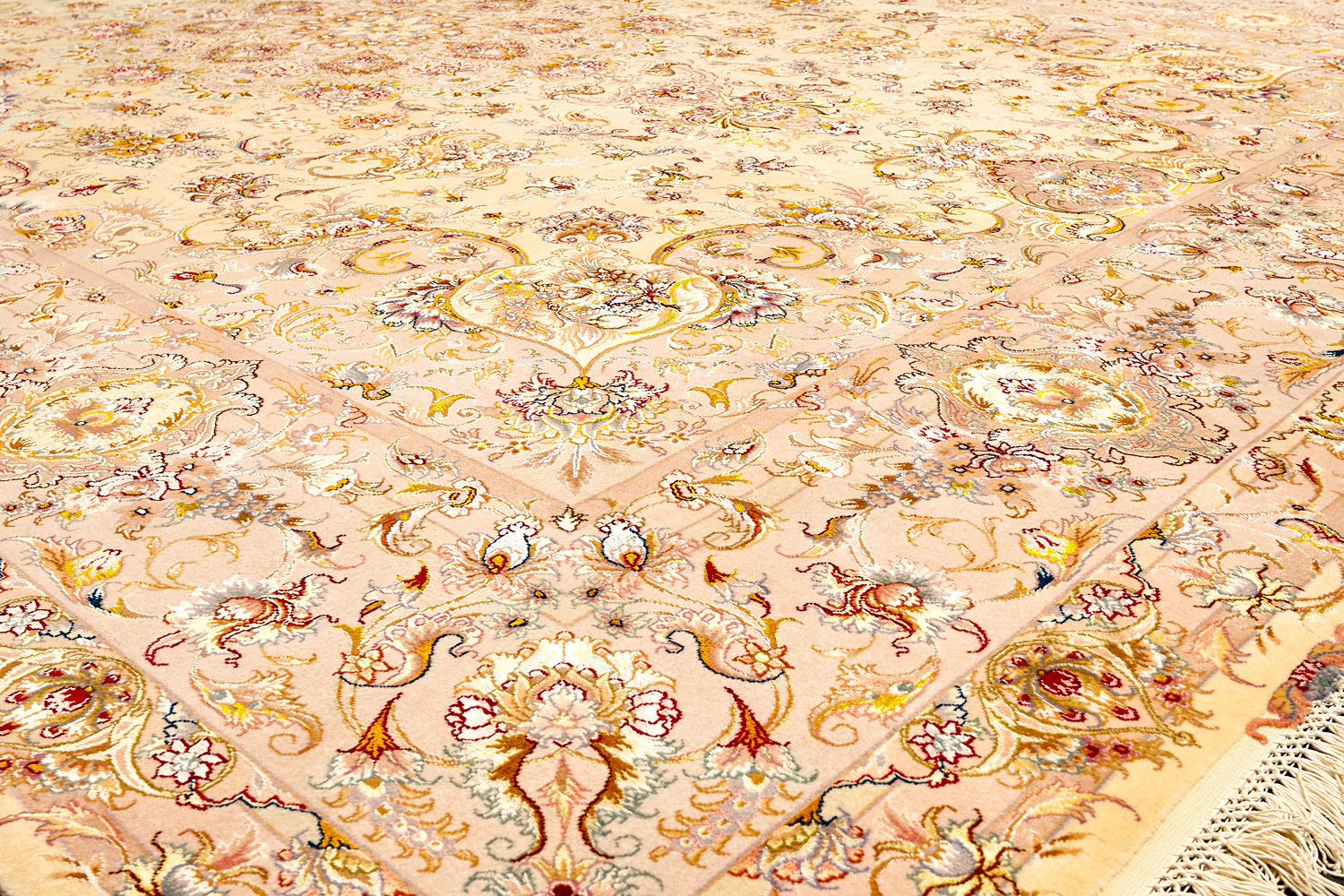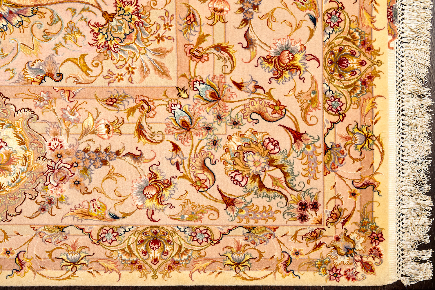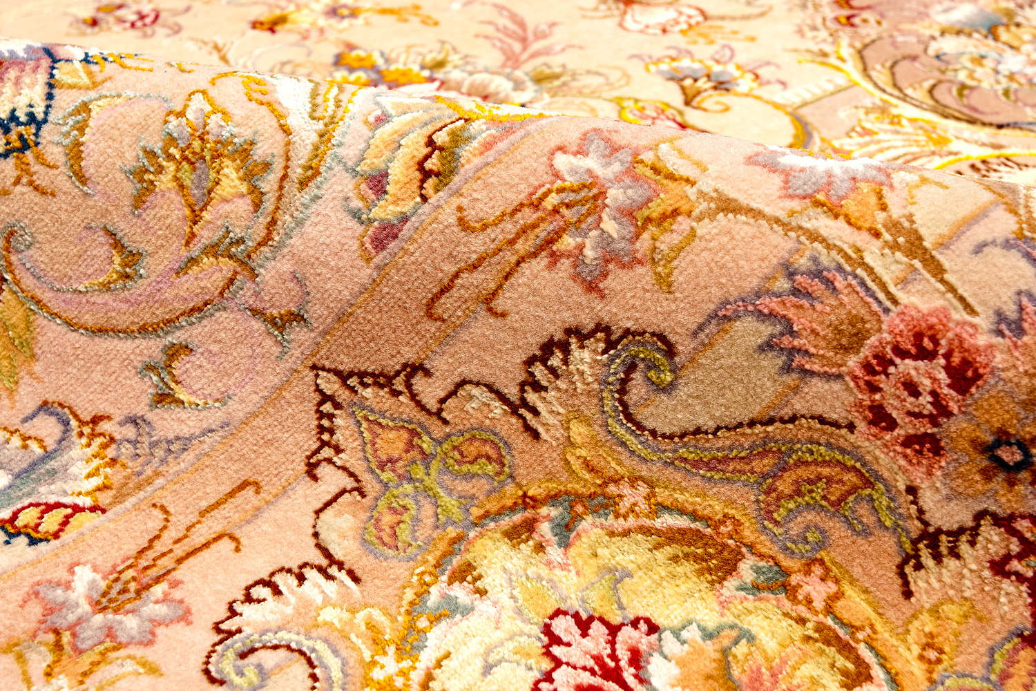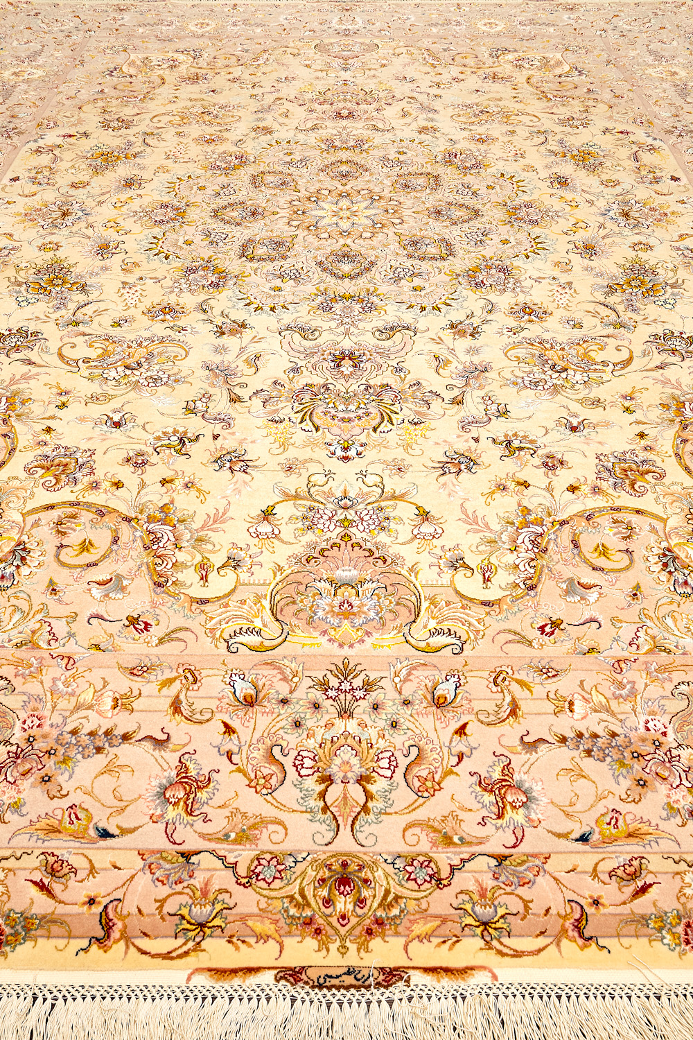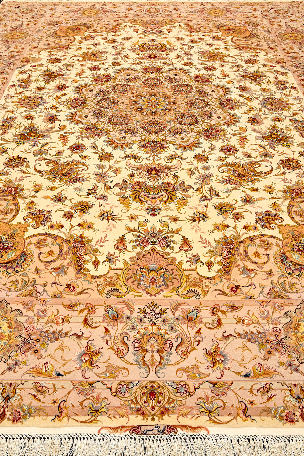 Ковры ткутся из шерсти и шёлка лучшими мастерами Ирана несколько лет, ведь обладают высочайшей плотностью для подобного состава ворса в 600 тысяч узлов на квадратный метр.