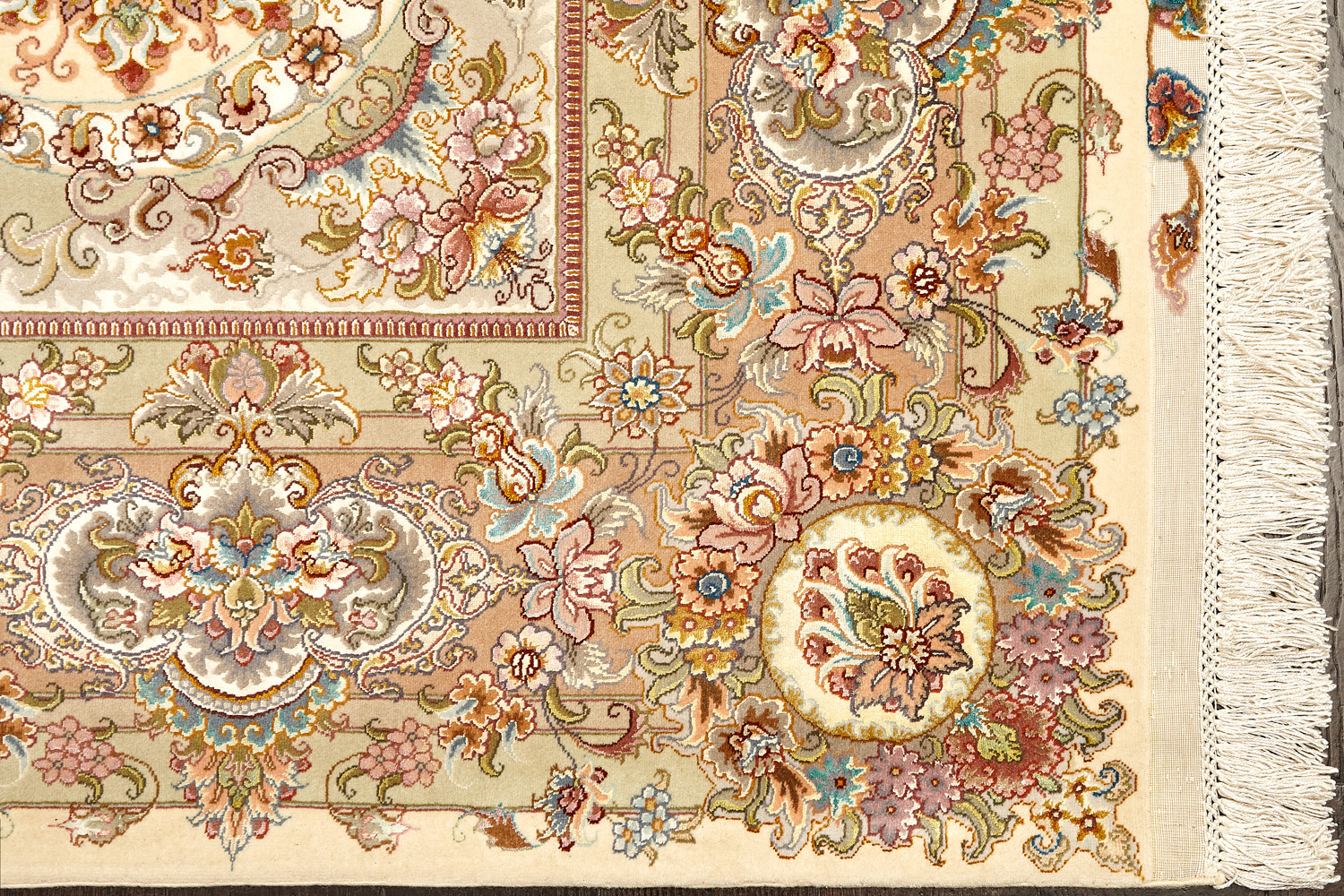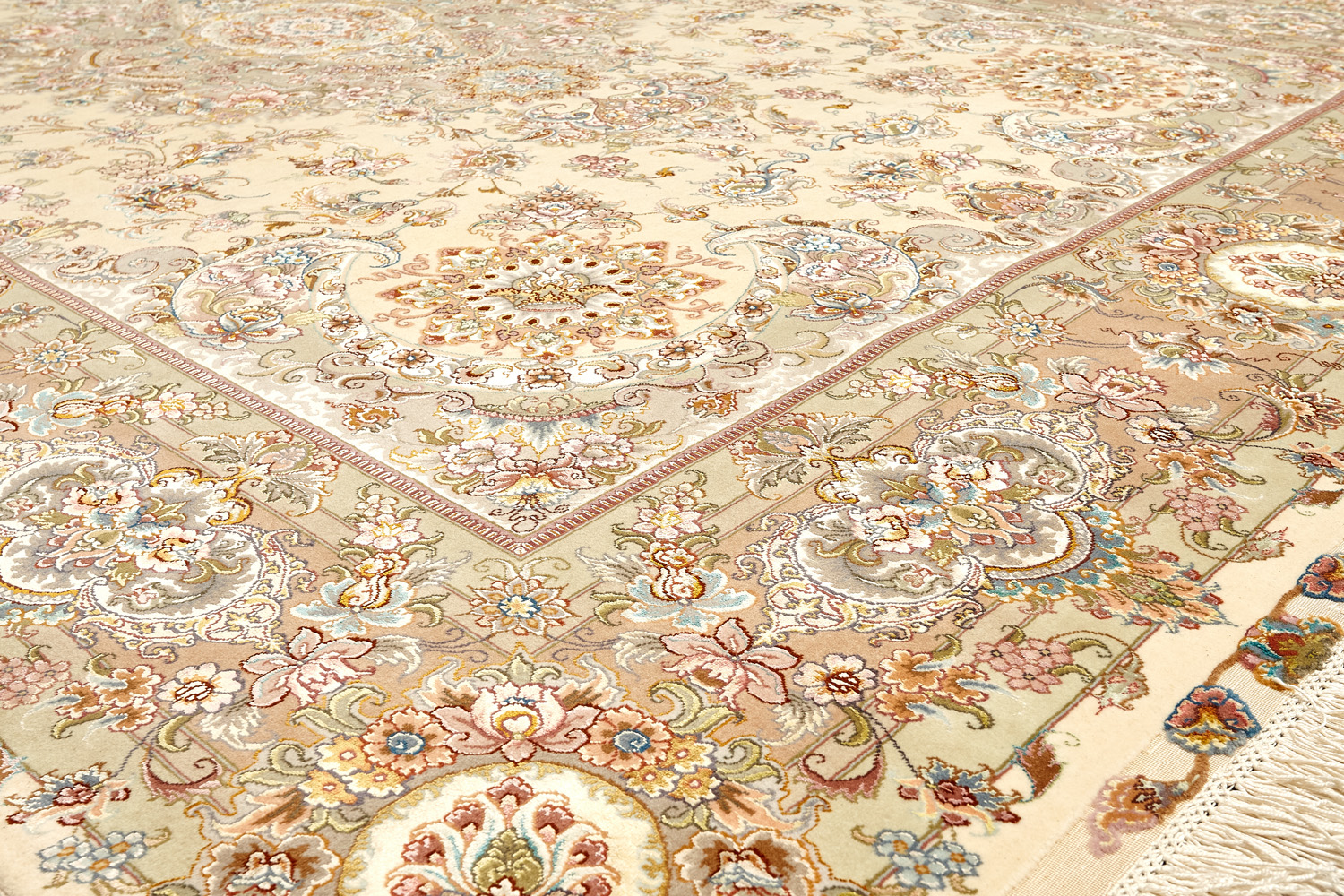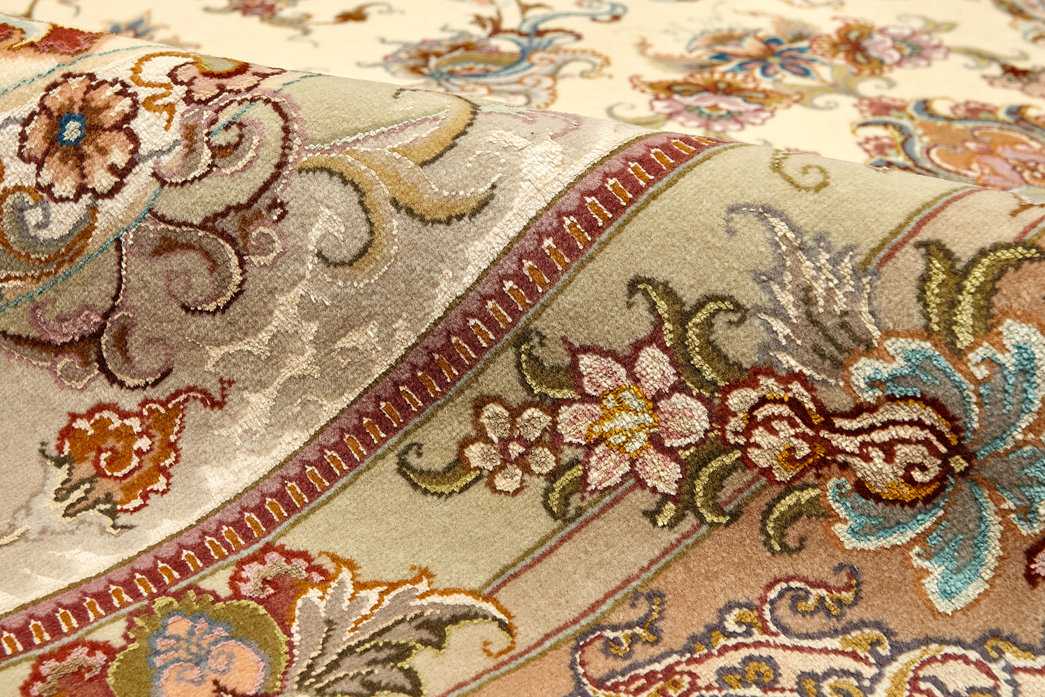 Ковры ткутся из шерсти и шёлка лучшими мастерами Ирана несколько лет, ведь обладают высочайшей плотностью для подобного состава ворса в 600 тысяч узлов на квадратный метр.