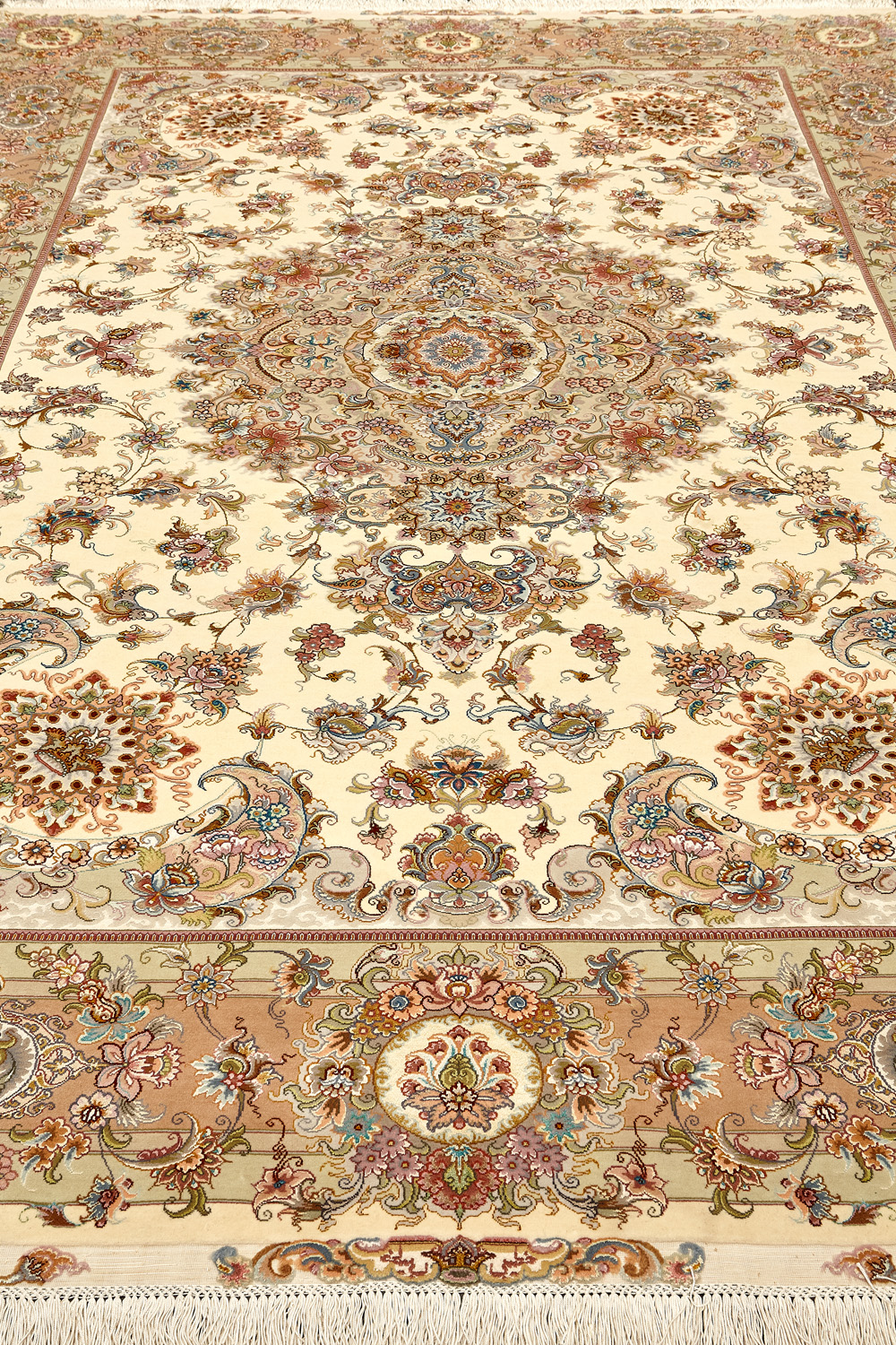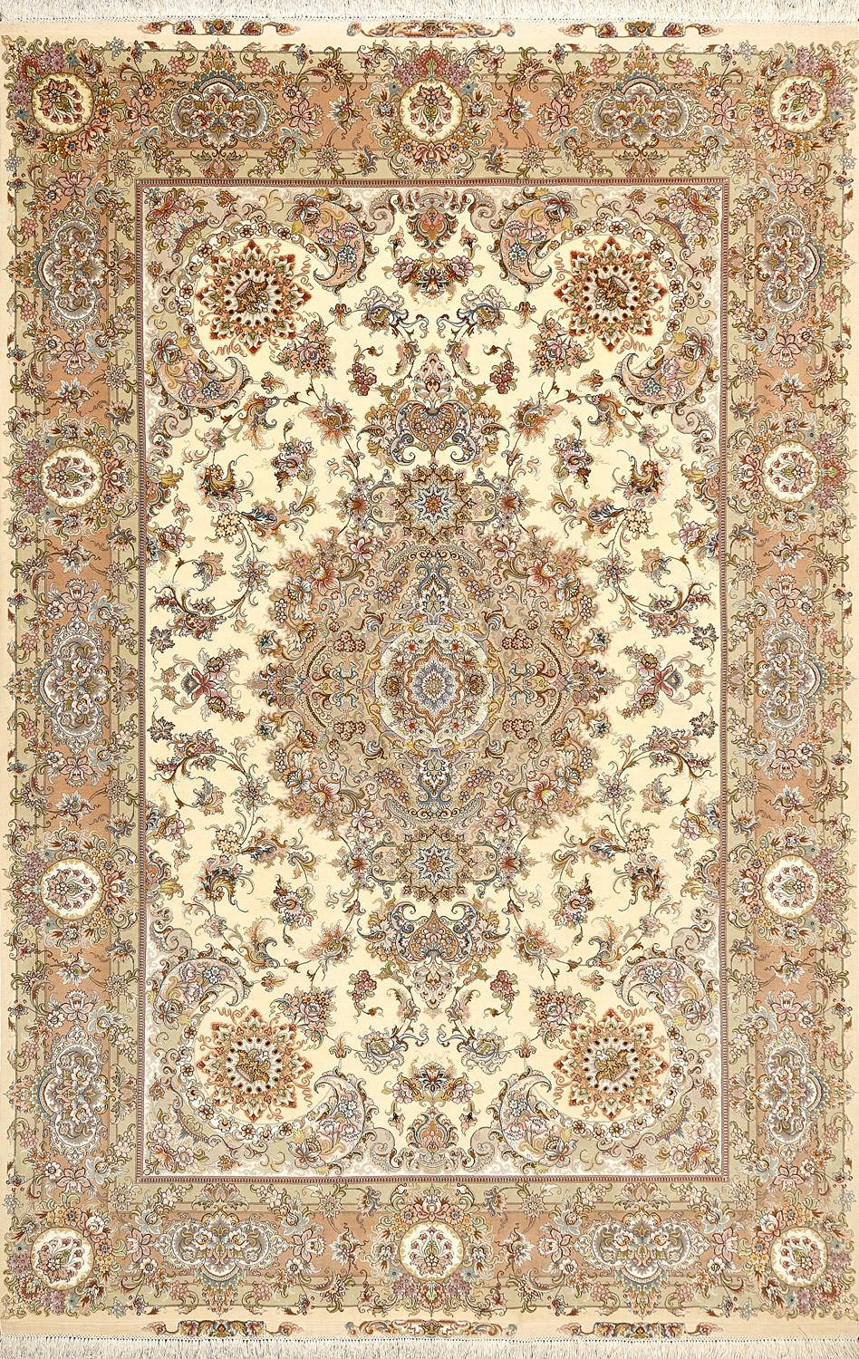 Рассыпанные по всему полю цветы, медальоны и «рыбная чешуя» — основные мотивы в дизайне ковров из коллекции Тебриз, а светлые тона и спокойные пастельные оттенки — основная цветовая палитра.