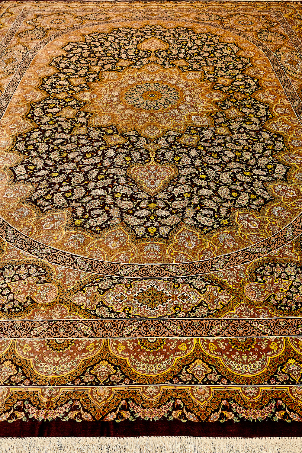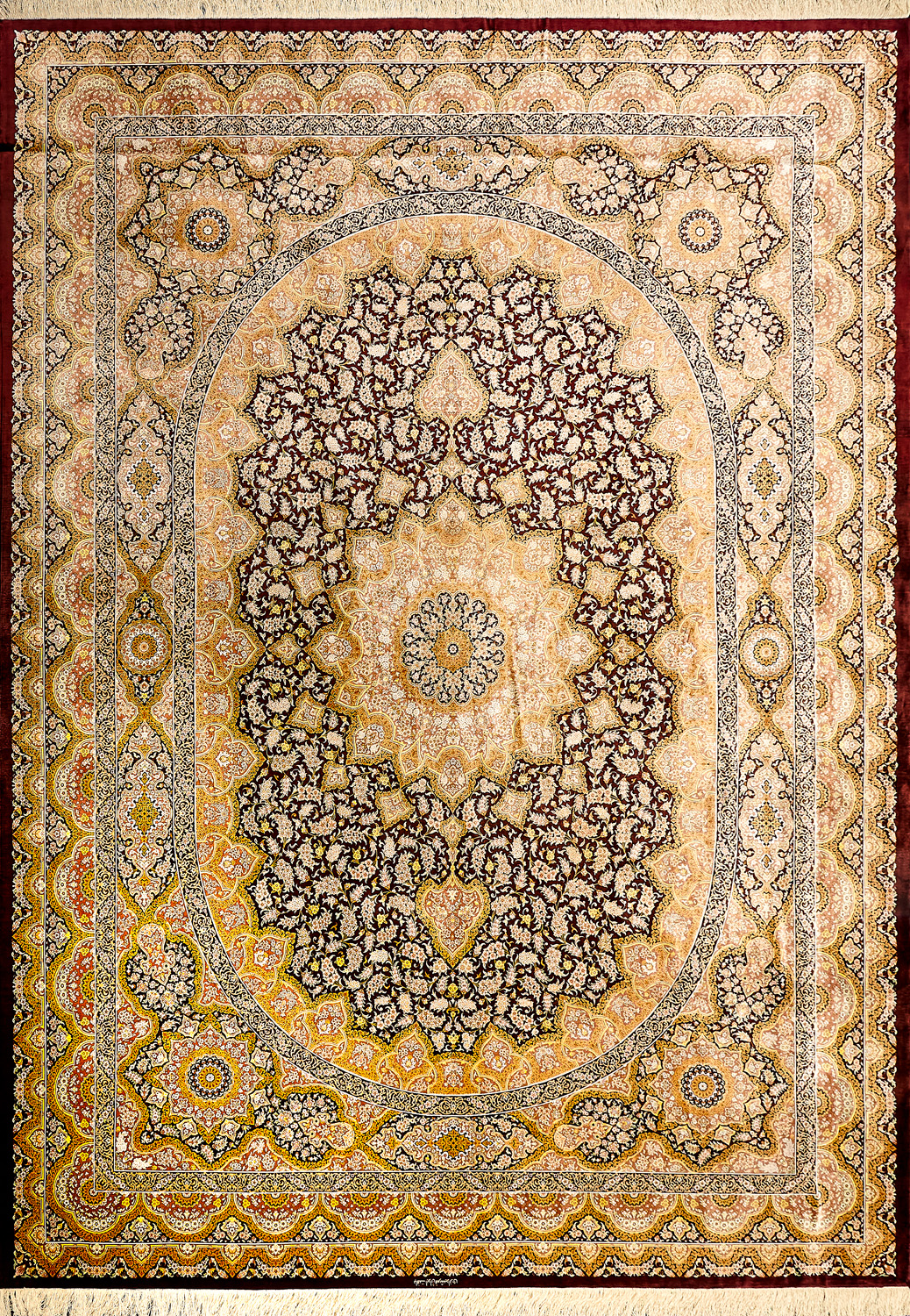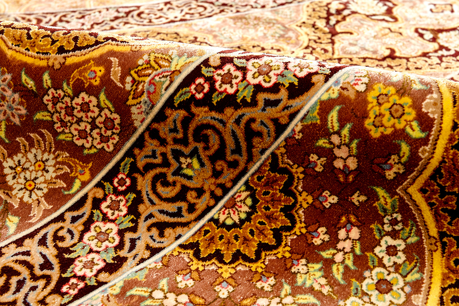 Детальные орнаменты, множество насыщенных оттенков, мягкость и нежность переливающегося шёлка стали отличительными чертами прекрасных ковров и обеспечили им мировую известность.