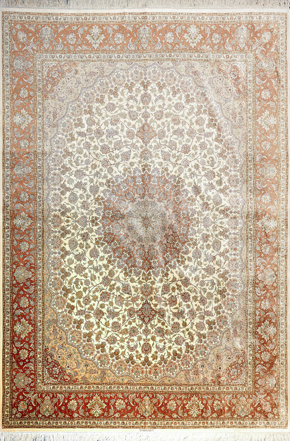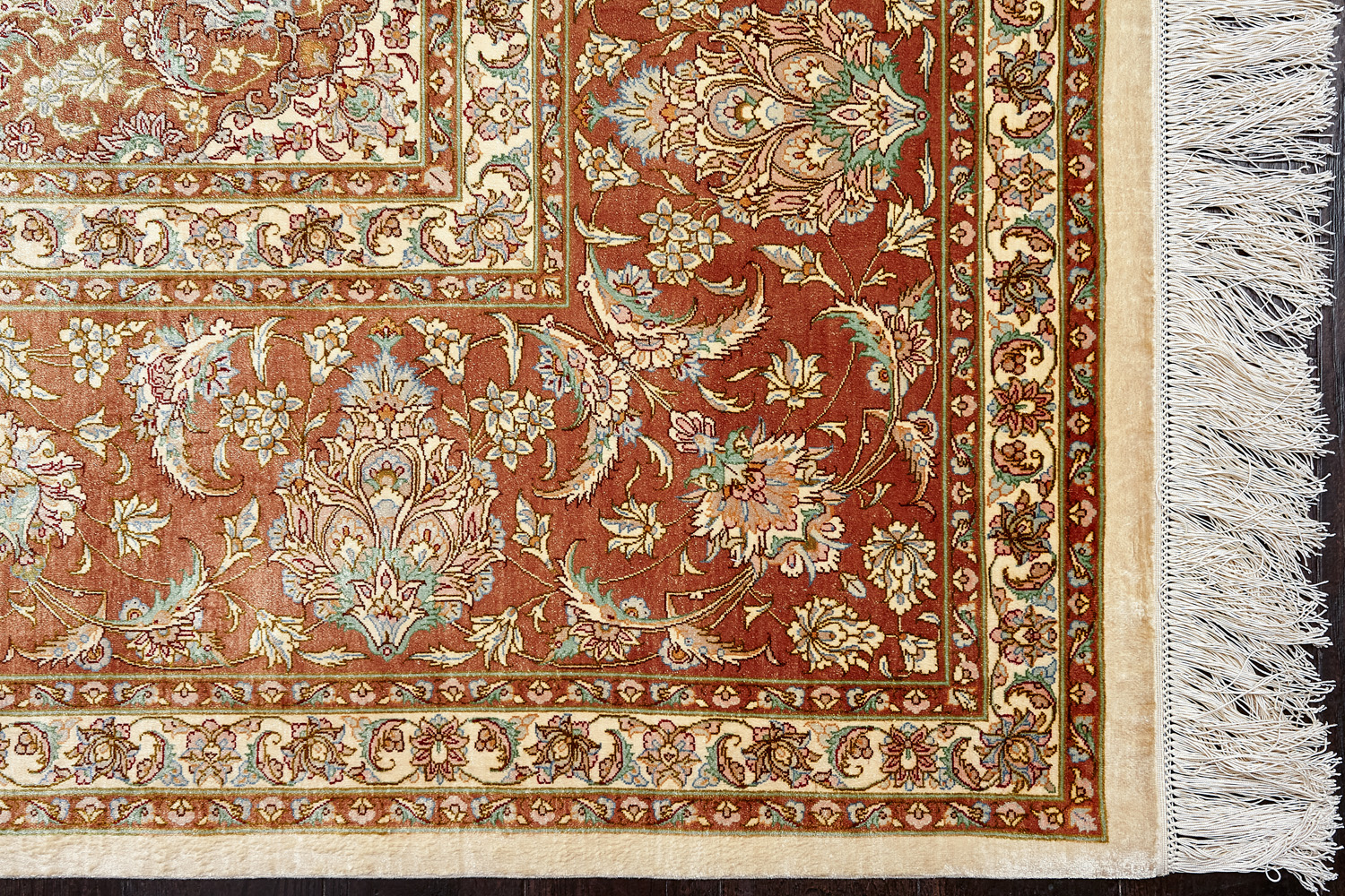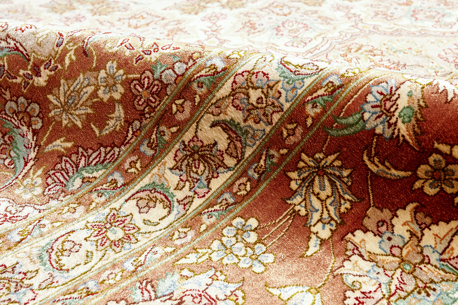Шёлковая нить гибкая и прочная, поэтому ковры из этого материала считаются самыми износостойкими, а по количеству цветов в одном узоре ковры из коллекции Кум, пожалуй, остаются непревзойдёнными.