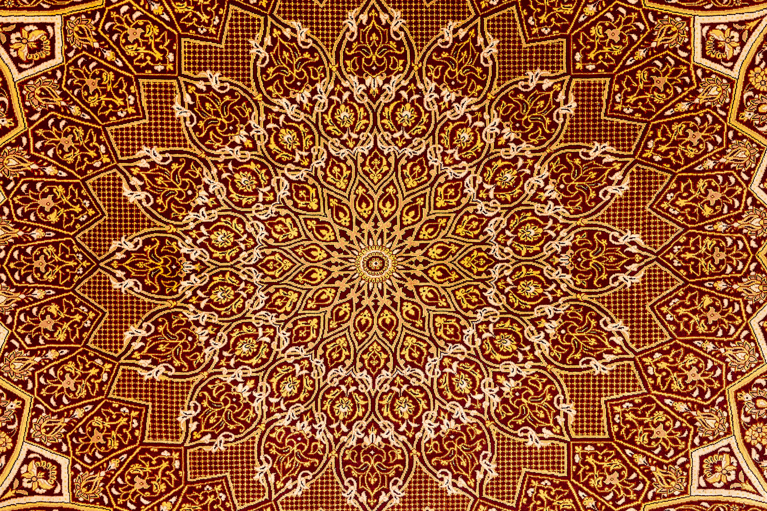 Шёлковая нить гибкая и прочная, поэтому ковры из этого материала считаются самыми износостойкими, а по количеству цветов в одном узоре ковры из коллекции Кум, пожалуй, остаются непревзойдёнными.
