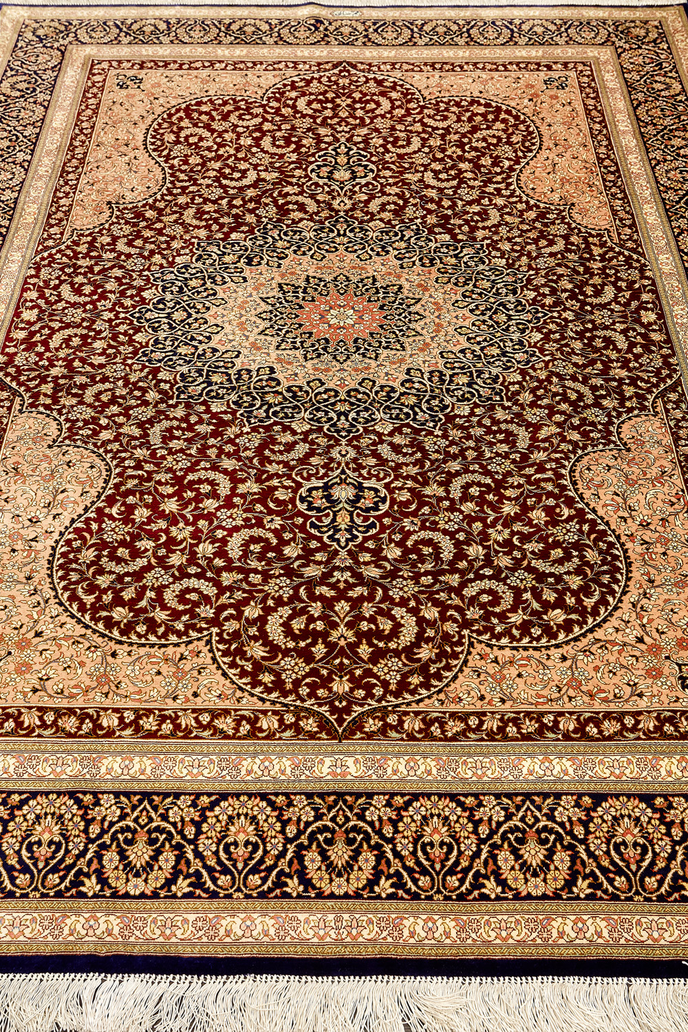Детальные орнаменты, множество насыщенных оттенков, мягкость и нежность переливающегося шёлка стали отличительными чертами прекрасных ковров и обеспечили им мировую известность.