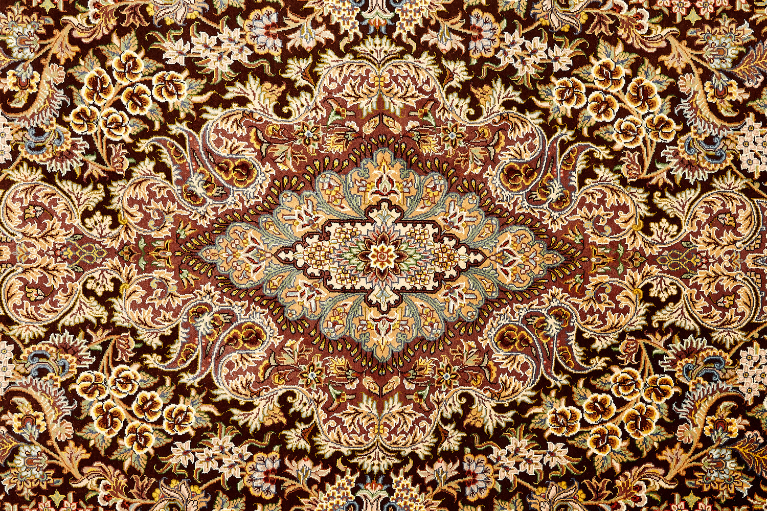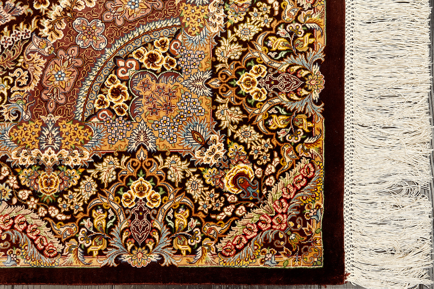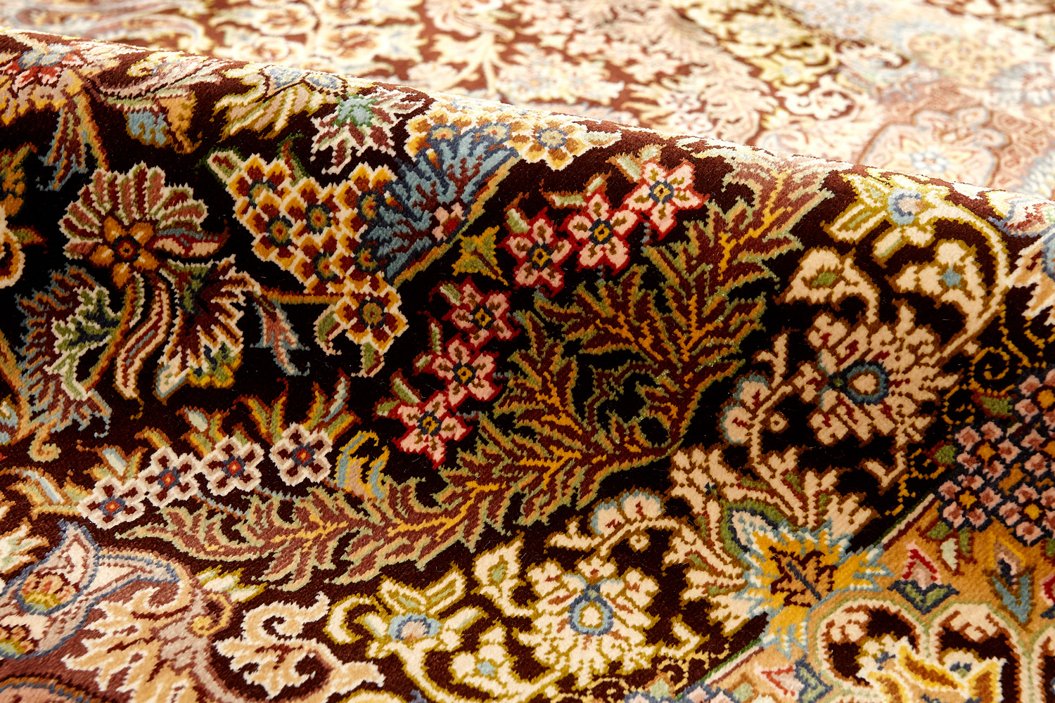 Шёлковая нить гибкая и прочная, поэтому ковры из этого материала считаются самыми износостойкими, а по количеству цветов в одном узоре ковры из коллекции Кум, пожалуй, остаются непревзойдёнными.