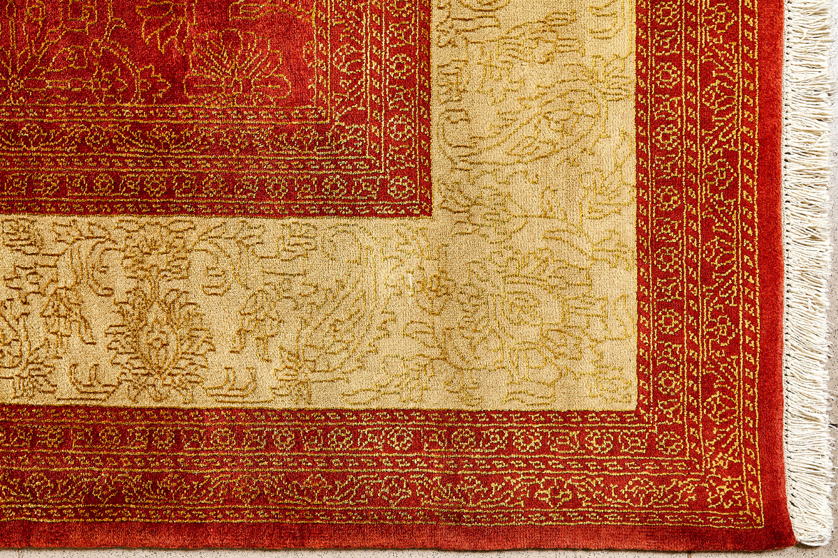 Более пяти веков назад в городе Агра зародилась знаменитая индийская школа ковроткачества, прославившаяся не меньше, чем расположенный здесь же Тадж-Махал. Мощное персидское влияние, помноженное на местный колорит, привело к появлению оригинальных орнаментов с богатыми растительными узорами — причудливым цветам, ветвям и листьям, разбросанным по всему полю ковра.