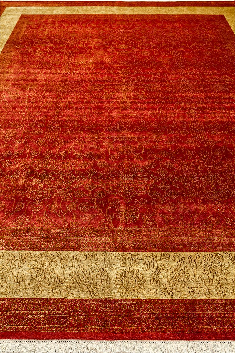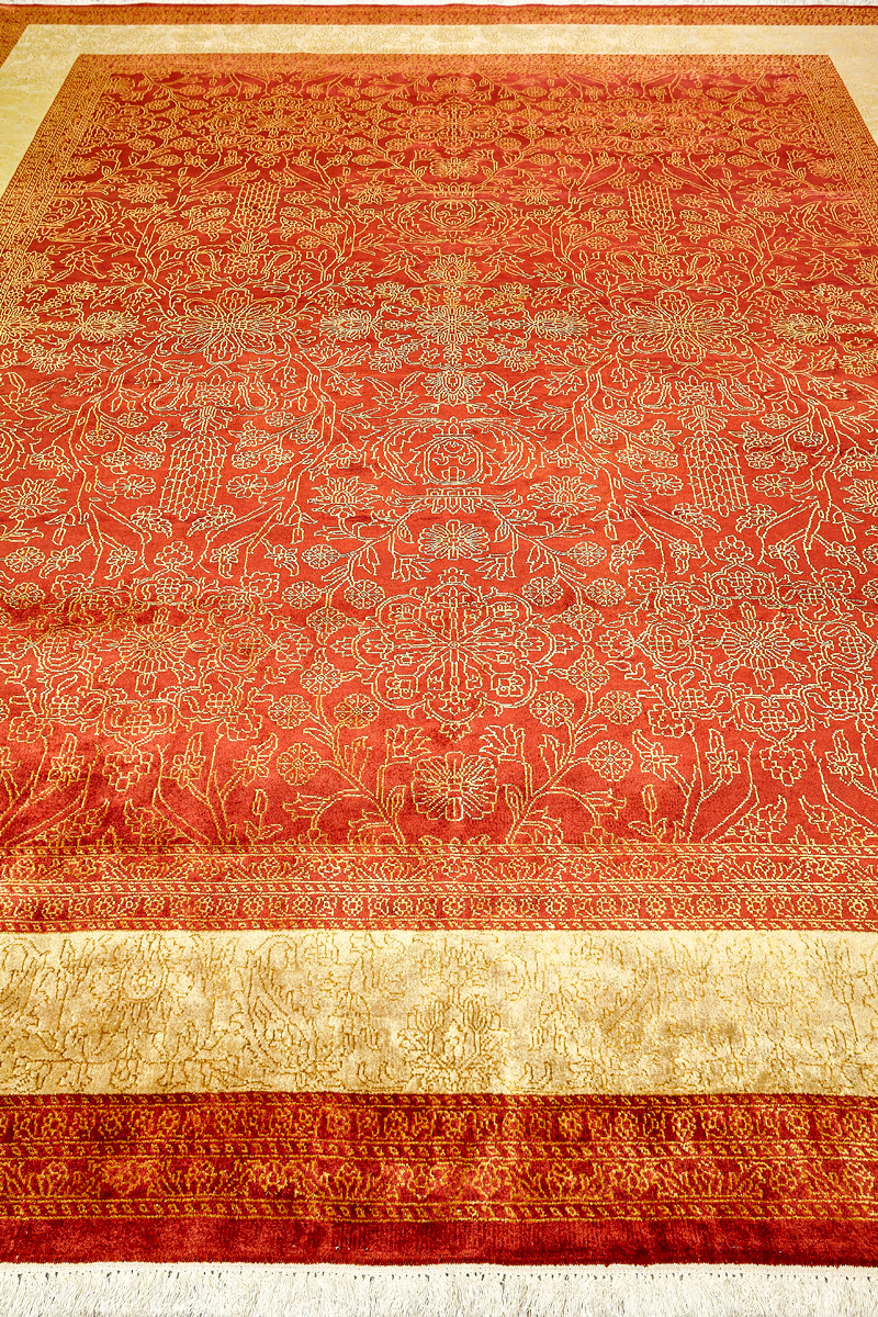 Каждый ковер в этой коллекции соткан вручную из шерсти и арт шёлка опытными индийскими мастерами.