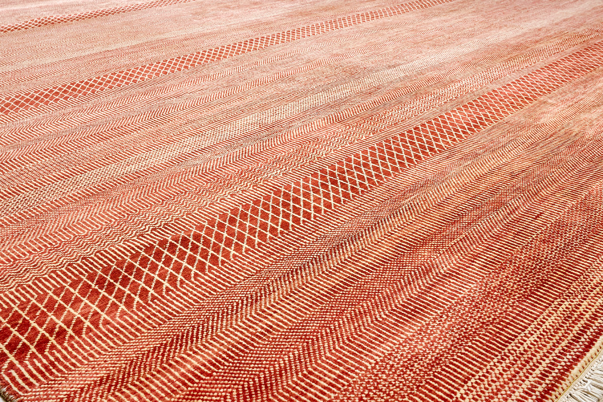 Дизайн ковров напоминает современные полотна художников-абстракционистов и производит столь же яркое и незабываемое впечатление в интерьере. Живописный эффект и необычная фактура зависят от выбора материала: натуральной шерсти, шёлка и от их сочетаний друг с другом. Ковры ткутся вручную в лучших мастерских Индии и Пакистана.
