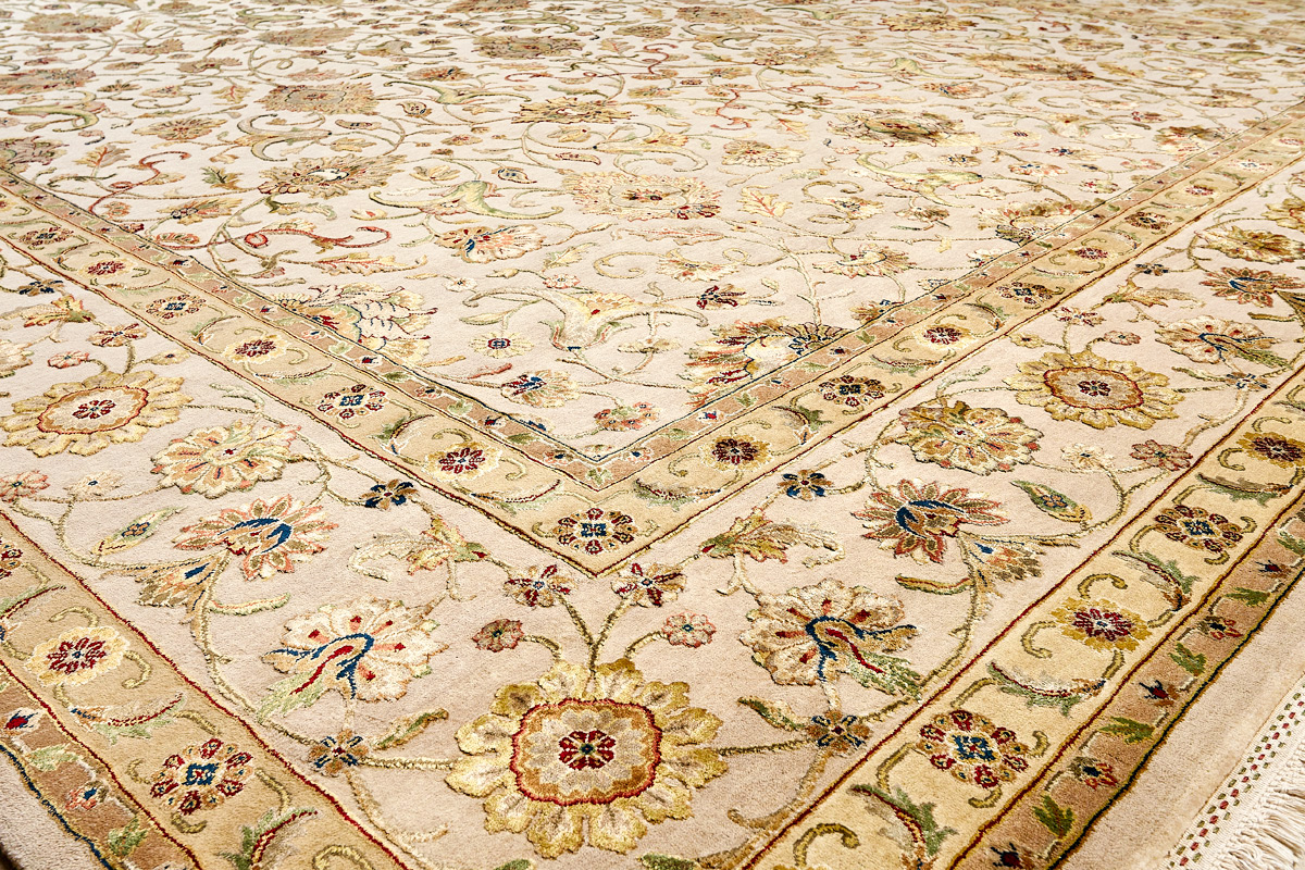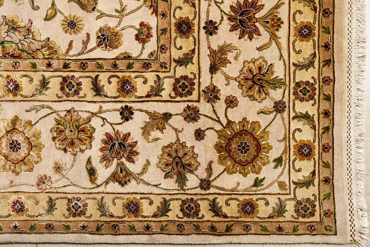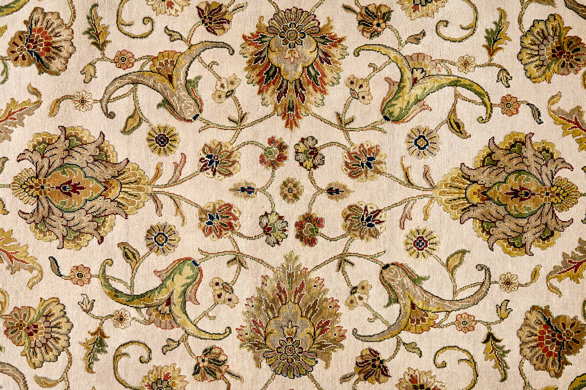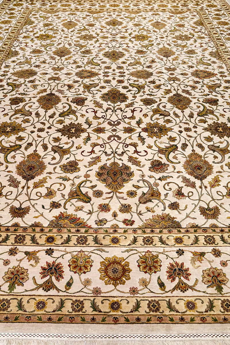 Более пяти веков назад в городе Агра зародилась знаменитая индийская школа ковроткачества, прославившаяся не меньше, чем расположенный здесь же Тадж-Махал. Мощное персидское влияние, помноженное на местный колорит, привело к появлению оригинальных орнаментов с богатыми растительными узорами — причудливым цветам, ветвям и листьям, разбросанным по всему полю ковра.