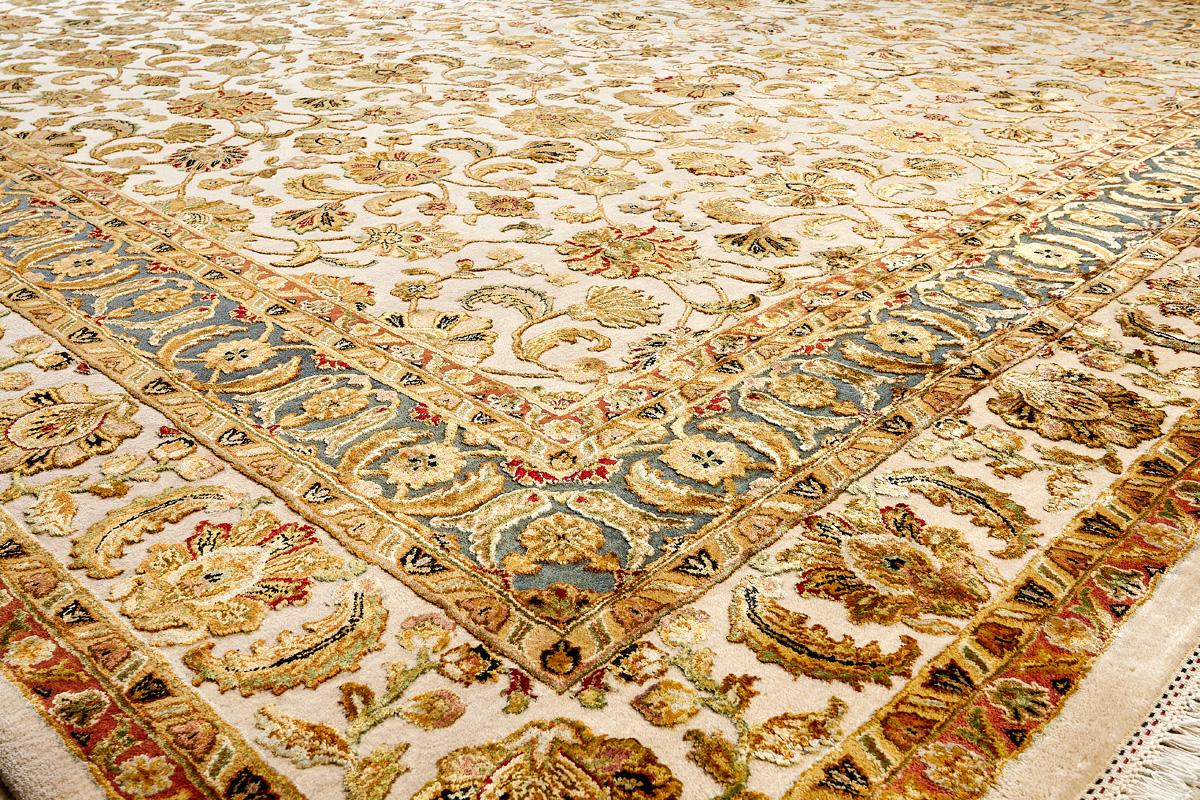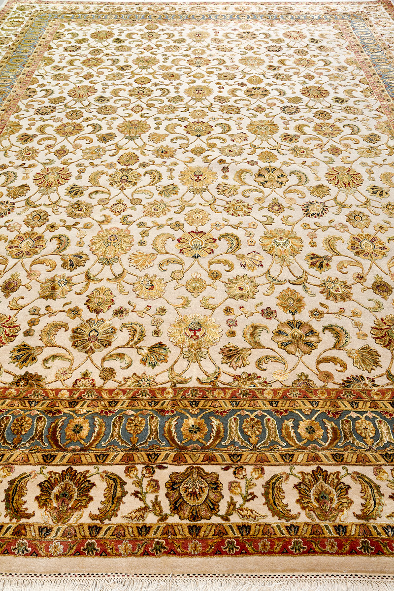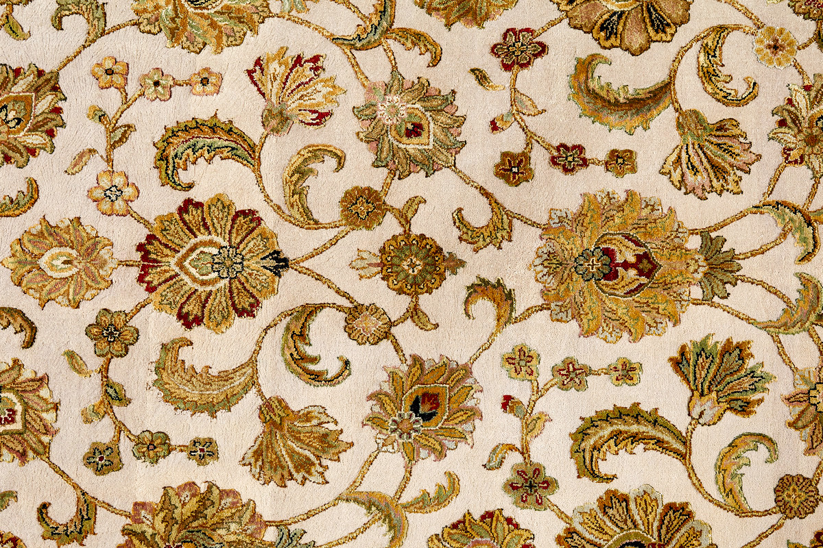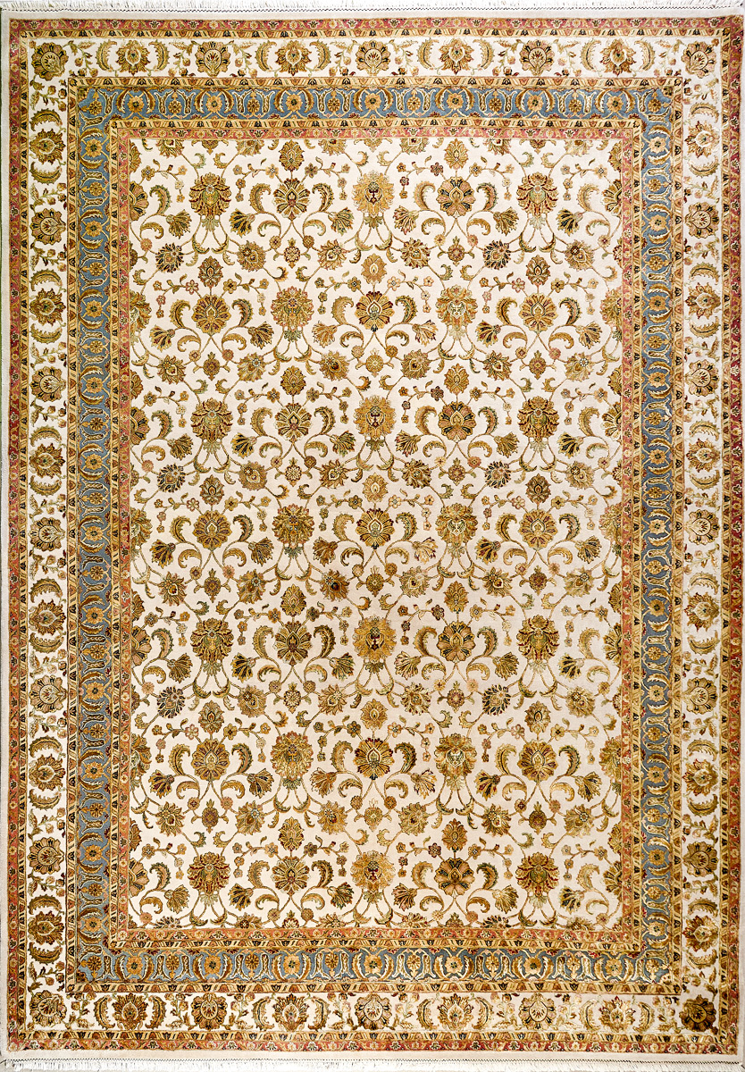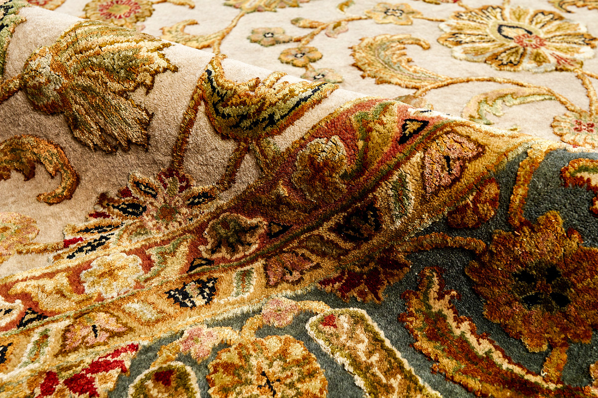 Более пяти веков назад в городе Агра зародилась знаменитая индийская школа ковроткачества, прославившаяся не меньше, чем расположенный здесь же Тадж-Махал. Мощное персидское влияние, помноженное на местный колорит, привело к появлению оригинальных орнаментов с богатыми растительными узорами — причудливым цветам, ветвям и листьям, разбросанным по всему полю ковра.