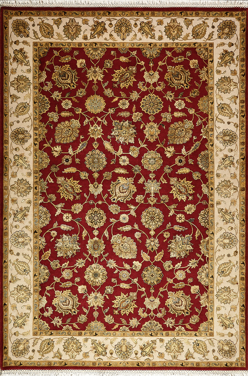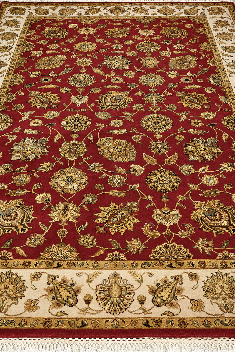 Более пяти веков назад в городе Агра зародилась знаменитая индийская школа ковроткачества, прославившаяся не меньше, чем расположенный здесь же Тадж-Махал. Мощное персидское влияние, помноженное на местный колорит, привело к появлению оригинальных орнаментов с богатыми растительными узорами — причудливым цветам, ветвям и листьям, разбросанным по всему полю ковра.