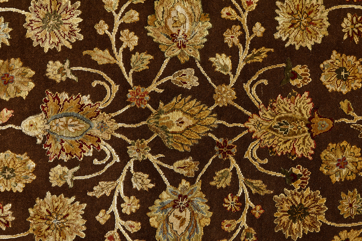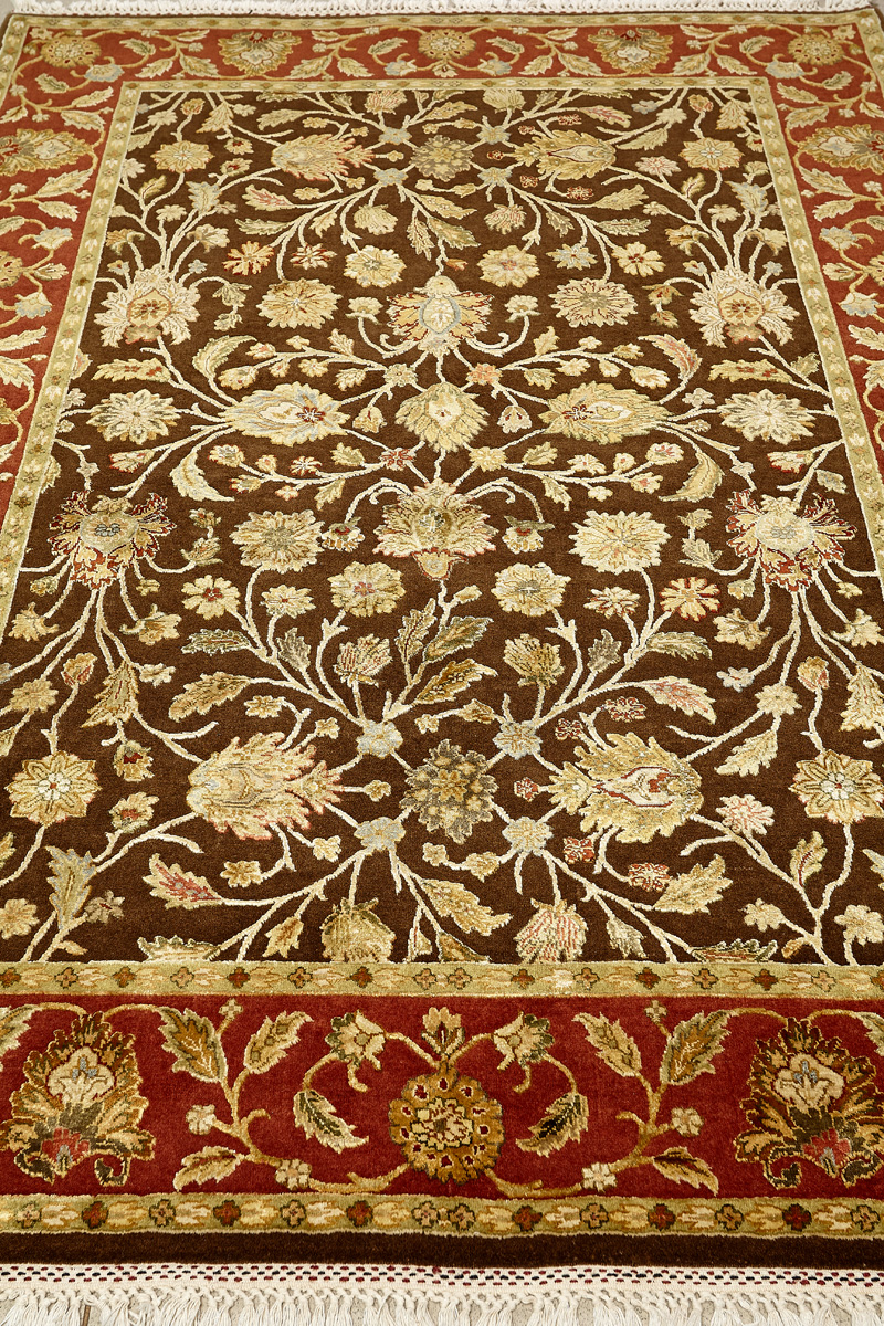 Более пяти веков назад в городе Агра зародилась знаменитая индийская школа ковроткачества, прославившаяся не меньше, чем расположенный здесь же Тадж-Махал. Мощное персидское влияние, помноженное на местный колорит, привело к появлению оригинальных орнаментов с богатыми растительными узорами — причудливым цветам, ветвям и листьям, разбросанным по всему полю ковра.