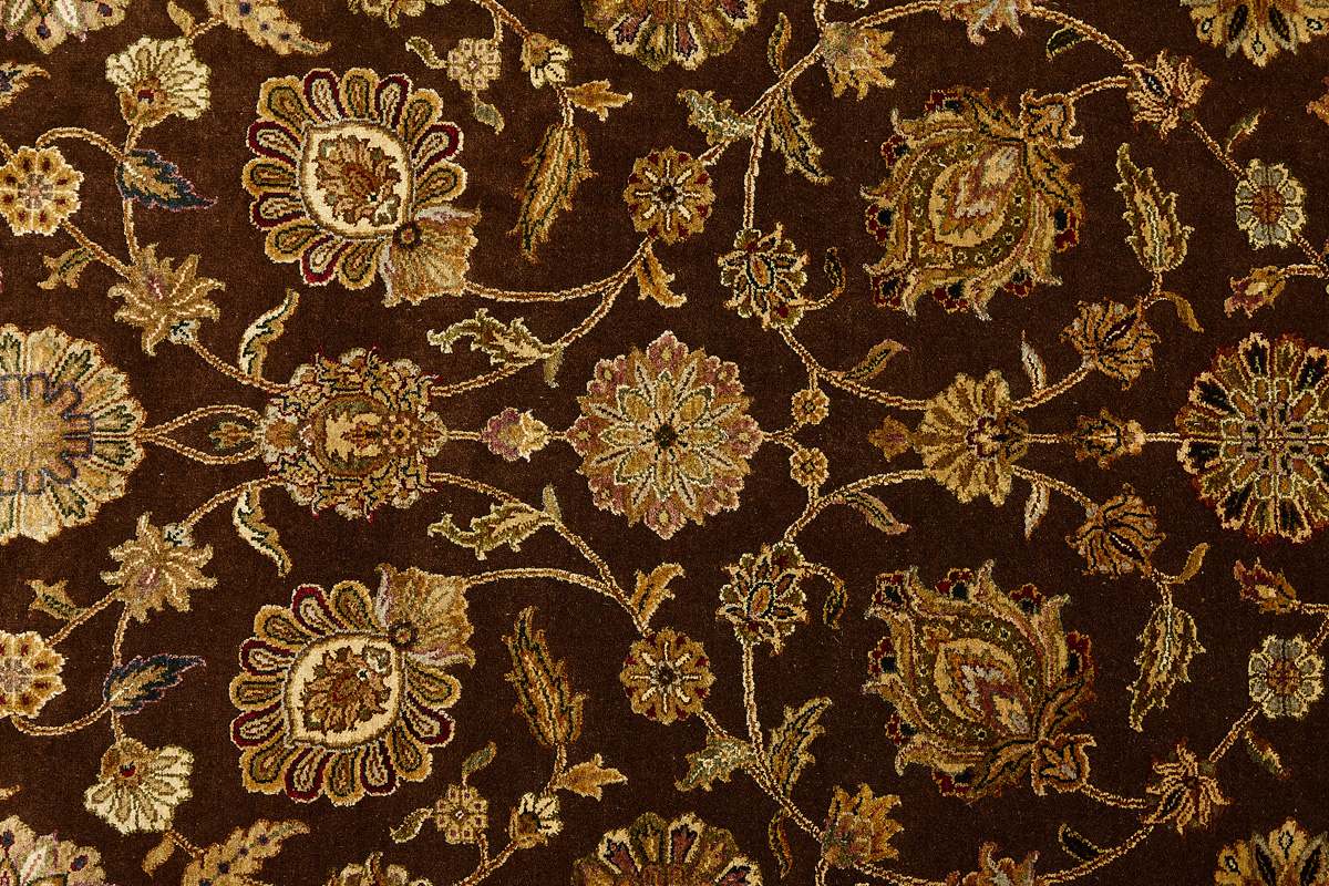 Более пяти веков назад в городе Агра зародилась знаменитая индийская школа ковроткачества, прославившаяся не меньше, чем расположенный здесь же Тадж-Махал. Мощное персидское влияние, помноженное на местный колорит, привело к появлению оригинальных орнаментов с богатыми растительными узорами — причудливым цветам, ветвям и листьям, разбросанным по всему полю ковра.