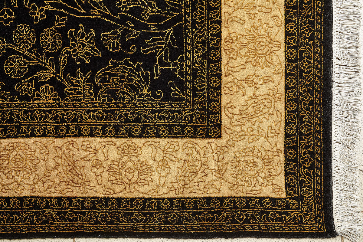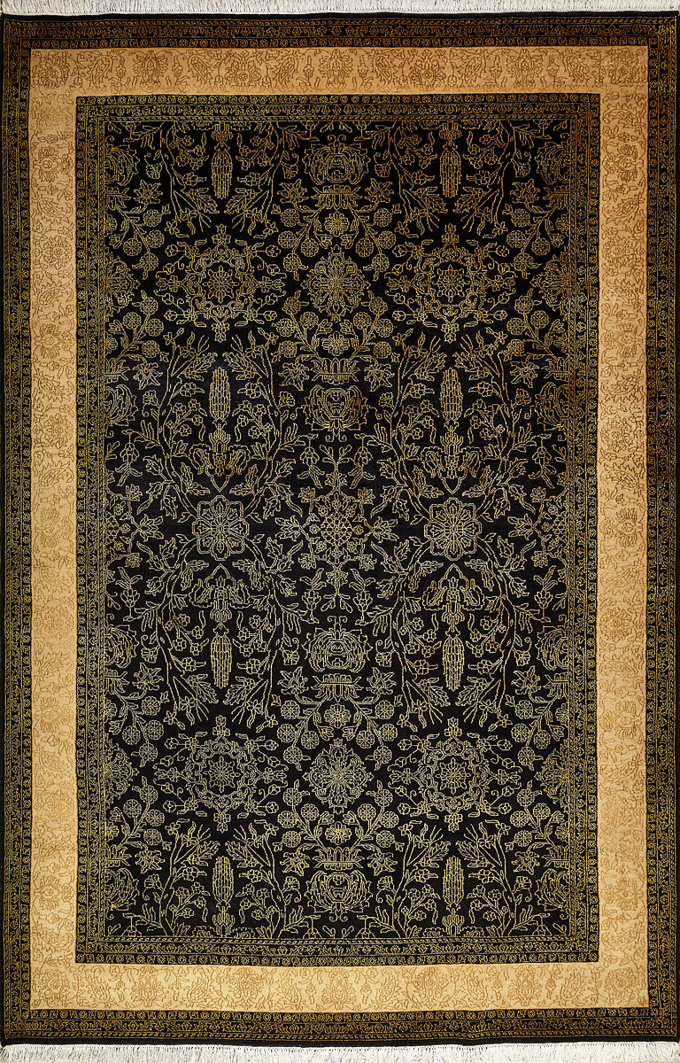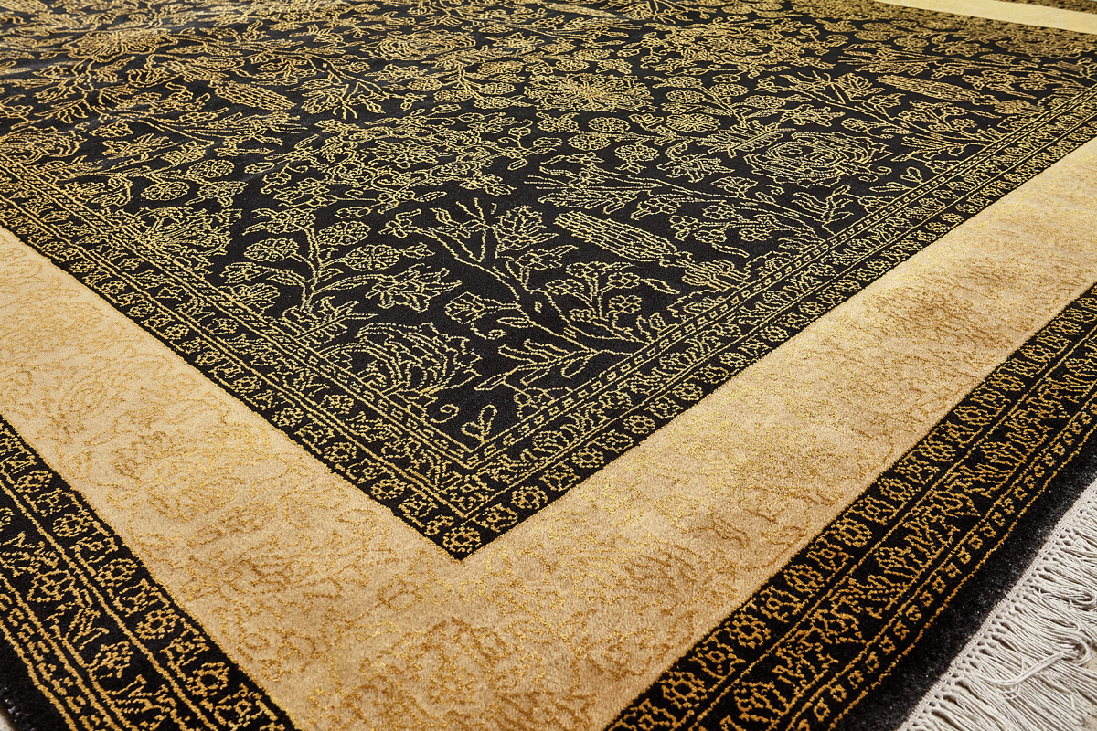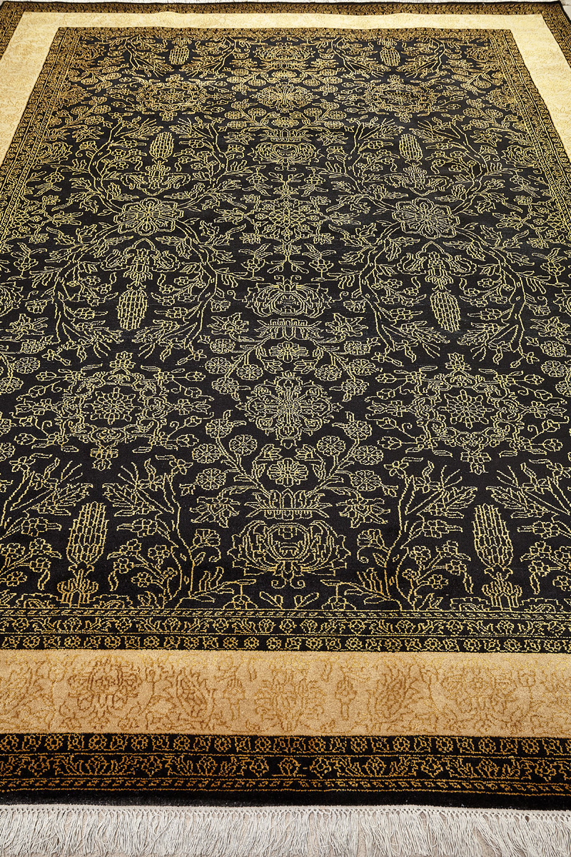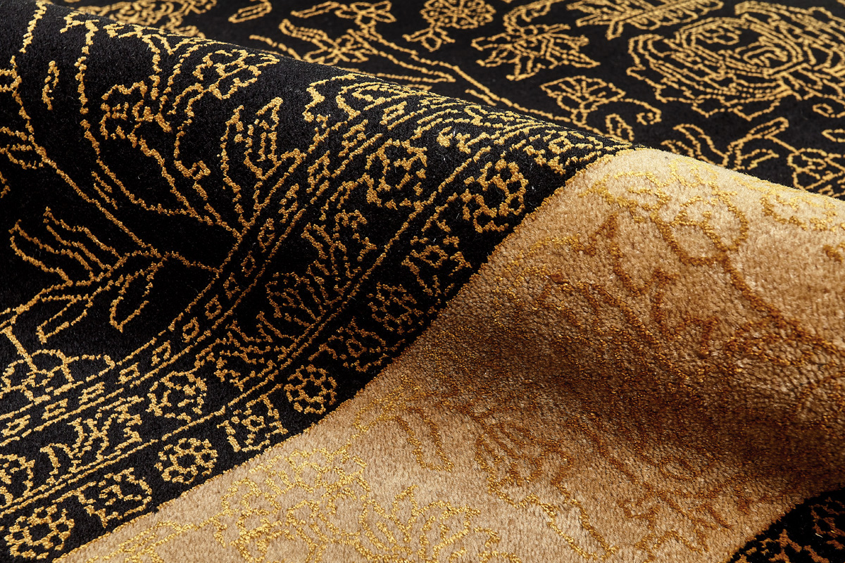 Каждый ковер в этой коллекции соткан вручную из шерсти и арт шёлка опытными индийскими мастерами.