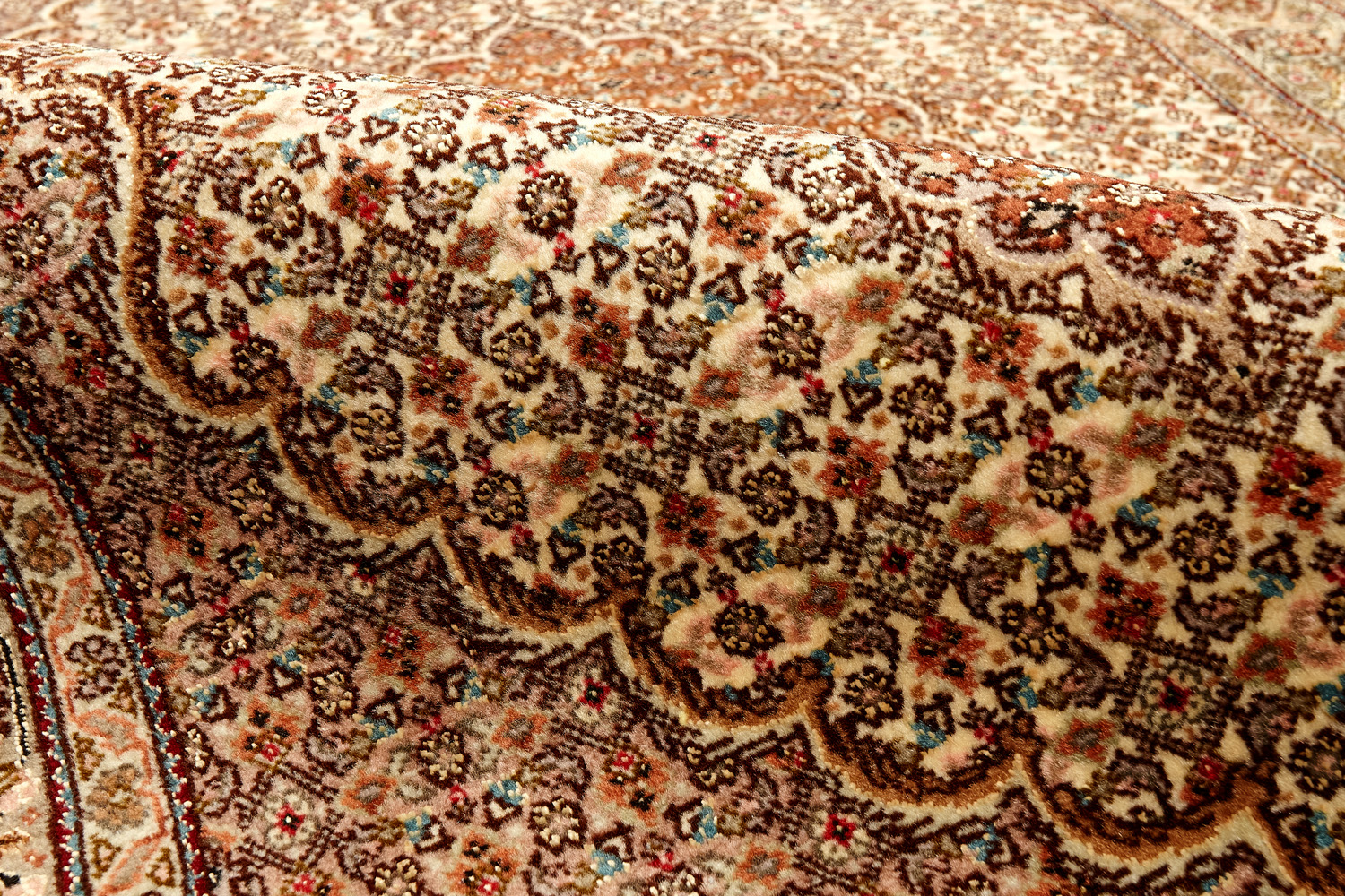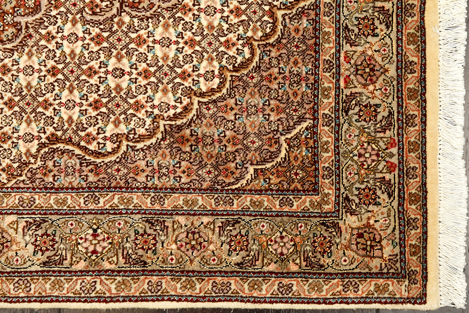 Рассыпанные по всему полю цветы, медальоны и «рыбная чешуя» — основные мотивы в дизайне ковров из коллекции Тебриз, а светлые тона и спокойные пастельные оттенки — основная цветовая палитра.