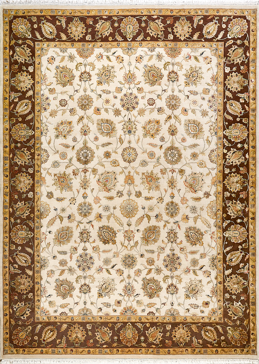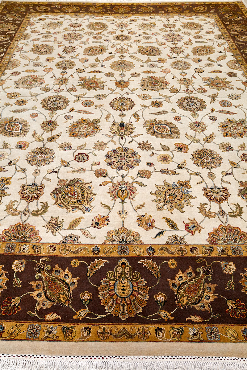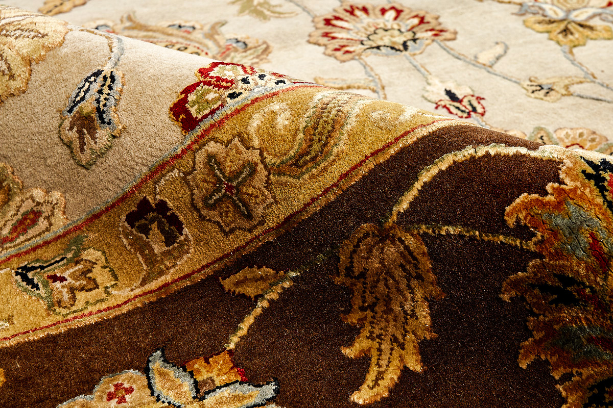 Более пяти веков назад в городе Агра зародилась знаменитая индийская школа ковроткачества, прославившаяся не меньше, чем расположенный здесь же Тадж-Махал. Мощное персидское влияние, помноженное на местный колорит, привело к появлению оригинальных орнаментов с богатыми растительными узорами — причудливым цветам, ветвям и листьям, разбросанным по всему полю ковра.