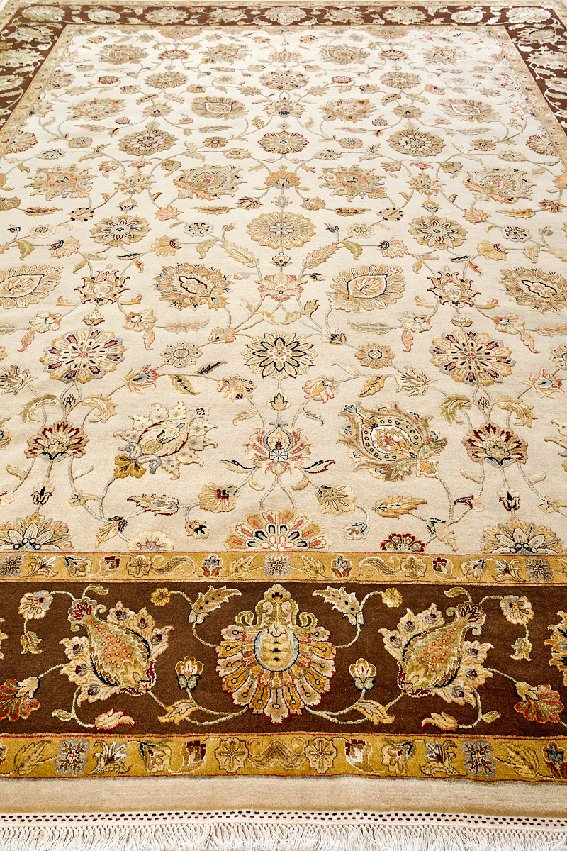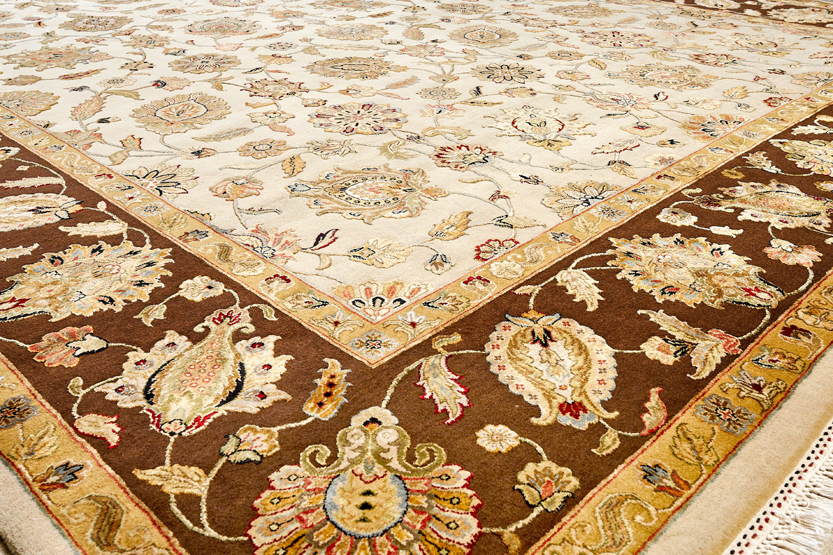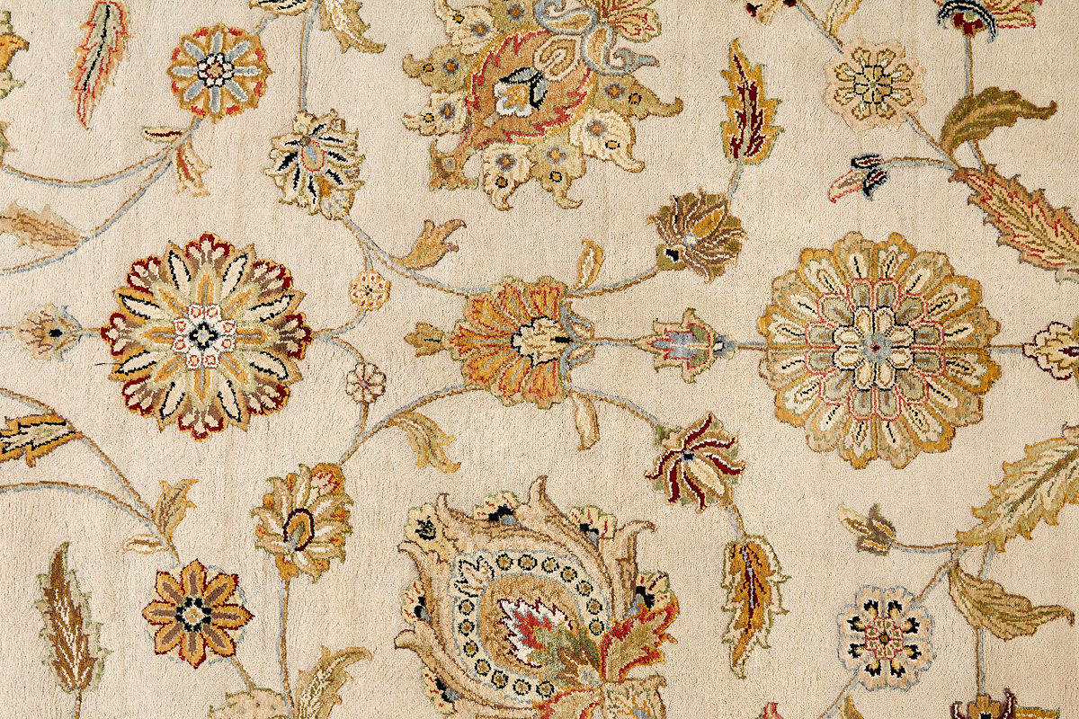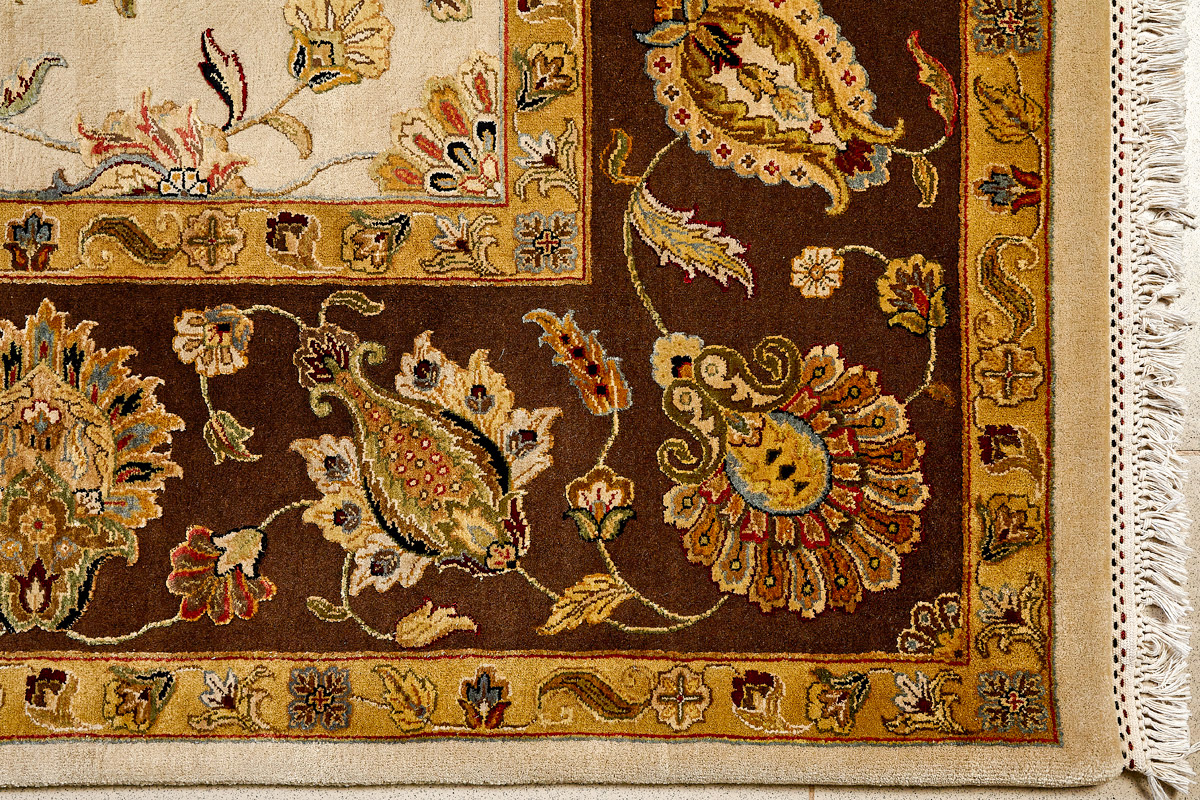 Более пяти веков назад в городе Агра зародилась знаменитая индийская школа ковроткачества, прославившаяся не меньше, чем расположенный здесь же Тадж-Махал. Мощное персидское влияние, помноженное на местный колорит, привело к появлению оригинальных орнаментов с богатыми растительными узорами — причудливым цветам, ветвям и листьям, разбросанным по всему полю ковра.