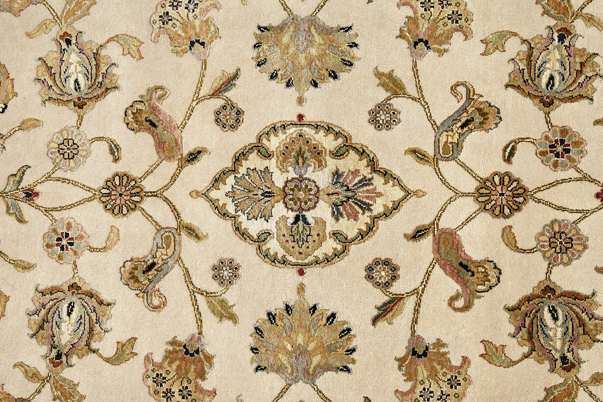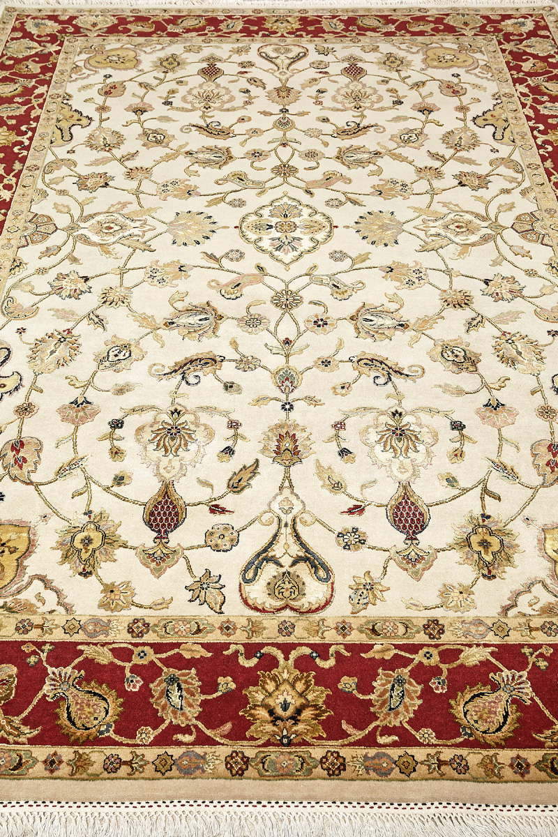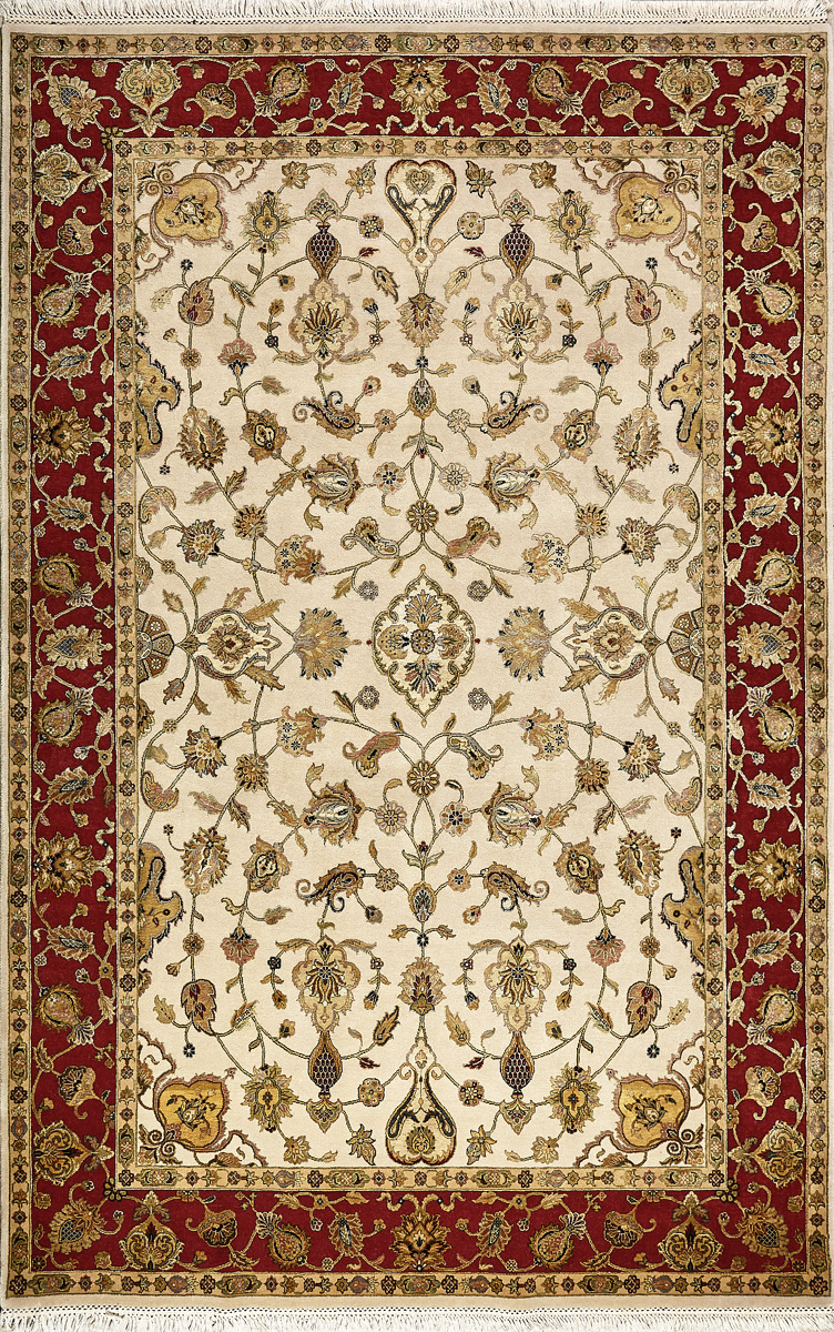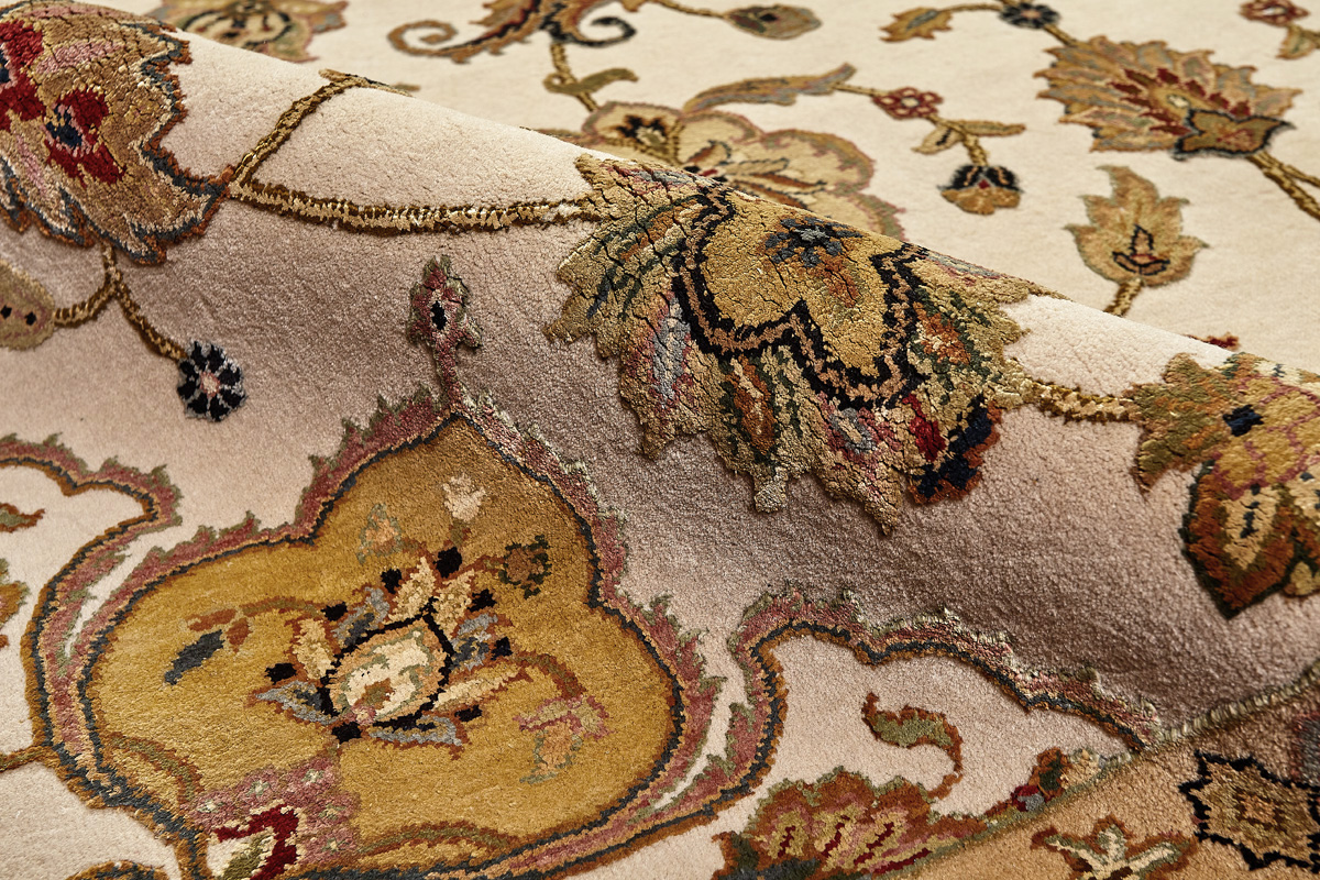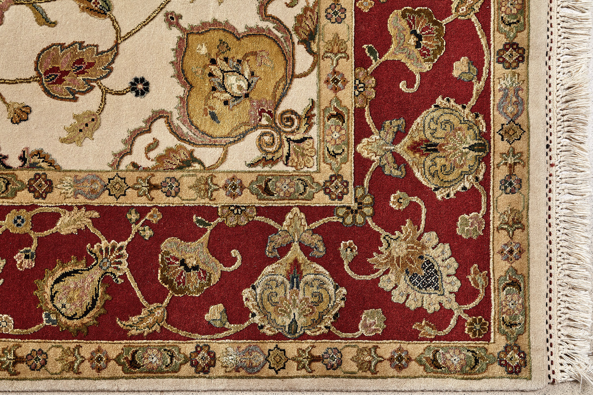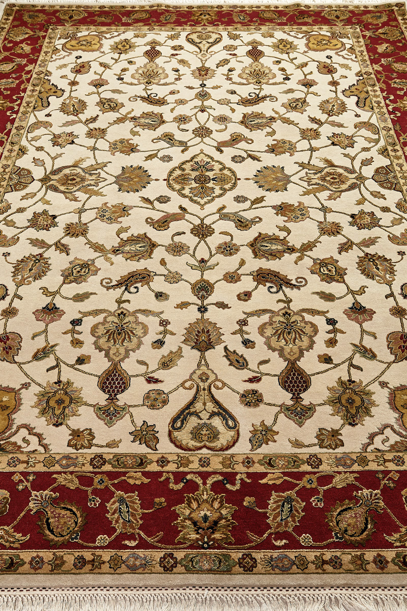 Более пяти веков назад в городе Агра зародилась знаменитая индийская школа ковроткачества, прославившаяся не меньше, чем расположенный здесь же Тадж-Махал. Мощное персидское влияние, помноженное на местный колорит, привело к появлению оригинальных орнаментов с богатыми растительными узорами — причудливым цветам, ветвям и листьям, разбросанным по всему полю ковра.