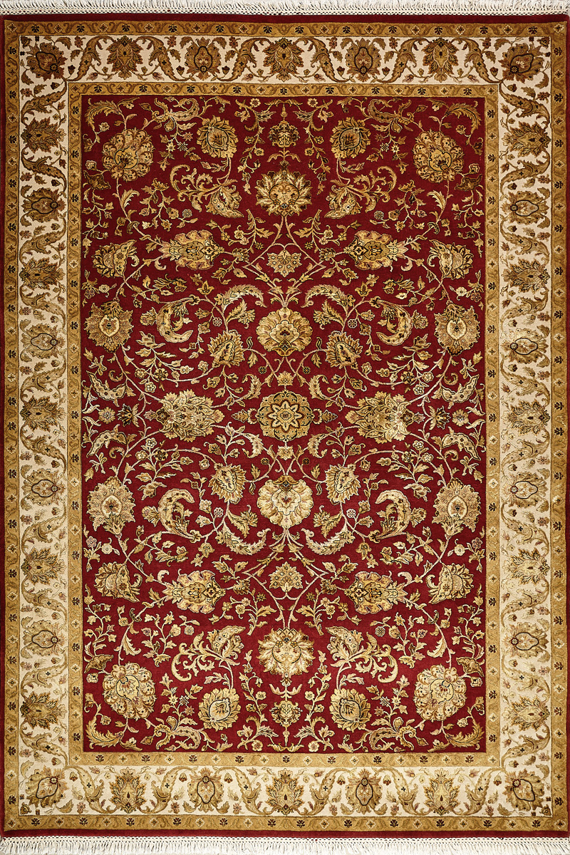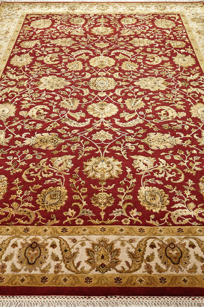 Более пяти веков назад в городе Агра зародилась знаменитая индийская школа ковроткачества, прославившаяся не меньше, чем расположенный здесь же Тадж-Махал. Мощное персидское влияние, помноженное на местный колорит, привело к появлению оригинальных орнаментов с богатыми растительными узорами — причудливым цветам, ветвям и листьям, разбросанным по всему полю ковра.
