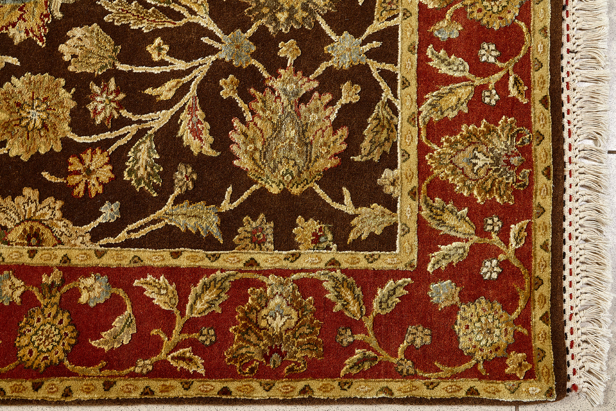 Более пяти веков назад в городе Агра зародилась знаменитая индийская школа ковроткачества, прославившаяся не меньше, чем расположенный здесь же Тадж-Махал. Мощное персидское влияние, помноженное на местный колорит, привело к появлению оригинальных орнаментов с богатыми растительными узорами — причудливым цветам, ветвям и листьям, разбросанным по всему полю ковра.