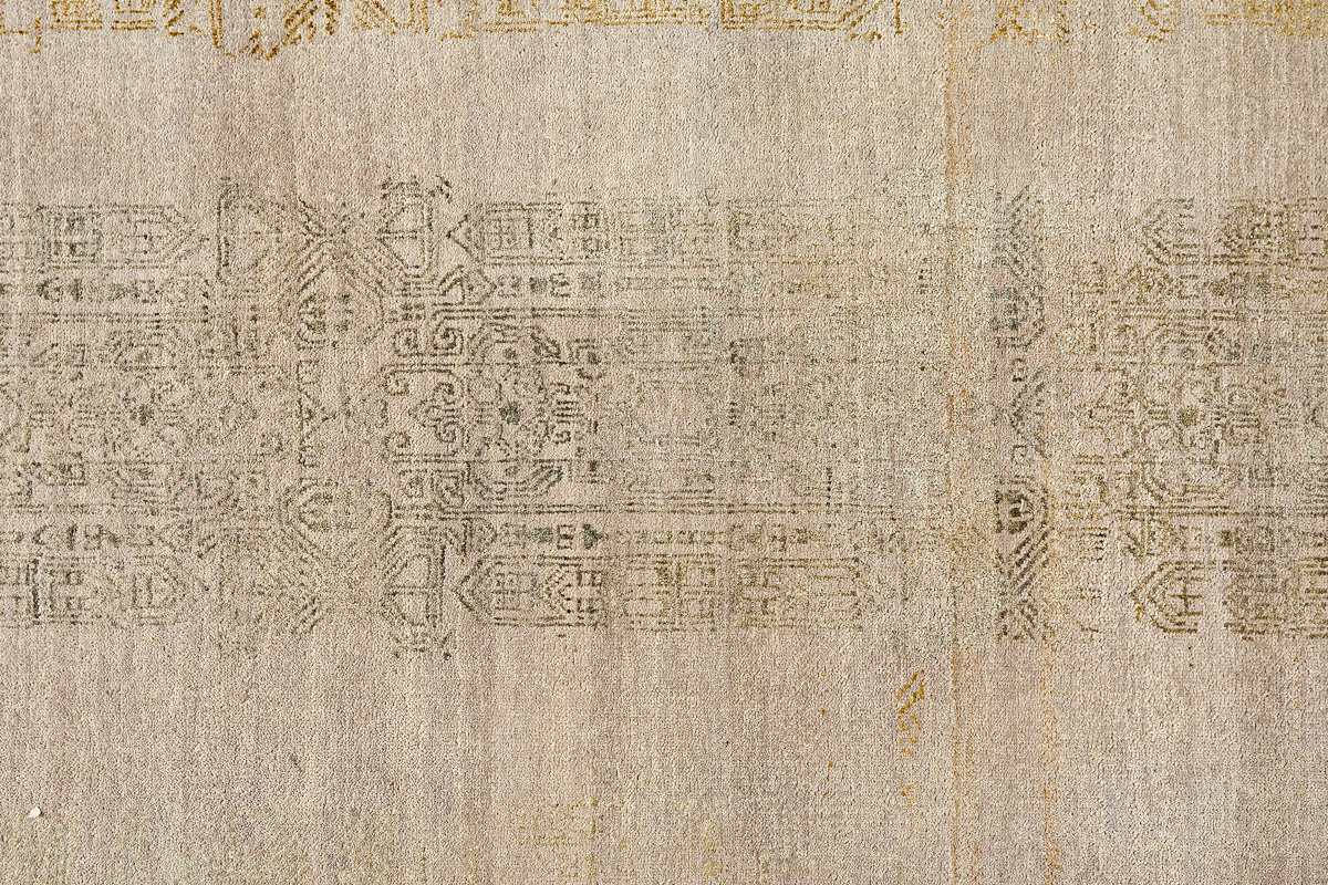 Время и природа — два главных стержня. Впечатление такое, что краски словно стёрлись, а если они и сохраняют яркость, то рисунок сохранился не весь, какие‑то фрагменты утрачены — такова типология этого столь актуального сегодня ковра ручной работы из коллекции Pearl.