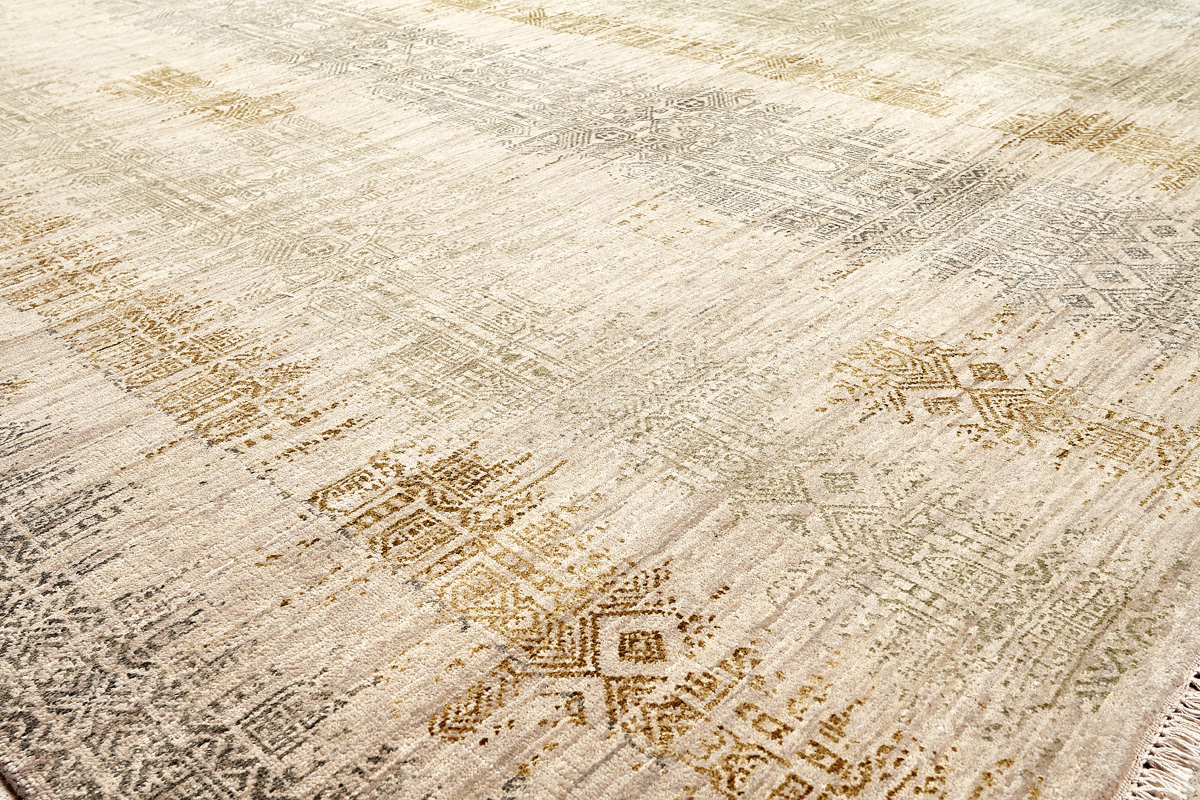 Такой эффект достигается за счет специальной техники плетения, а также обработки, которой подвергают ковры, чтобы они выглядели как антикварные — то есть дорого, элегантно и модно.