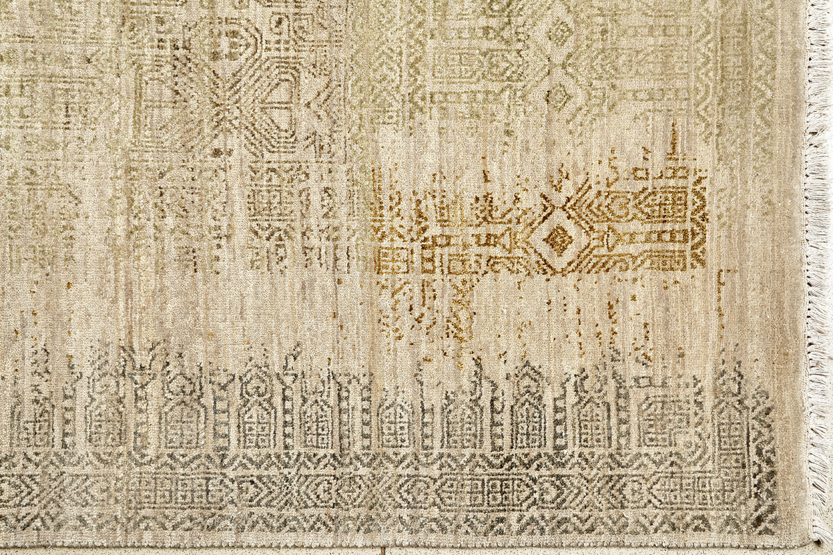 Время и природа — два главных стержня. Впечатление такое, что краски словно стёрлись, а если они и сохраняют яркость, то рисунок сохранился не весь, какие‑то фрагменты утрачены — такова типология этого столь актуального сегодня ковра ручной работы из коллекции Pearl.