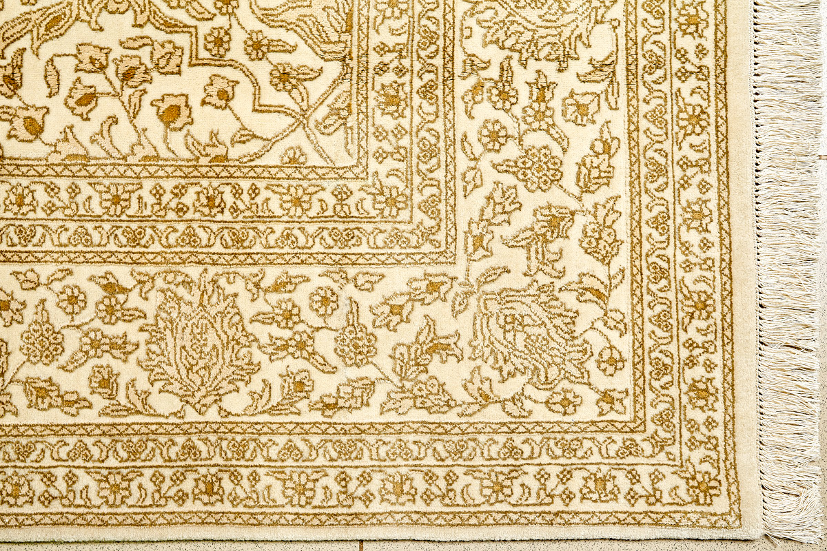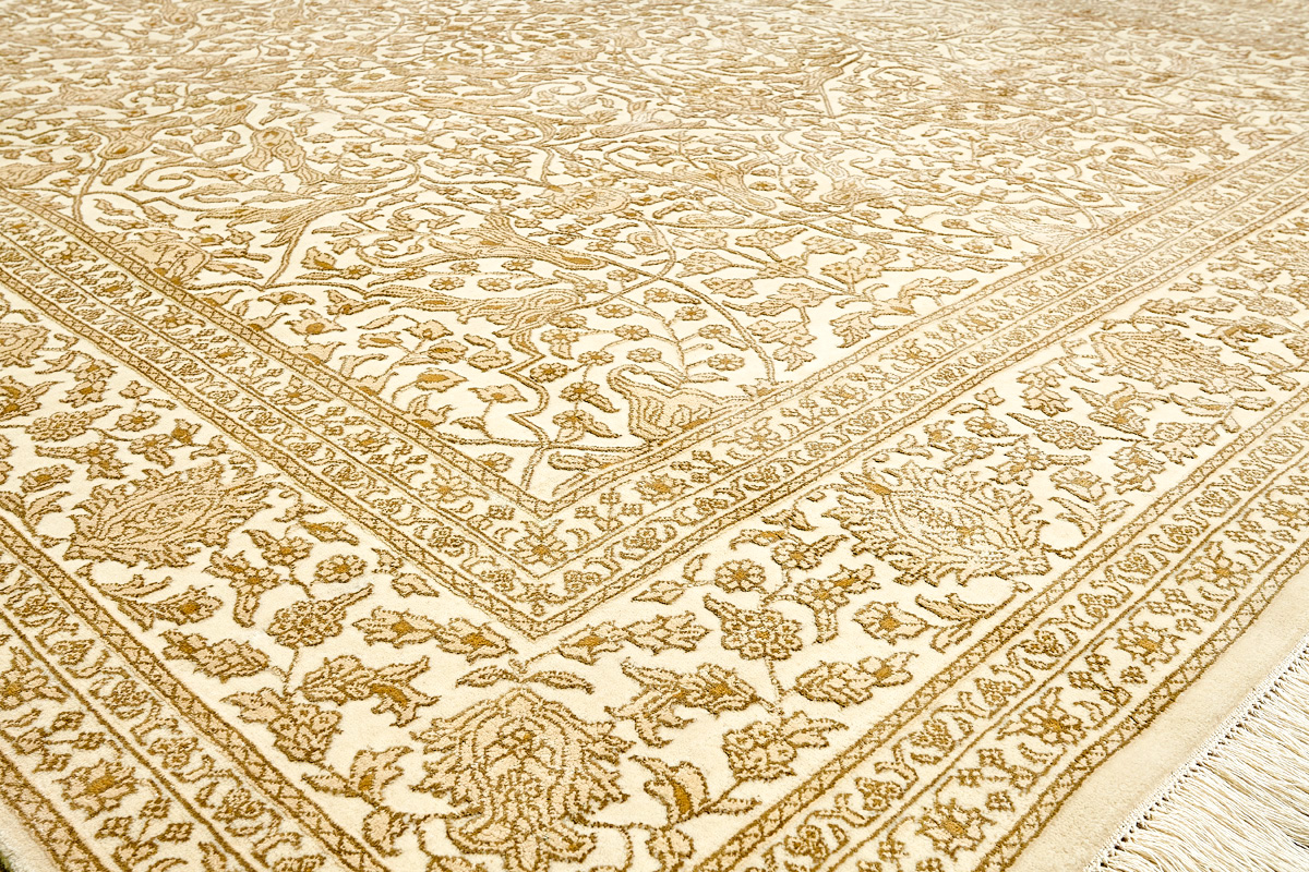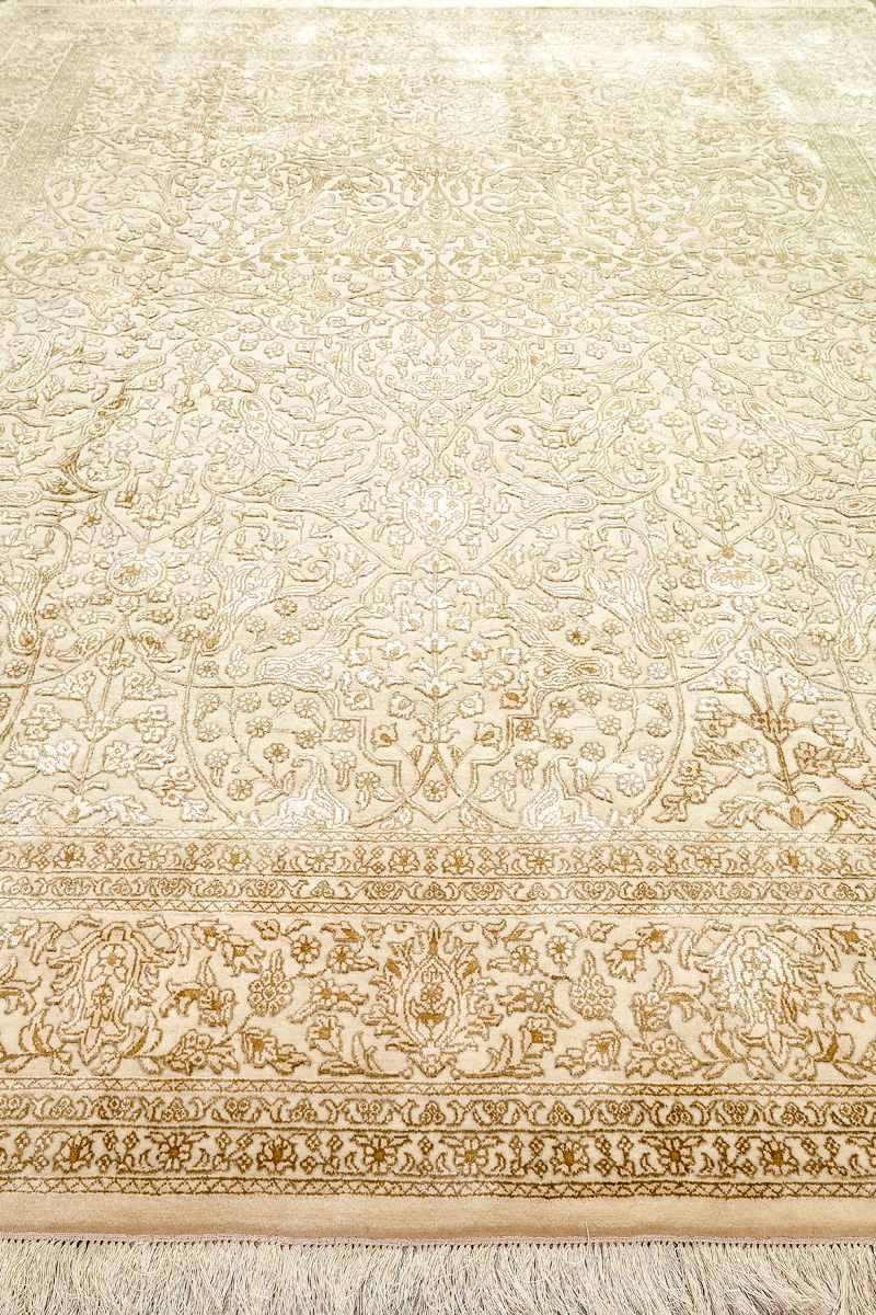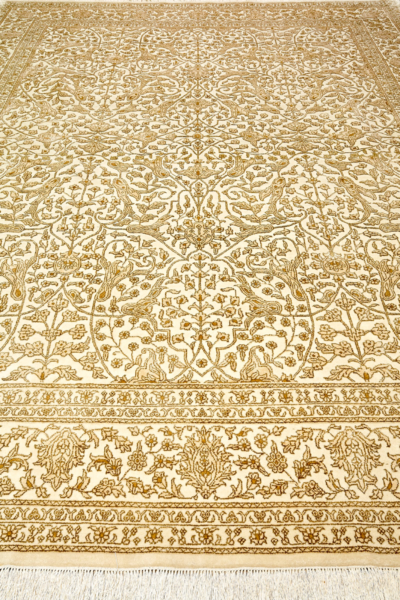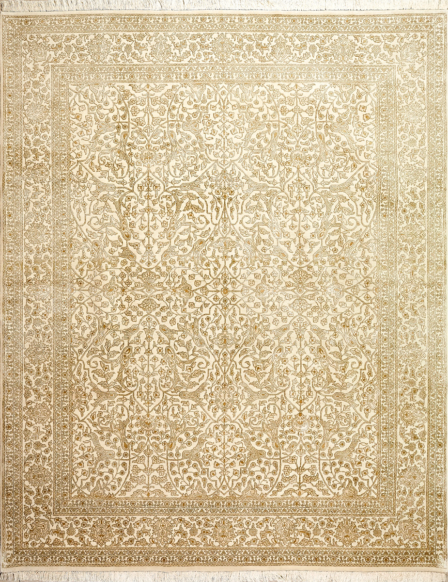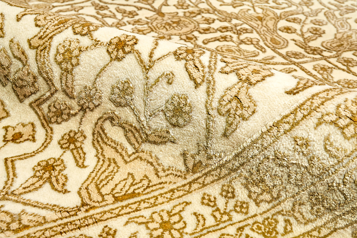 Каждый ковер в этой коллекции соткан вручную из шерсти и арт шёлка опытными индийскими мастерами.