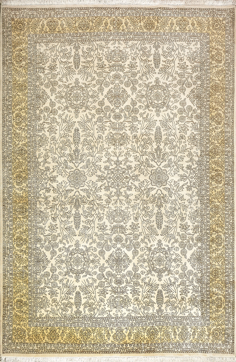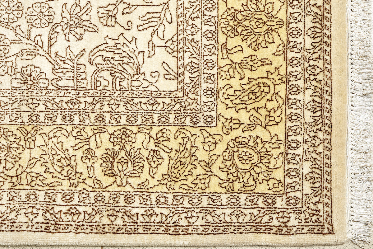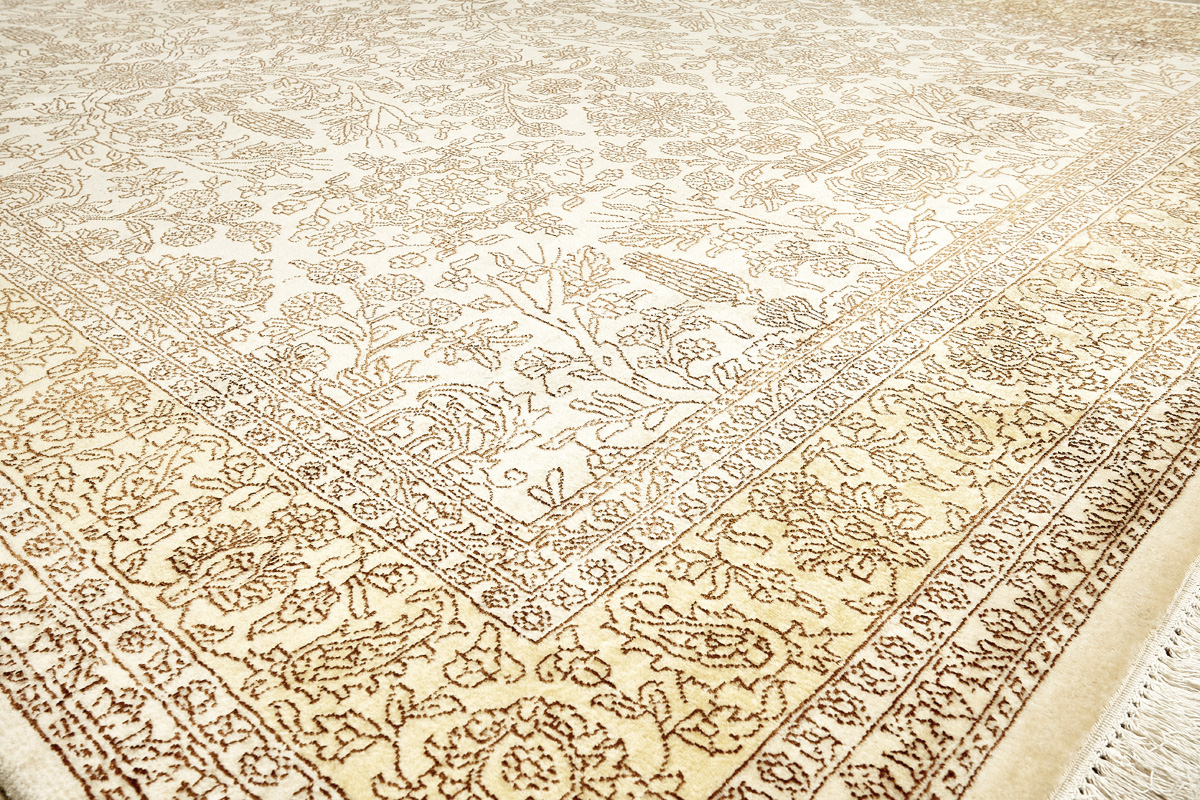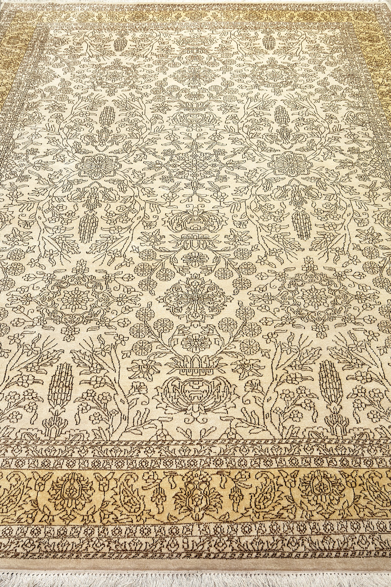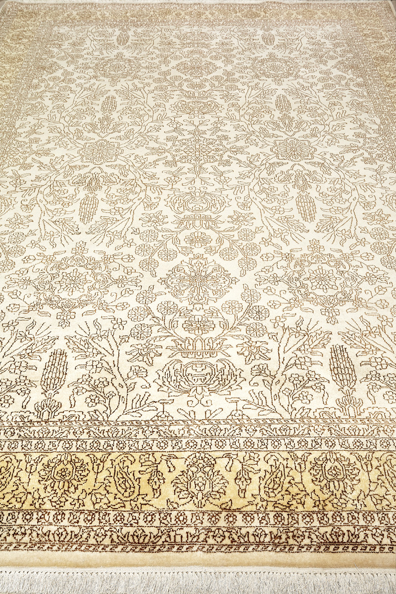 Каждый ковер в этой коллекции соткан вручную из шерсти и арт шёлка опытными индийскими мастерами.