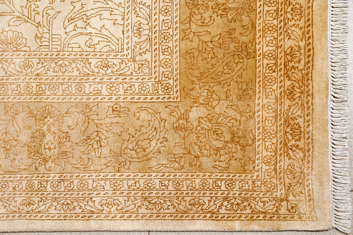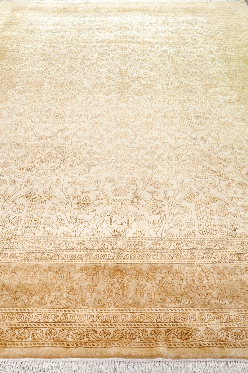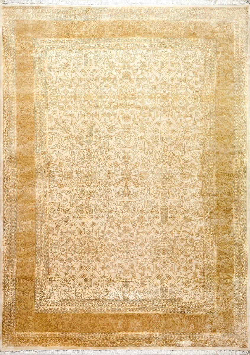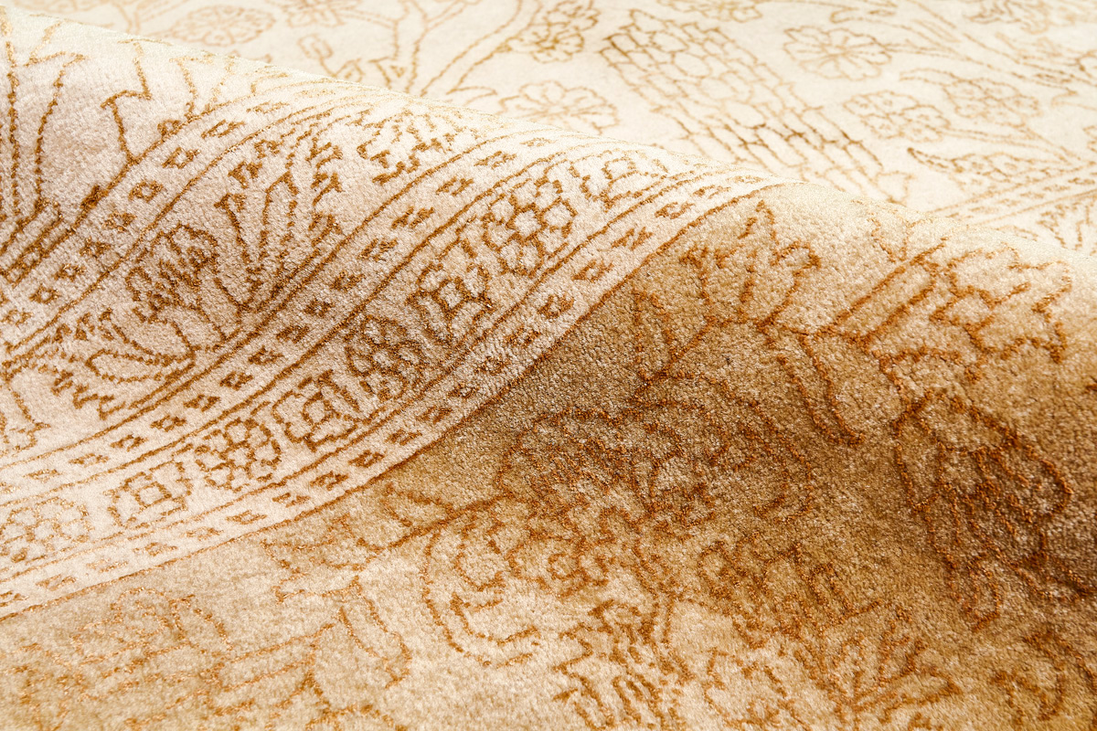 Каждый ковер в этой коллекции соткан вручную из шерсти и арт шёлка опытными индийскими мастерами.