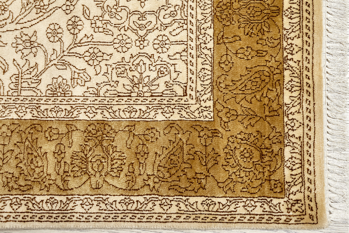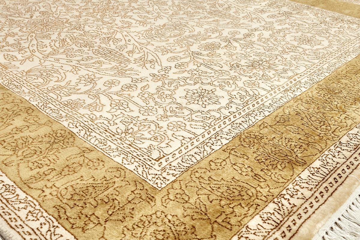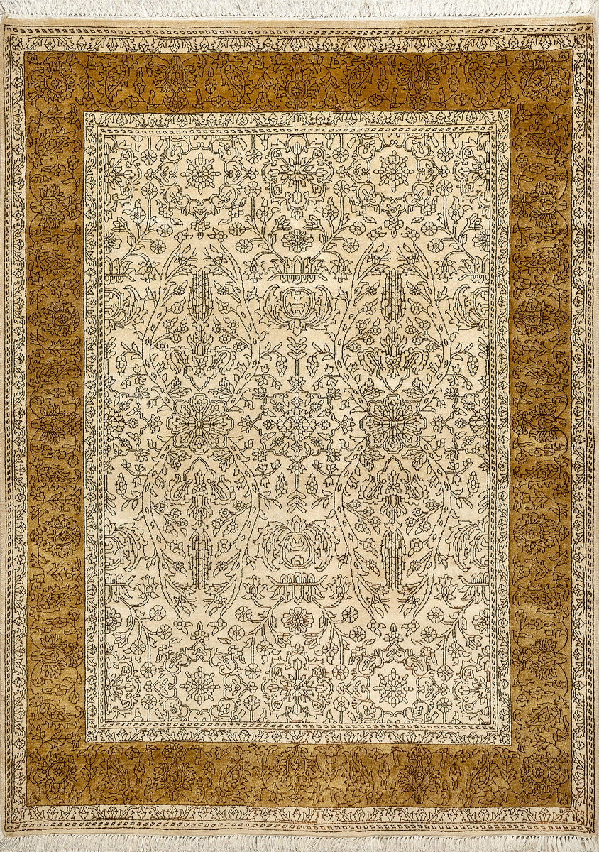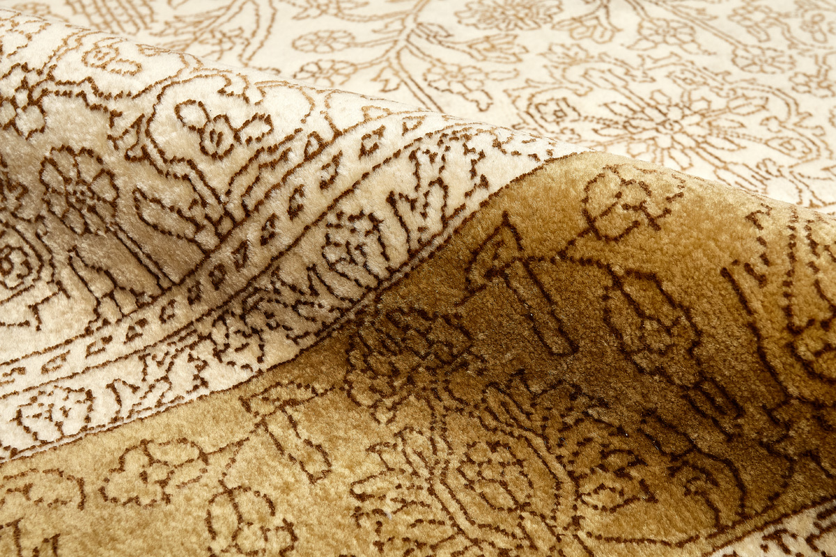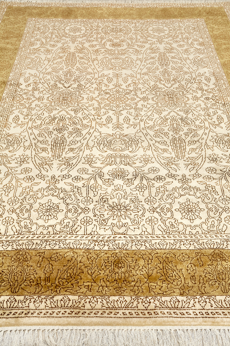 Каждый ковер в этой коллекции соткан вручную из шерсти и арт шёлка опытными индийскими мастерами.
