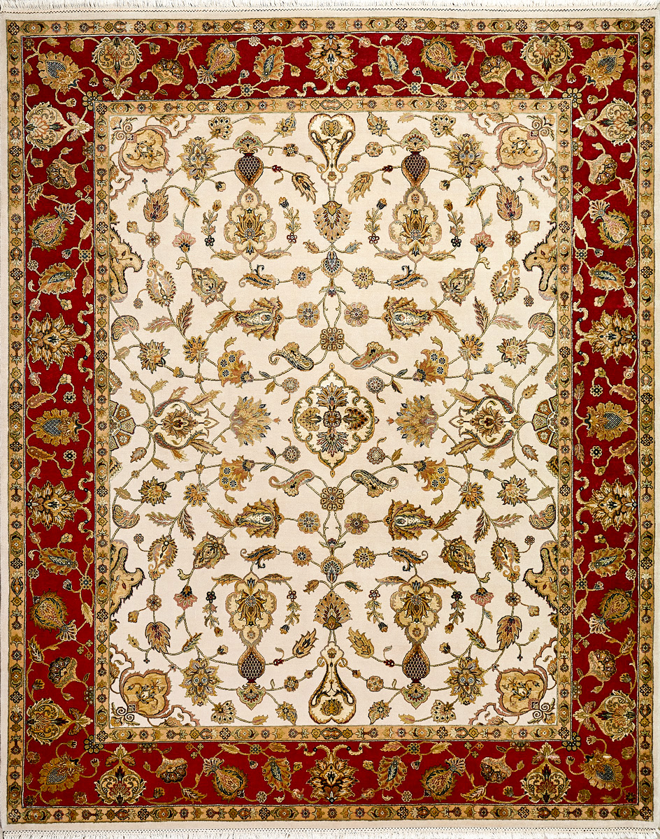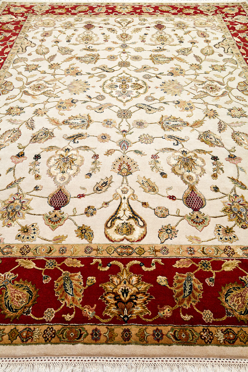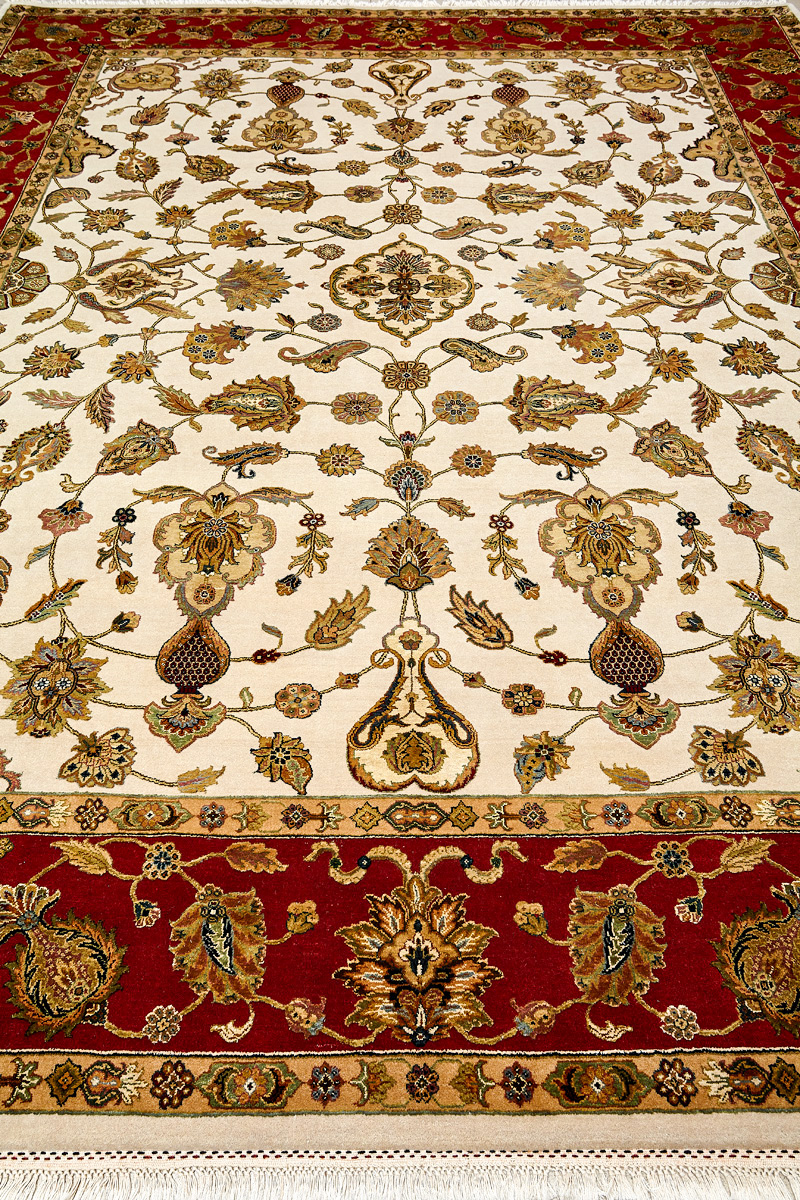 Более пяти веков назад в городе Агра зародилась знаменитая индийская школа ковроткачества, прославившаяся не меньше, чем расположенный здесь же Тадж-Махал. Мощное персидское влияние, помноженное на местный колорит, привело к появлению оригинальных орнаментов с богатыми растительными узорами — причудливым цветам, ветвям и листьям, разбросанным по всему полю ковра.