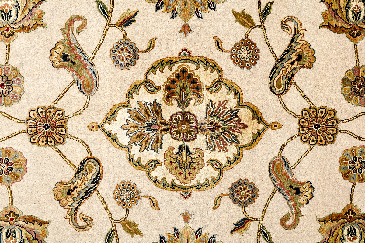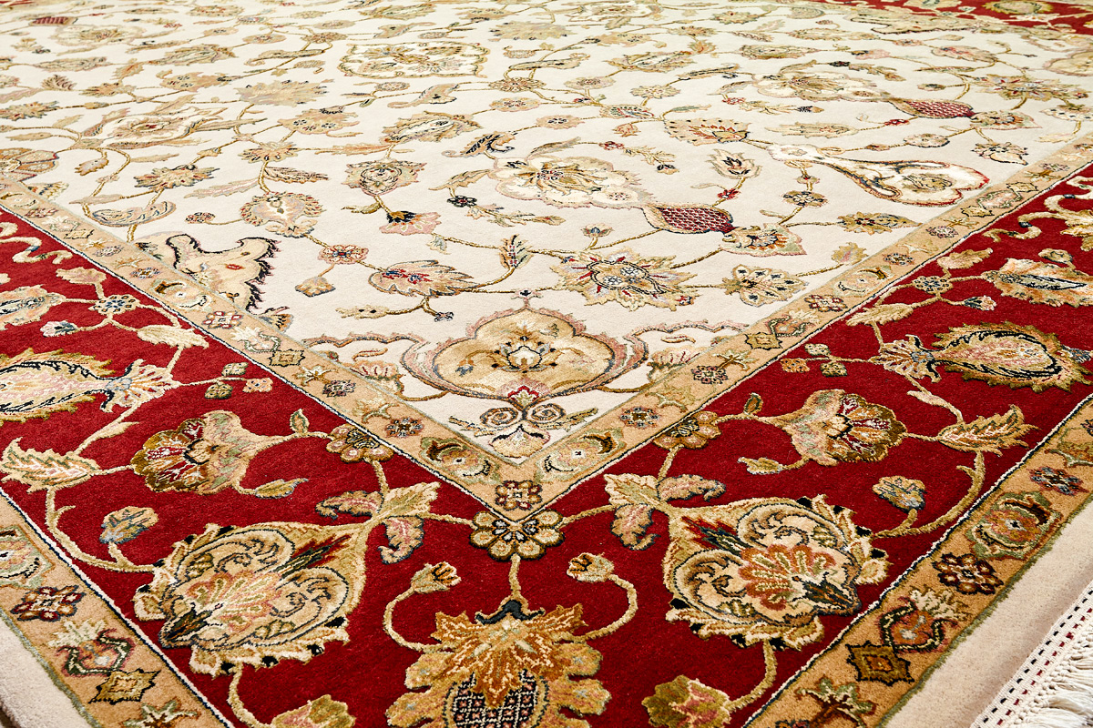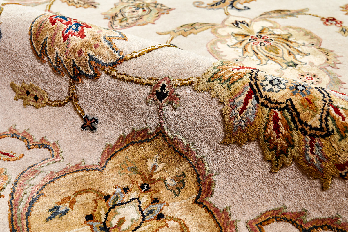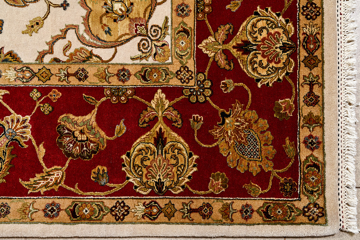 Более пяти веков назад в городе Агра зародилась знаменитая индийская школа ковроткачества, прославившаяся не меньше, чем расположенный здесь же Тадж-Махал. Мощное персидское влияние, помноженное на местный колорит, привело к появлению оригинальных орнаментов с богатыми растительными узорами — причудливым цветам, ветвям и листьям, разбросанным по всему полю ковра.