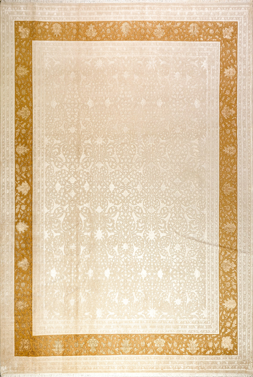 Более пяти веков назад в городе Агра зародилась знаменитая индийская школа ковроткачества, прославившаяся не меньше, чем расположенный здесь же Тадж-Махал. Мощное персидское влияние, помноженное на местный колорит, привело к появлению оригинальных орнаментов с богатыми растительными узорами — причудливым цветам, ветвям и листьям, разбросанным по всему полю ковра.