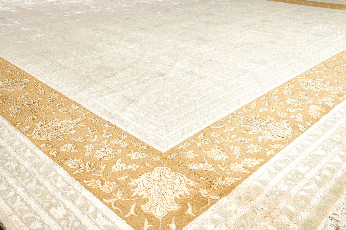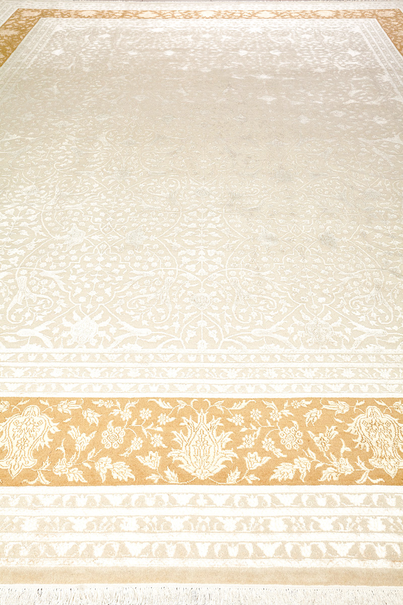 Каждый ковер в этой коллекции соткан вручную из шерсти и арт шёлка опытными индийскими мастерами.
